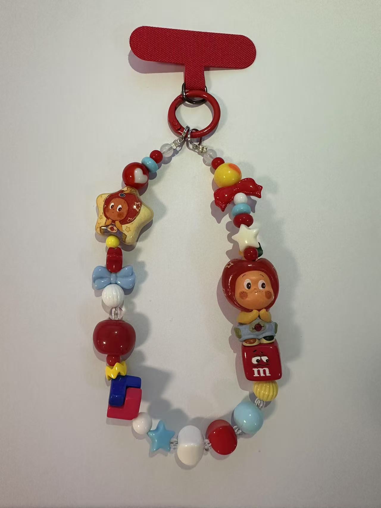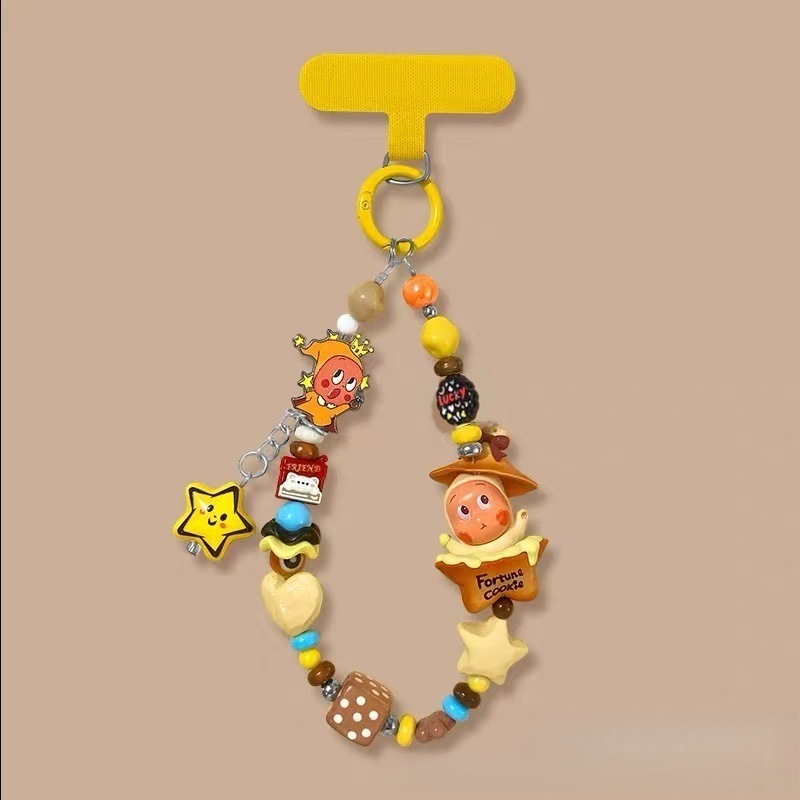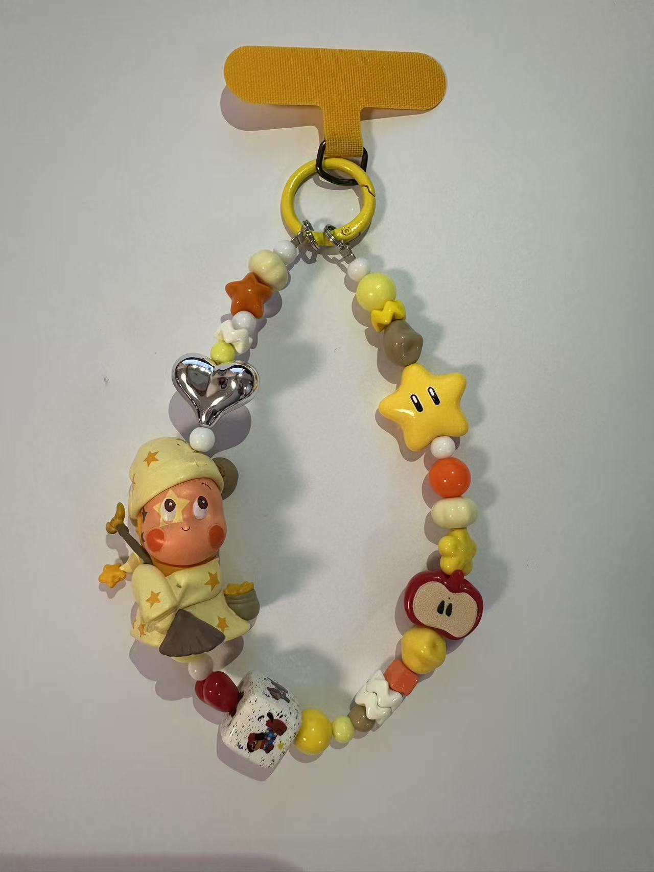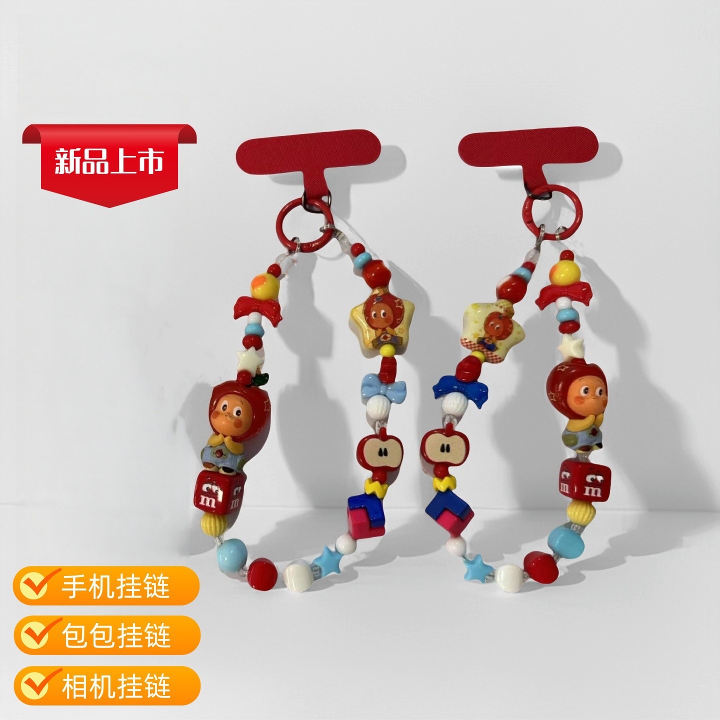 新款创意卡通星星人串珠手机挂链创意diy挂绳手机链钥匙扣包挂件