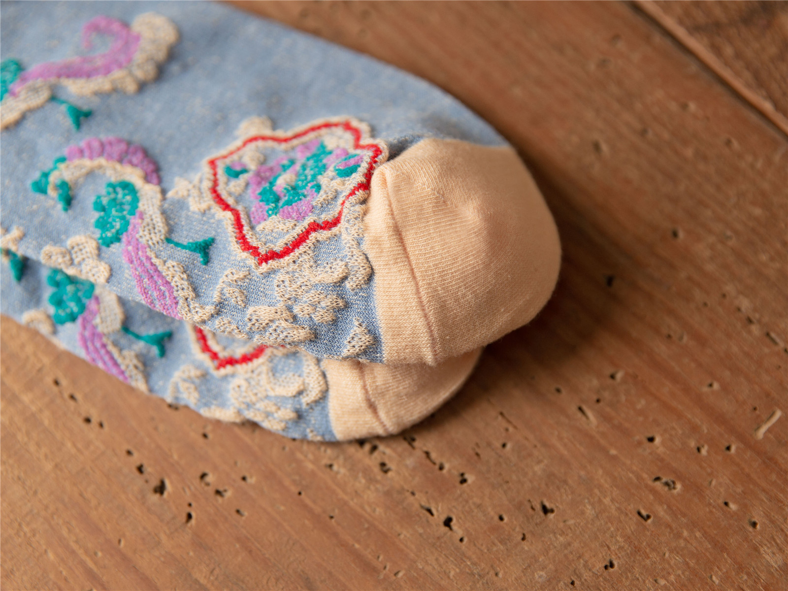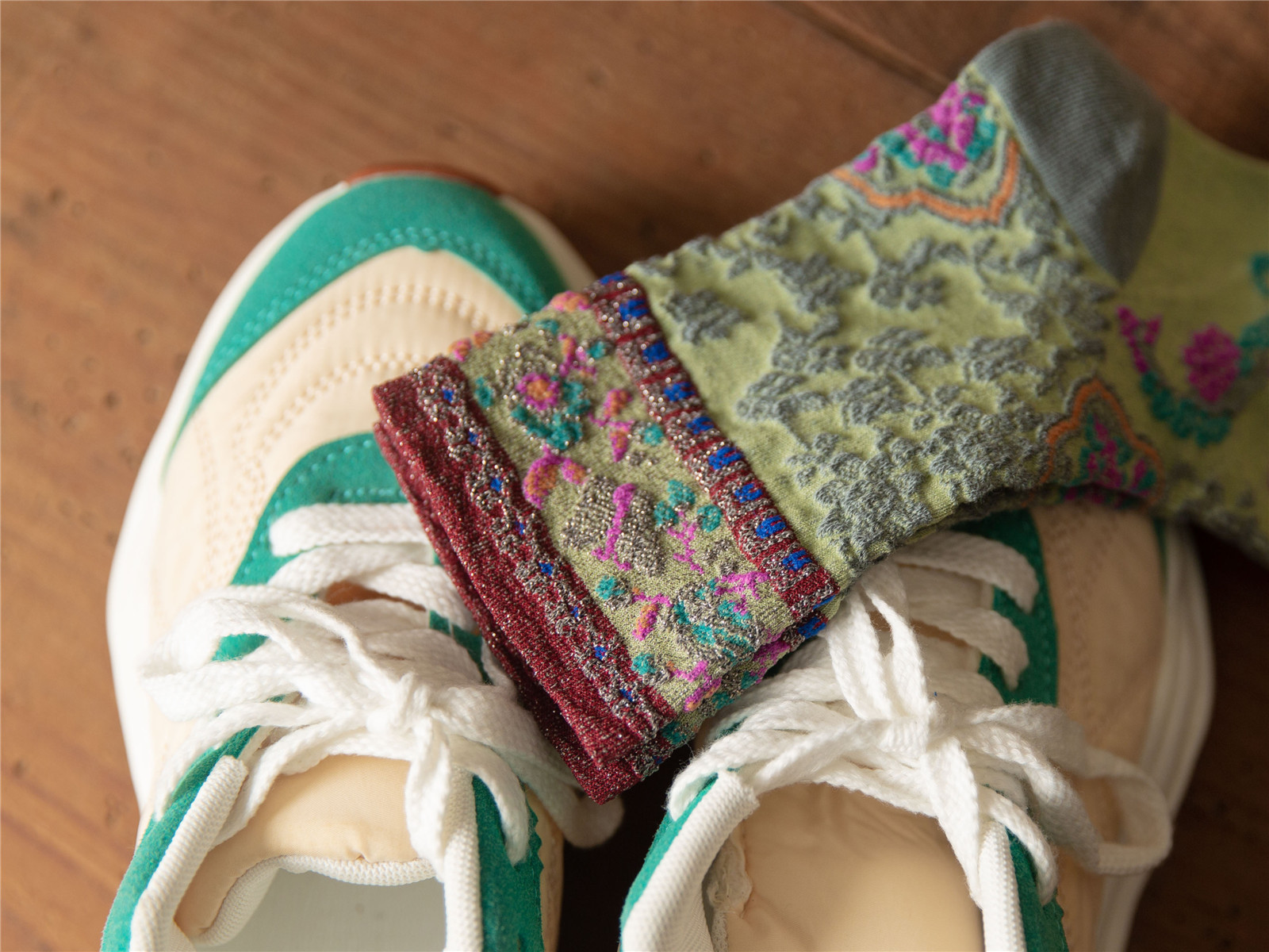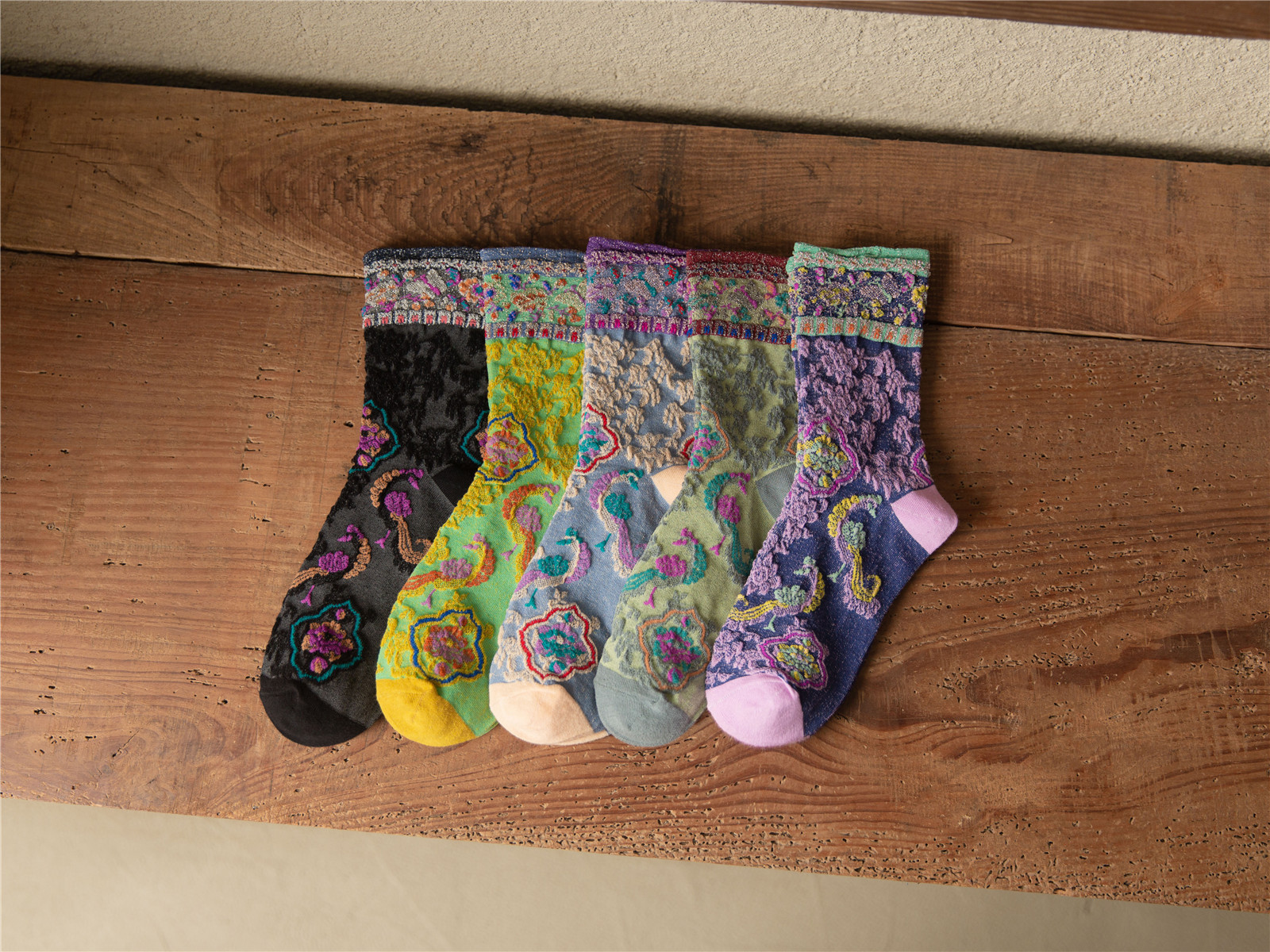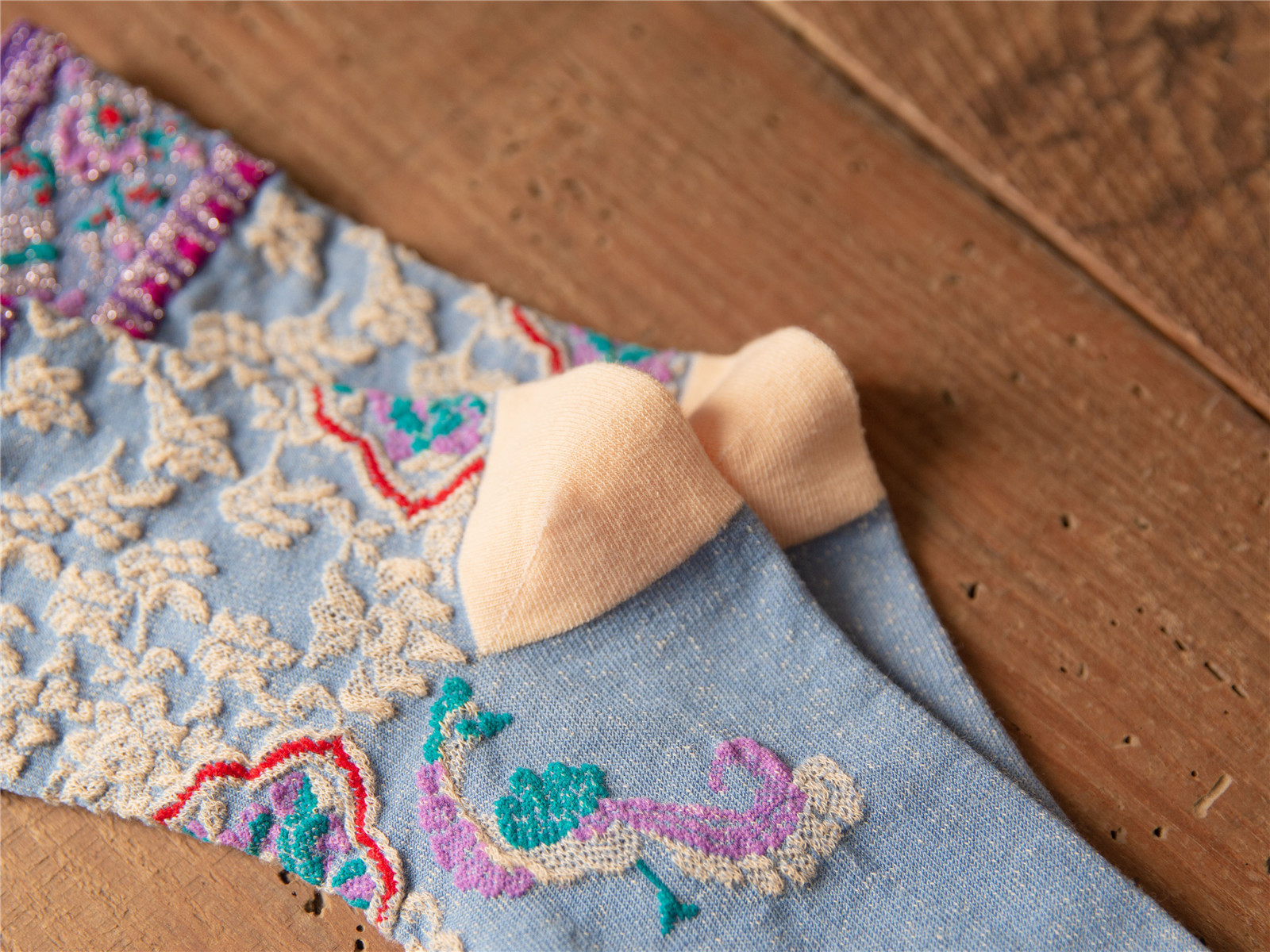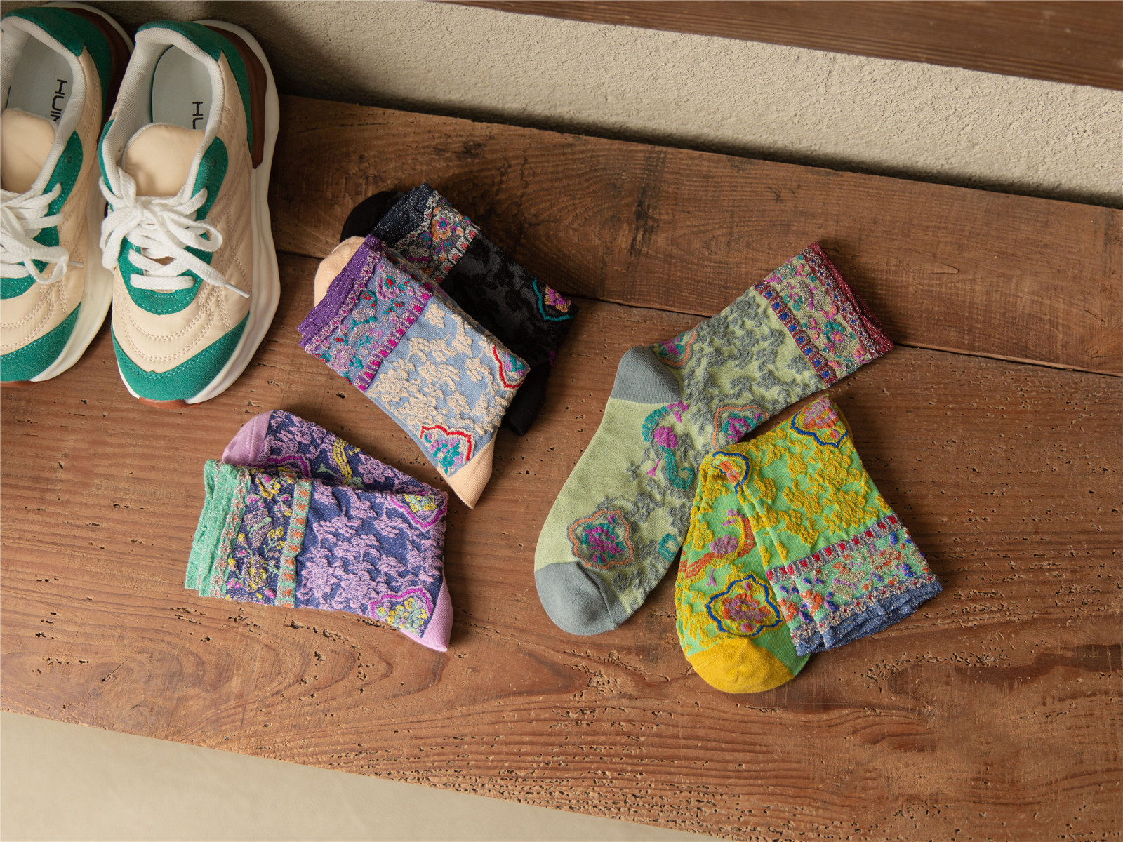 秋季新款亮丝复古花纹中筒女袜棉ins日系时尚泡泡罗口堆堆袜子