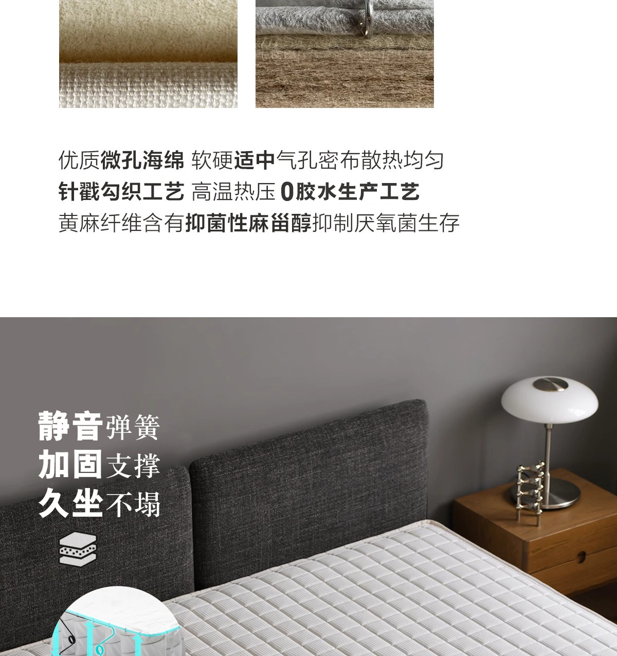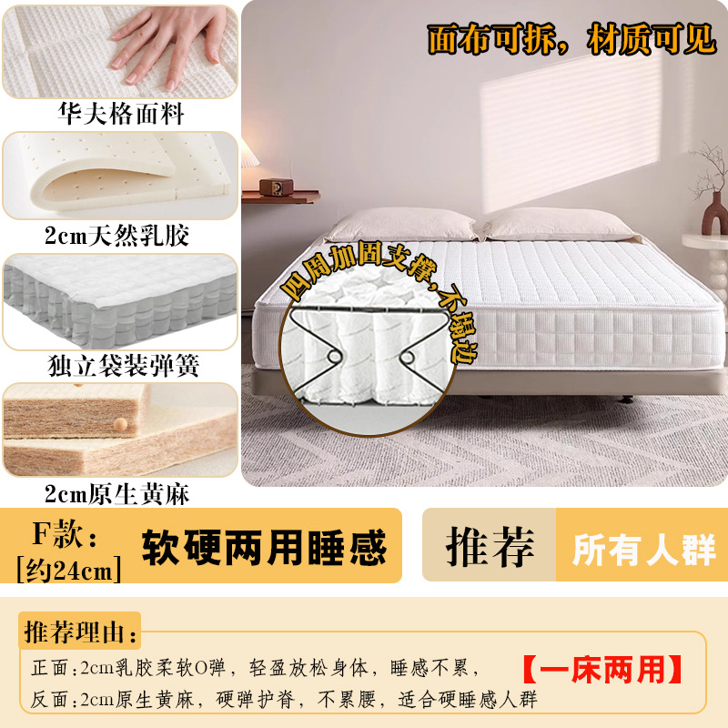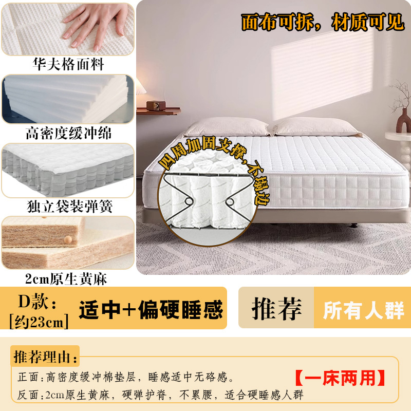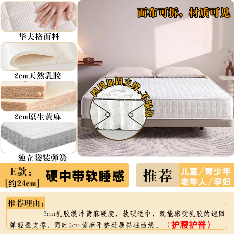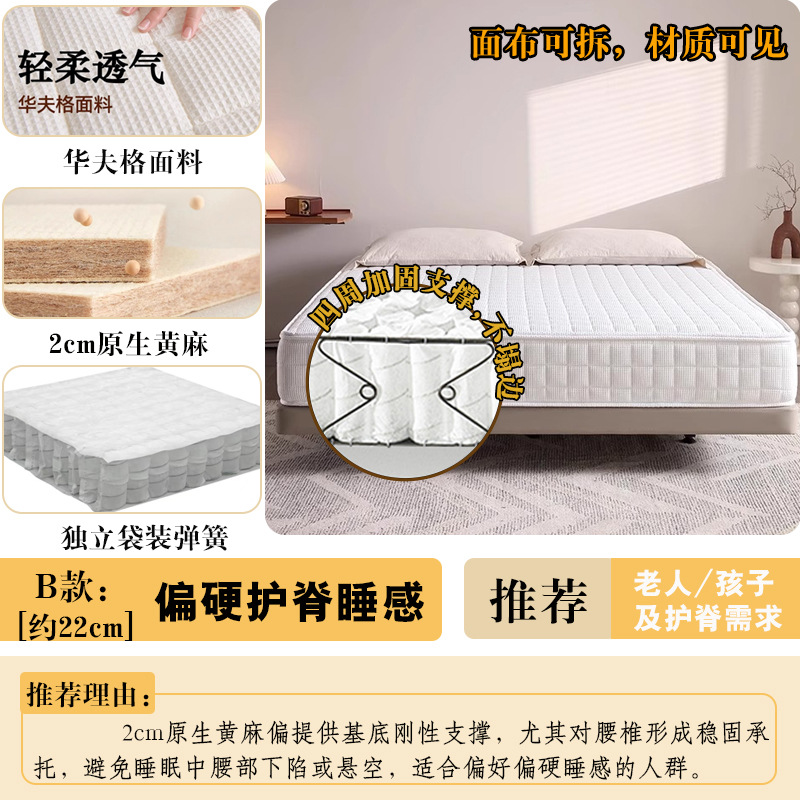 席梦思护脊床垫双人软硬适中独立袋装弹簧黄麻乳胶偏硬家用可拆卸