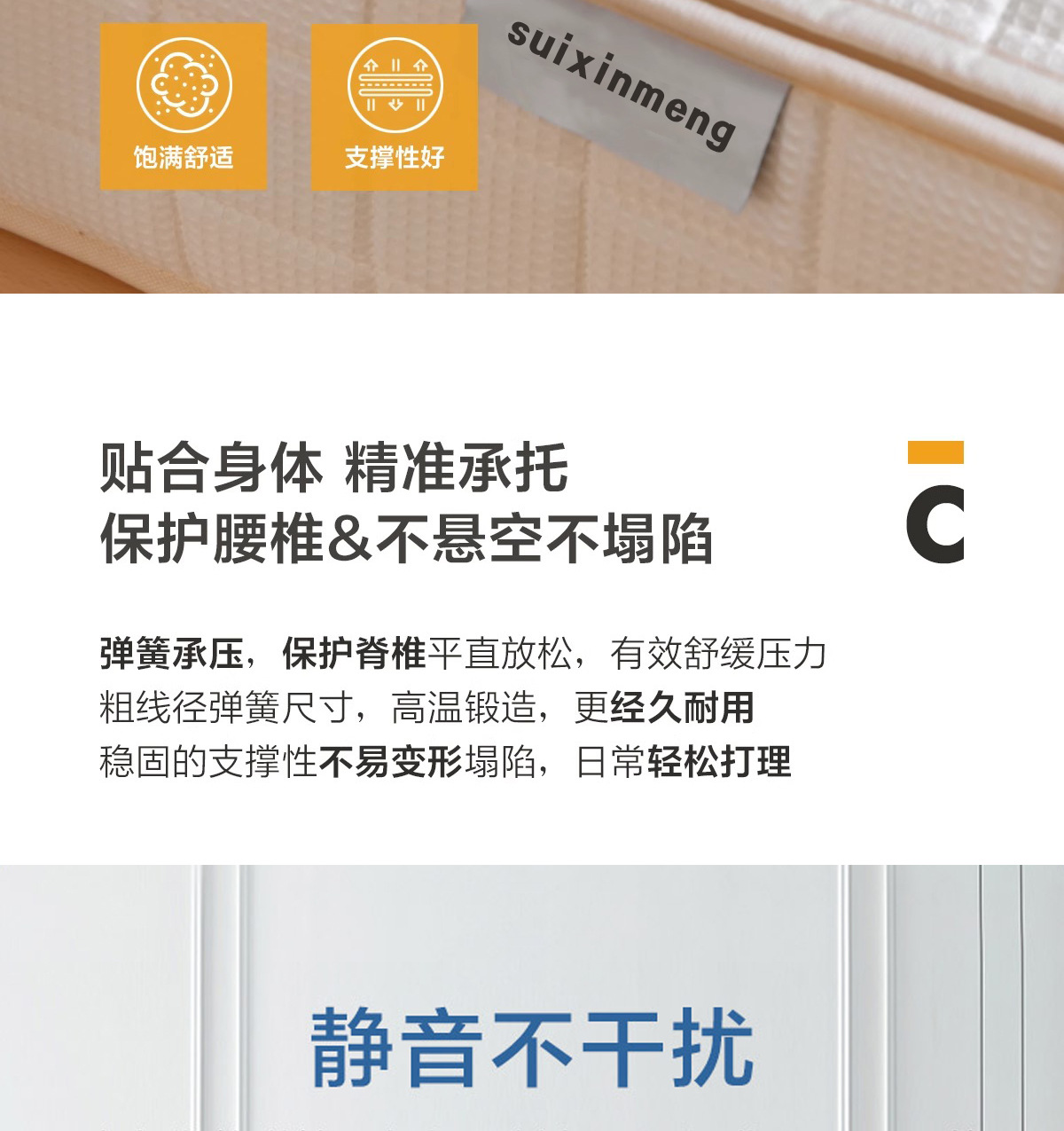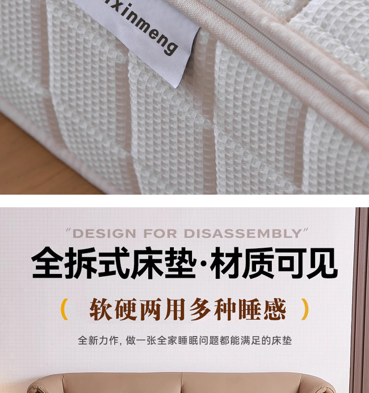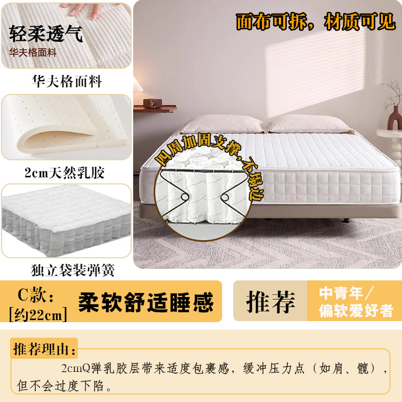 席梦思护脊床垫双人软硬适中独立袋装弹簧黄麻乳胶偏硬家用可拆卸