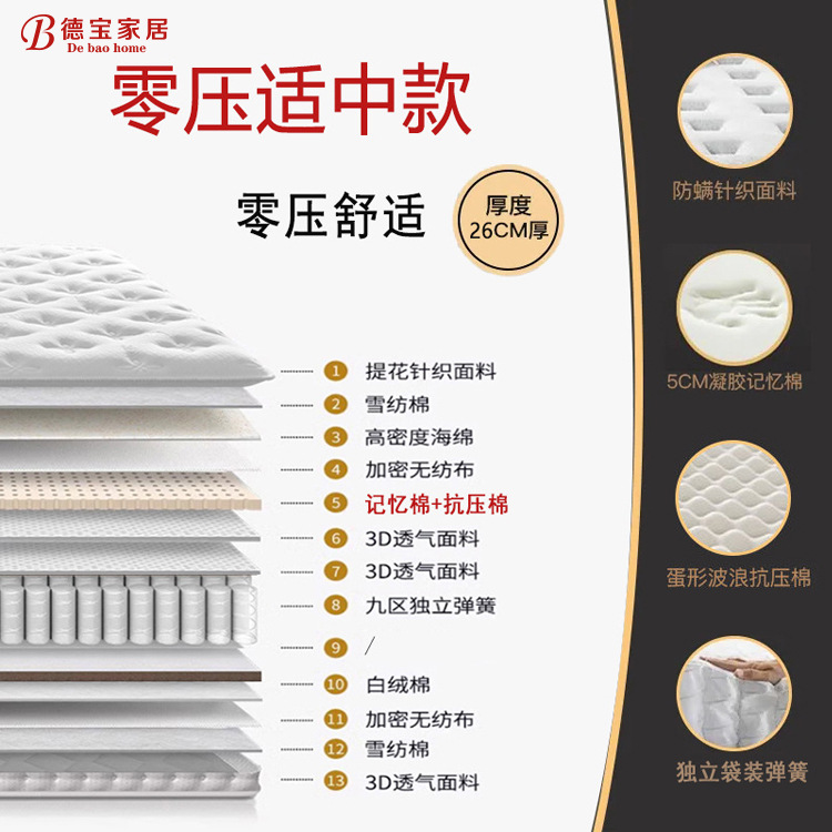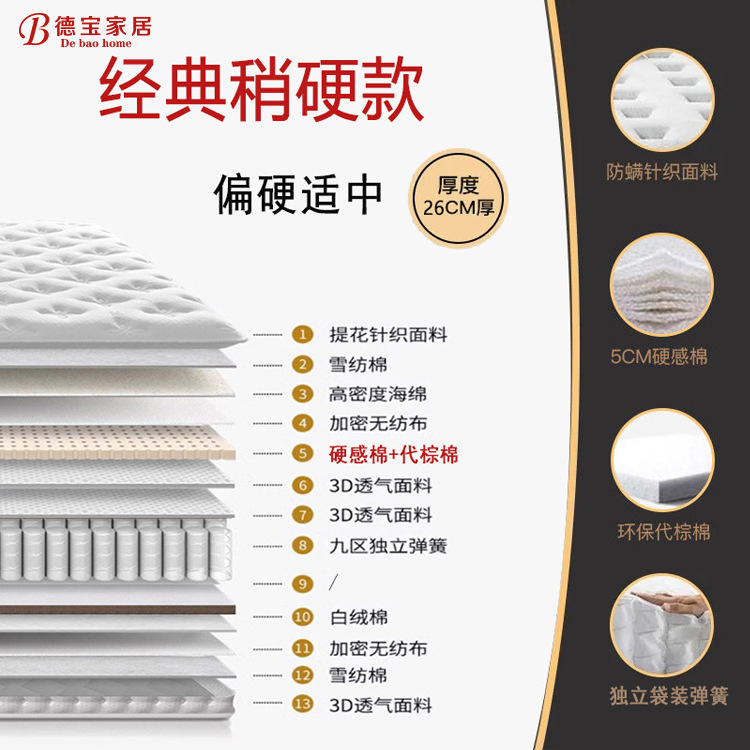 希尔顿酒店专用独立袋装弹簧乳胶记忆棉家用款民宿公寓席梦思床垫