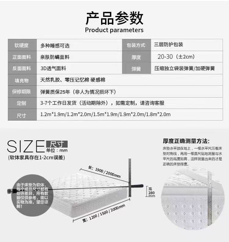 床垫厚款超厚卷包床垫家用独立袋装弹簧乳胶床垫家用酒店民宿盒子