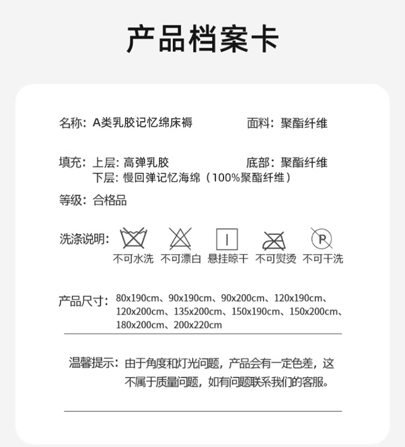 | 150 * 190cm [0 pressure deep sleep authoritative quality inspection collapse guaranteed compensation] class a antibacterial(150*190cm【0压深睡眠丨权威质检丨塌陷包赔】A类抗菌) | USD $22.6 | 200 piece available |