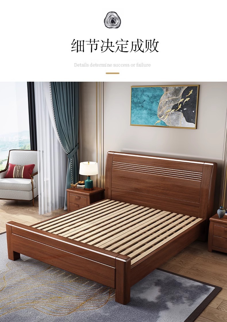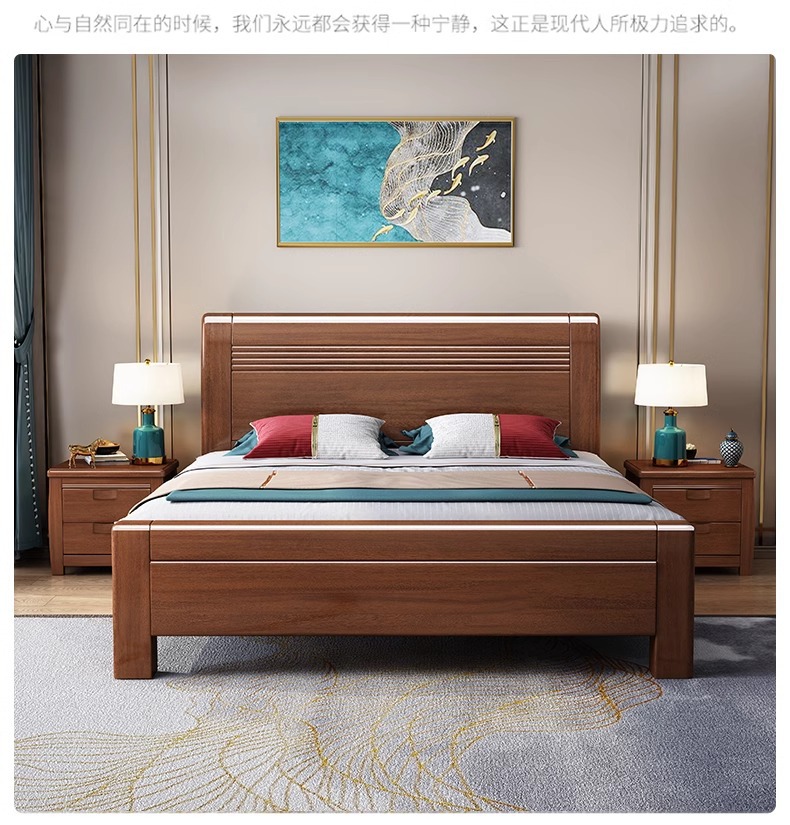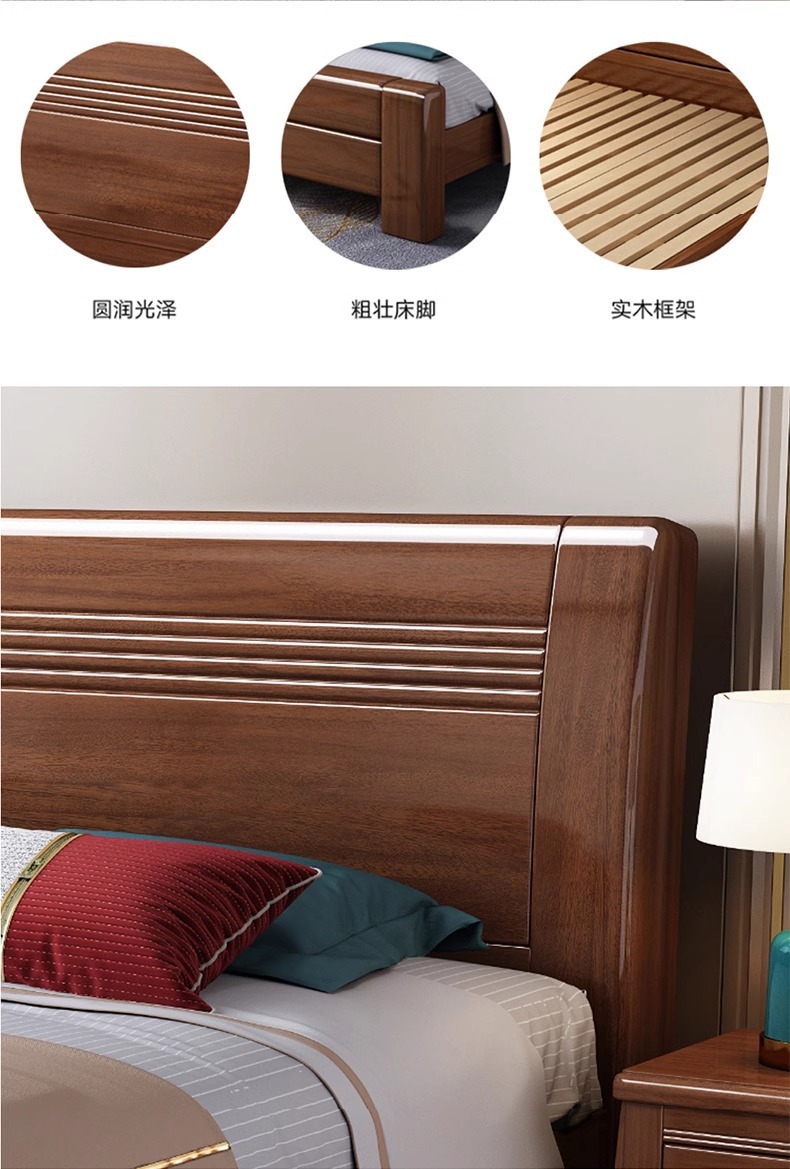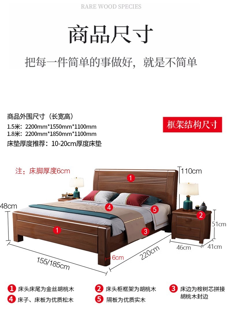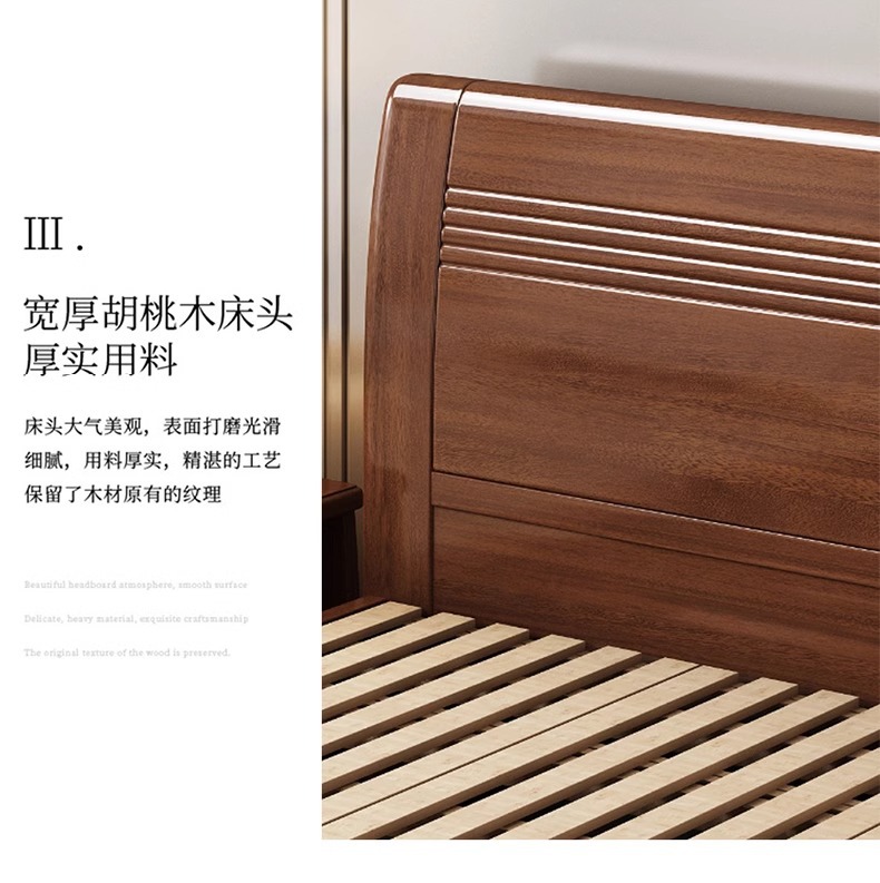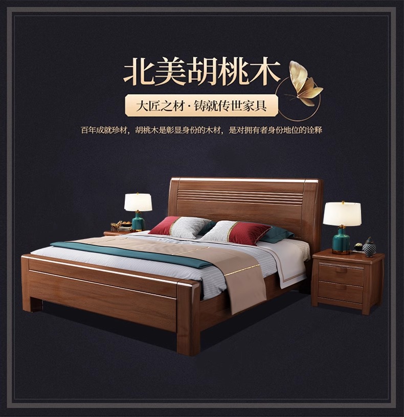 实木床厂家直销韧性好家具色泽润强度高双人床实木简约胡桃木色