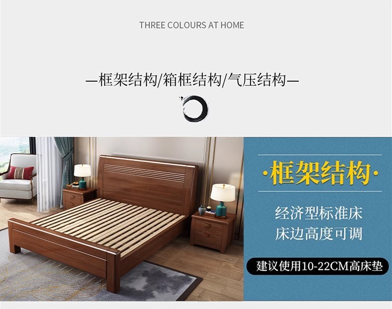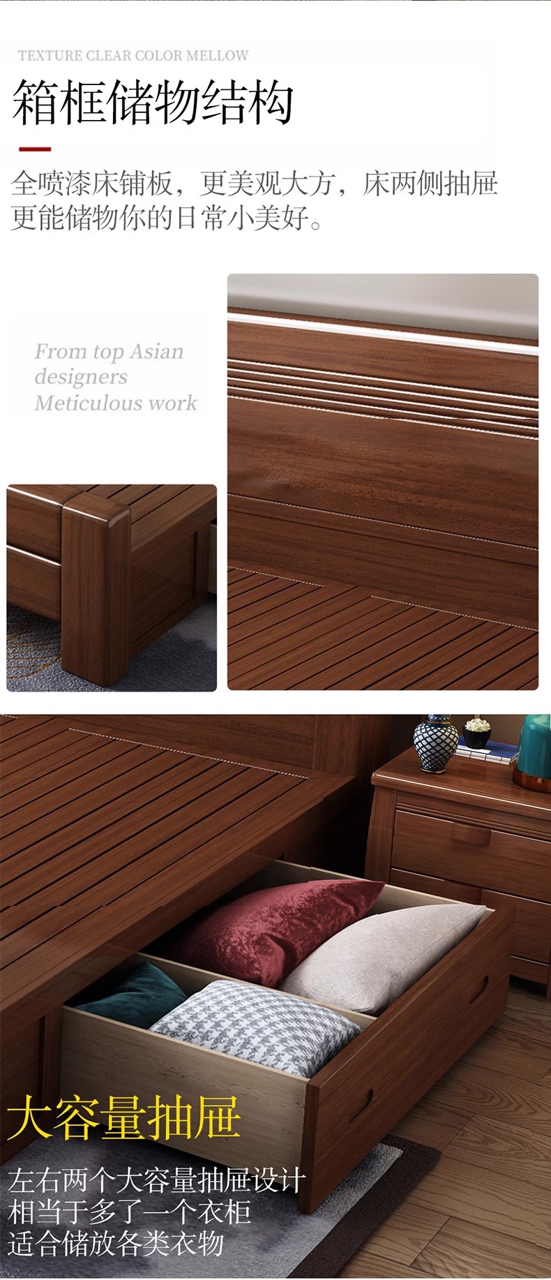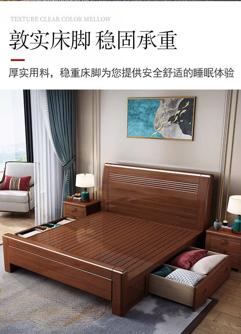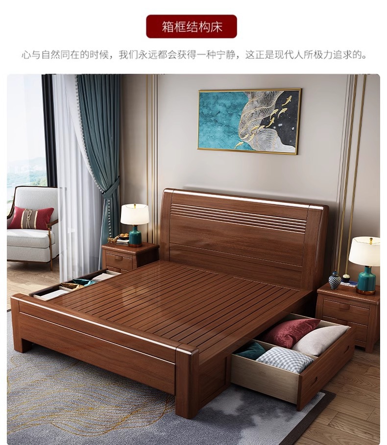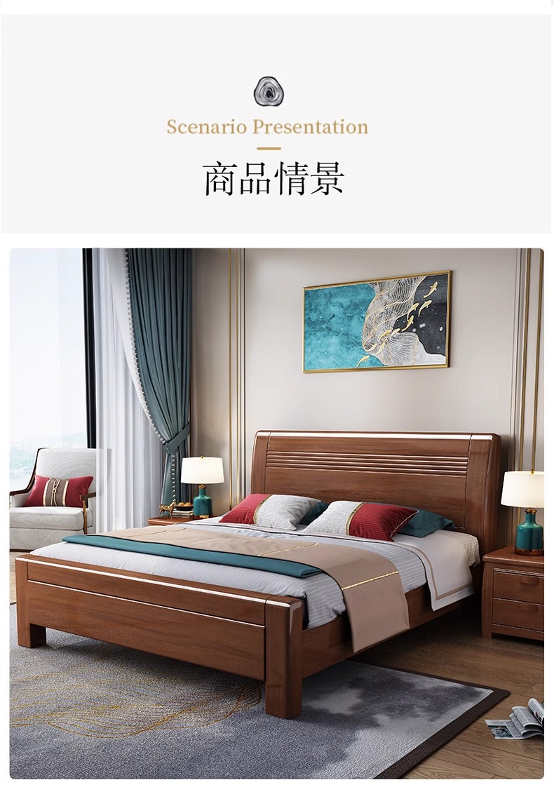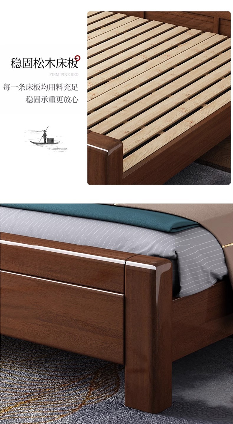 实木床厂家直销韧性好家具色泽润强度高双人床实木简约胡桃木色
