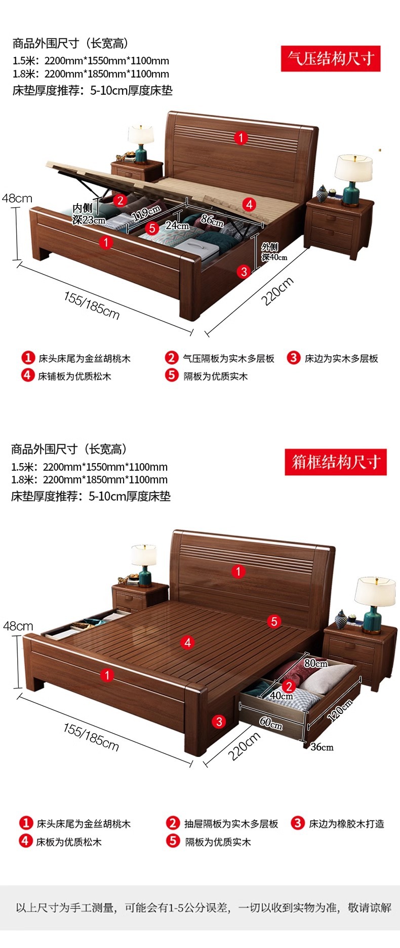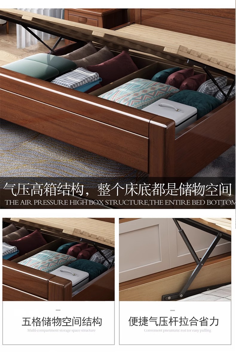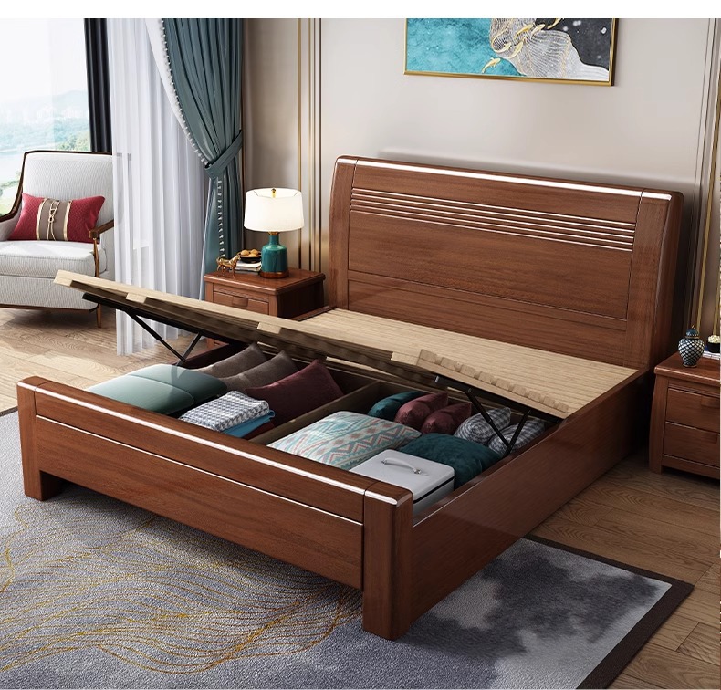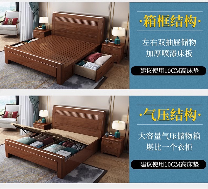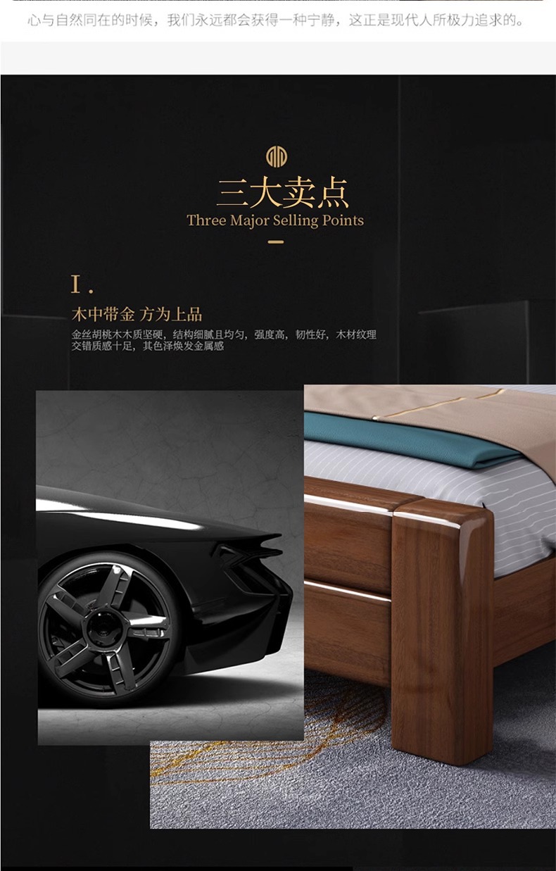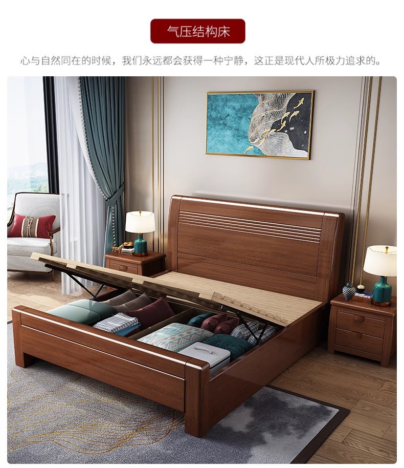 实木床厂家直销韧性好家具色泽润强度高双人床实木简约胡桃木色