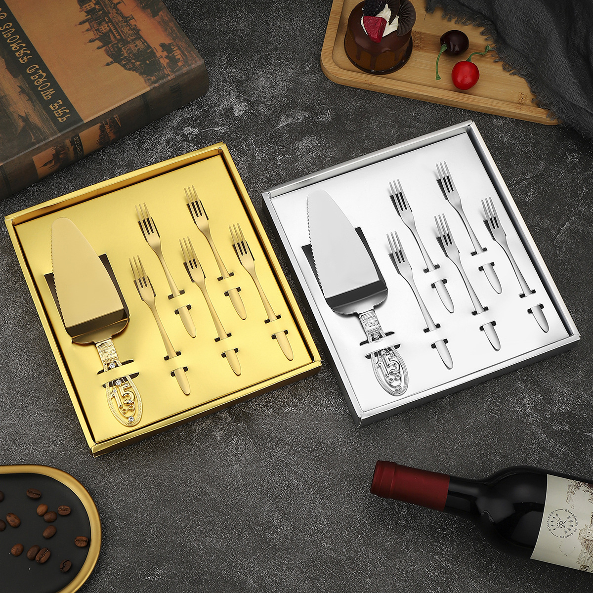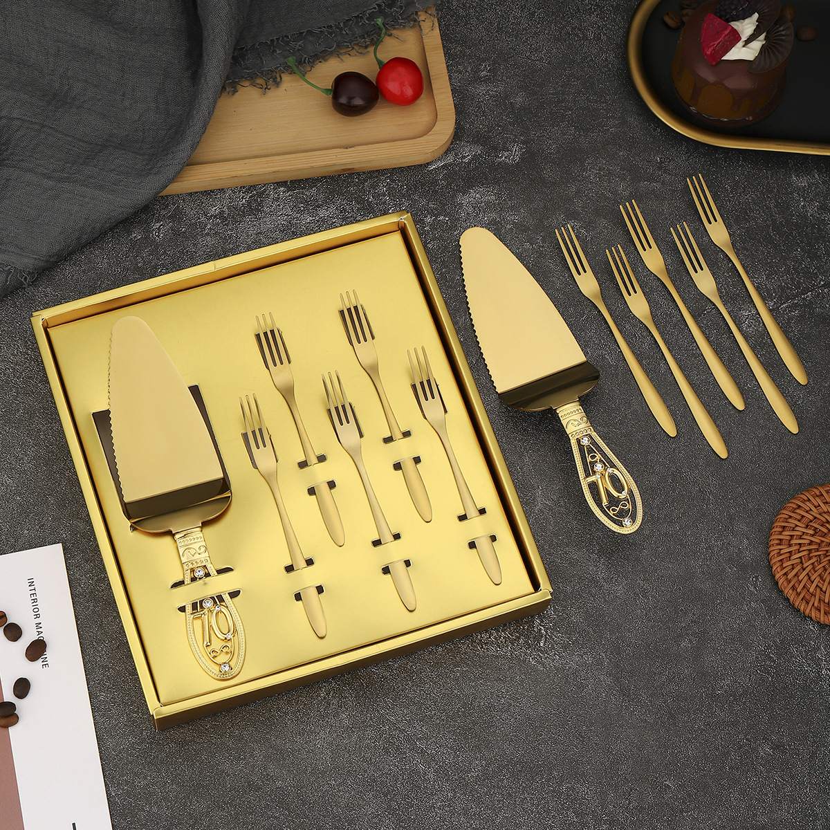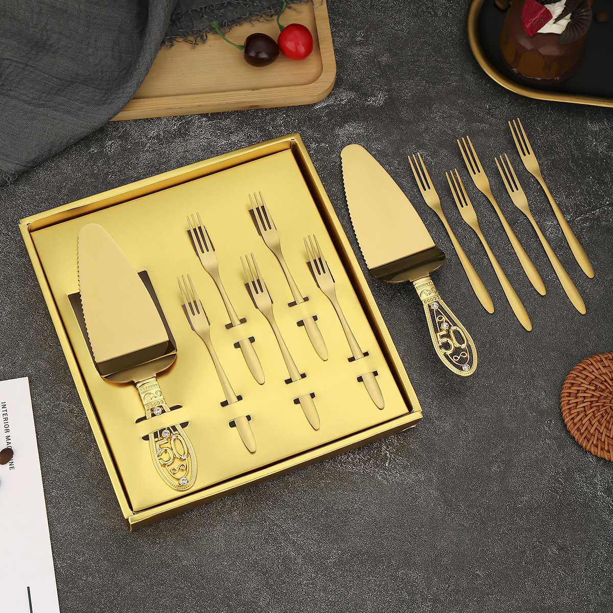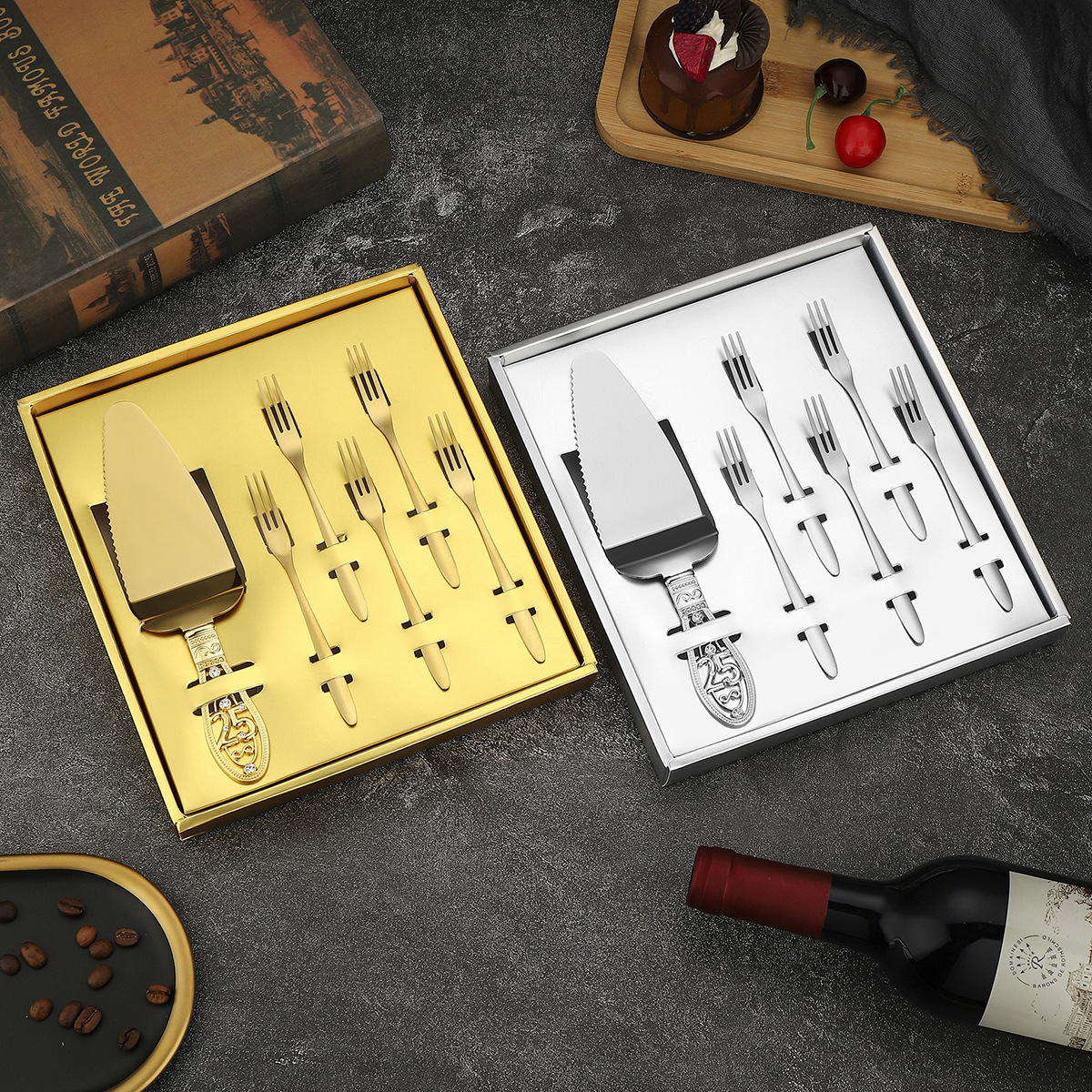 跨境创意生日蛋糕刀叉套装高档礼盒食品级数字婚庆派对小礼品餐具