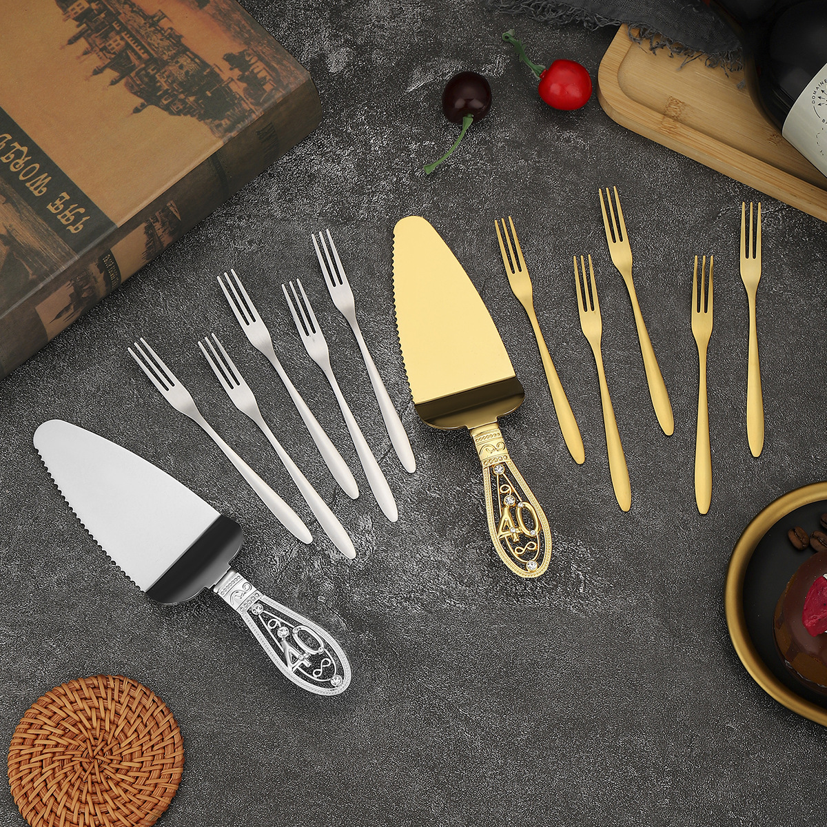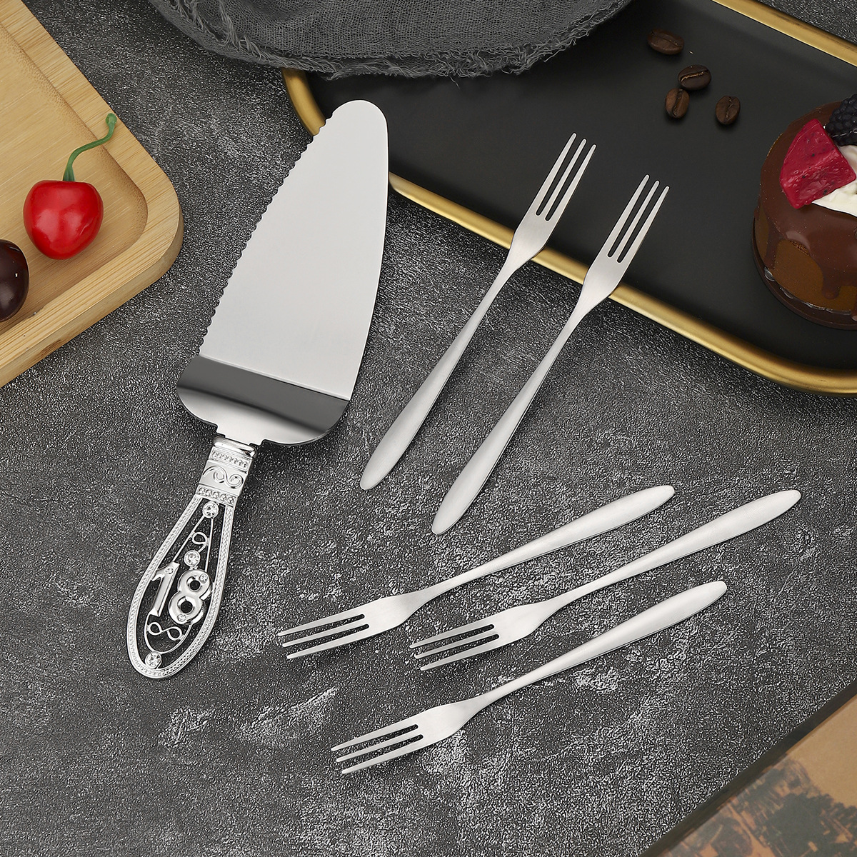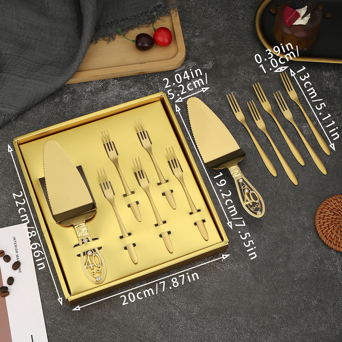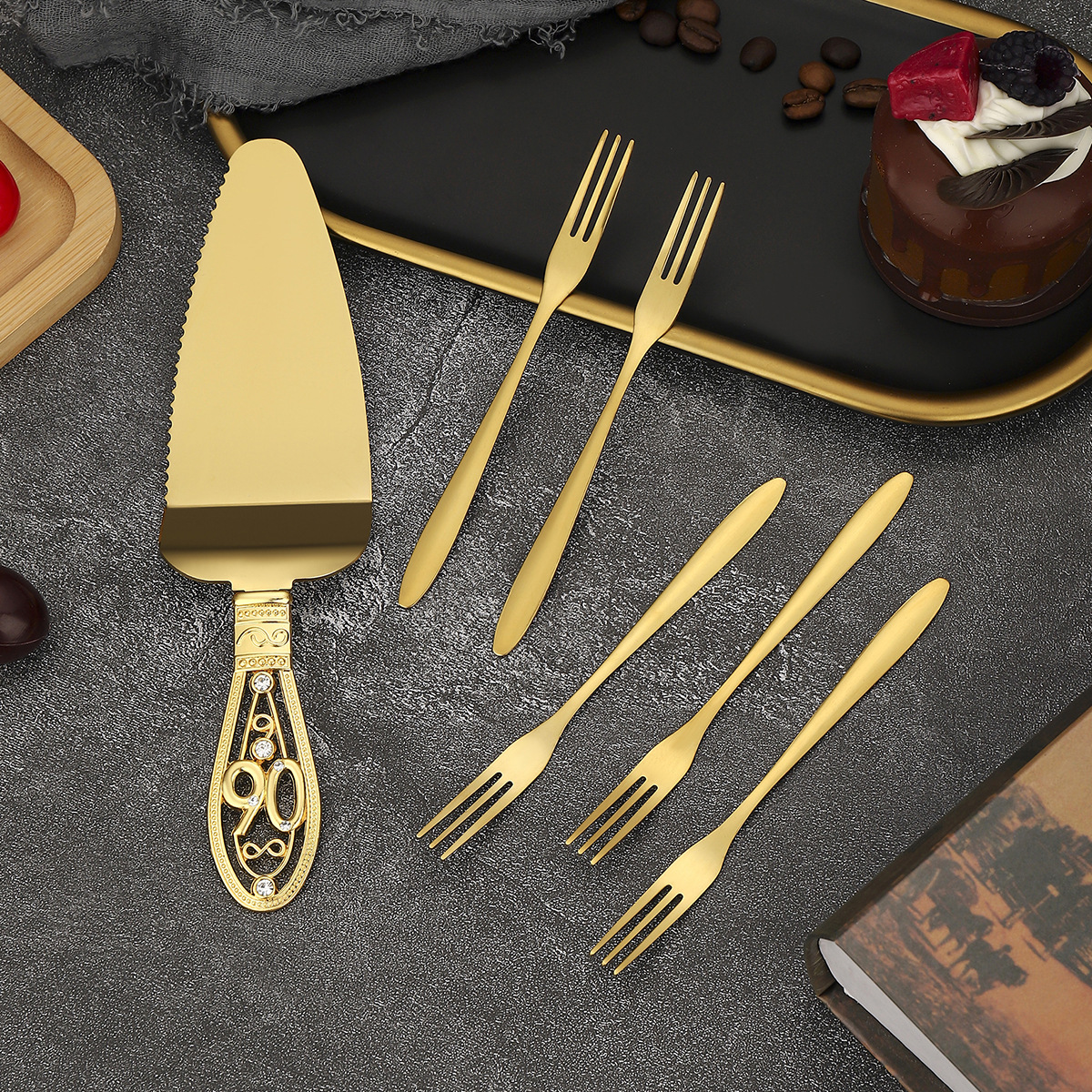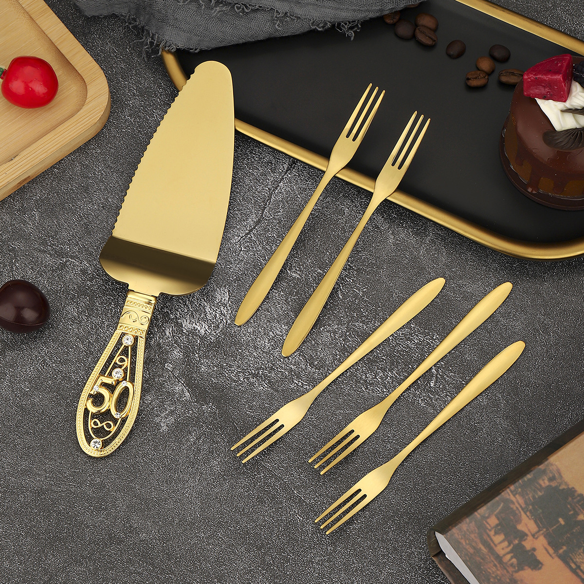 跨境创意生日蛋糕刀叉套装高档礼盒食品级数字婚庆派对小礼品餐具