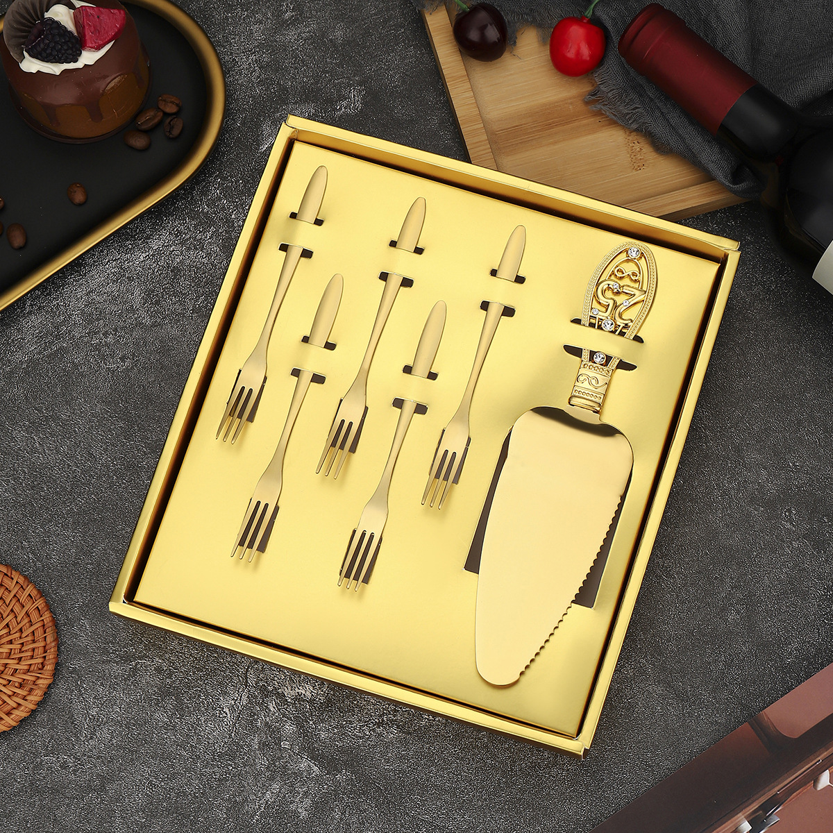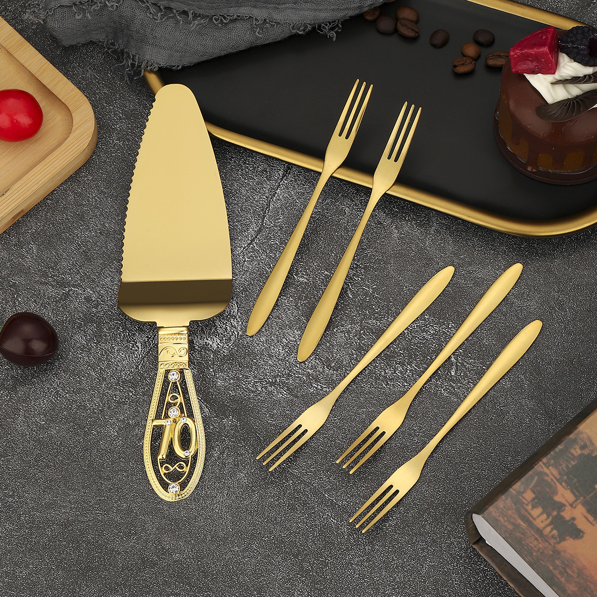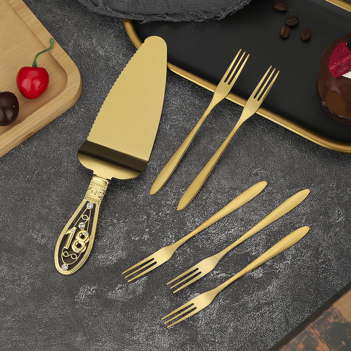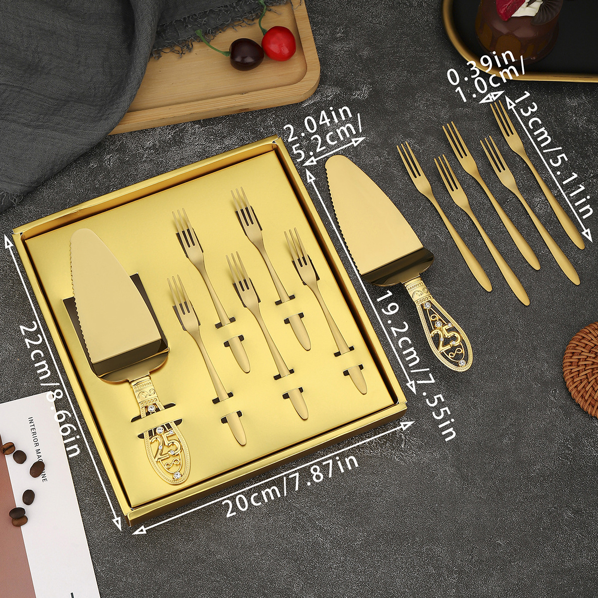跨境创意生日蛋糕刀叉套装高档礼盒食品级数字婚庆派对小礼品餐具