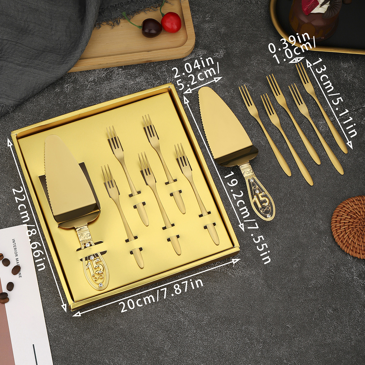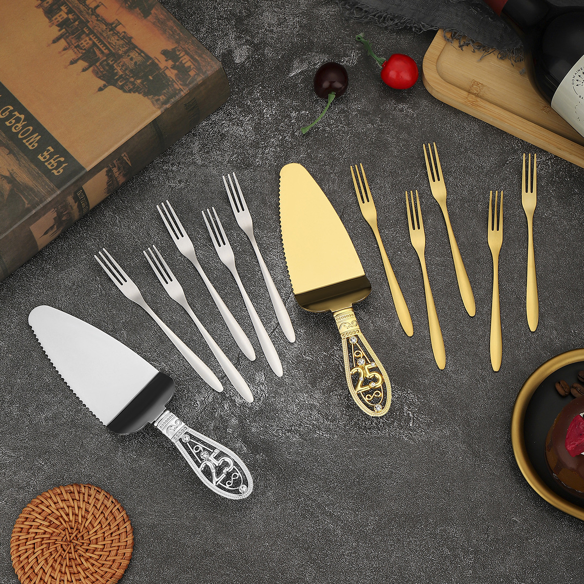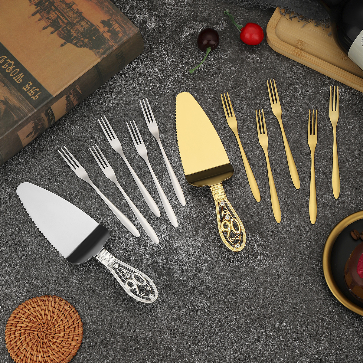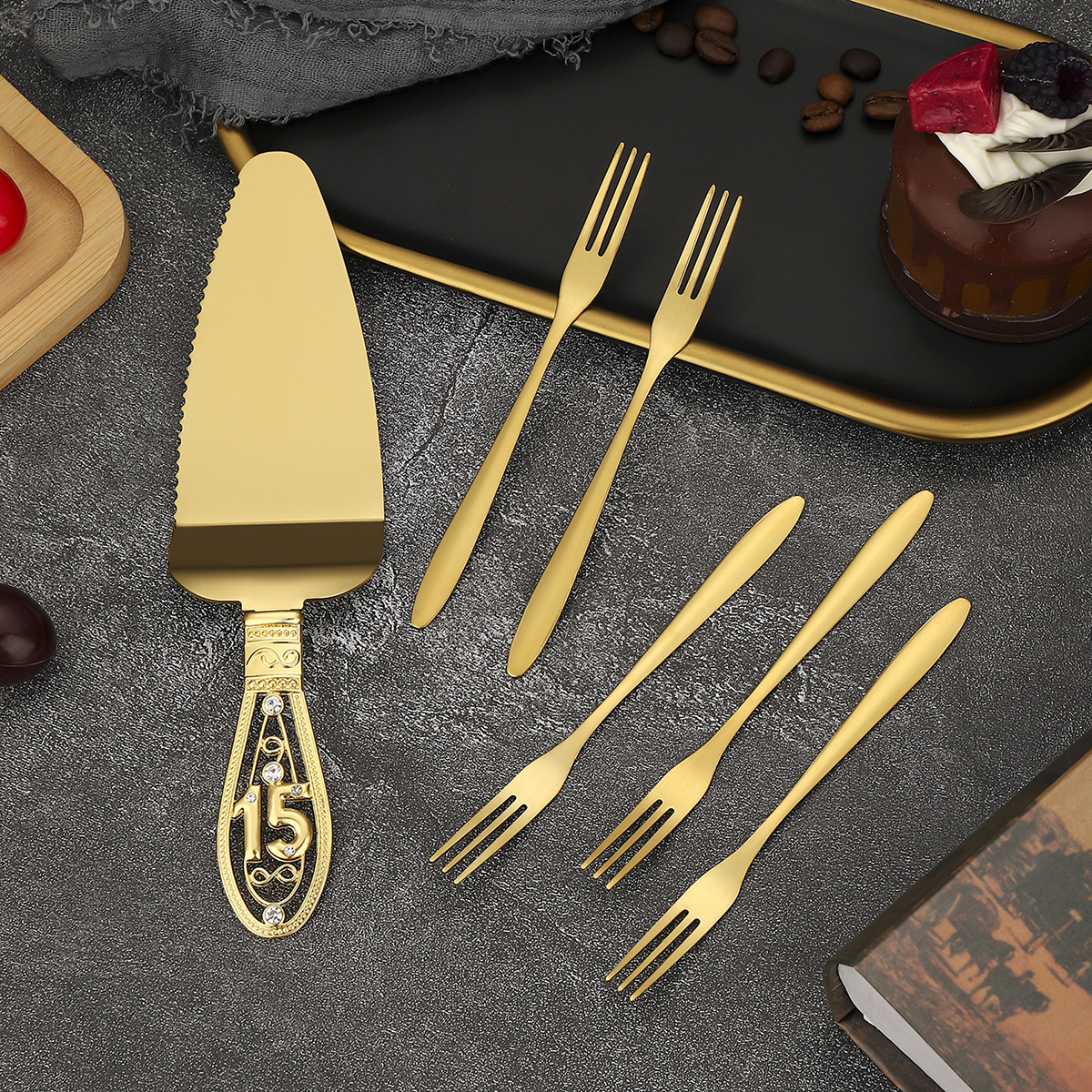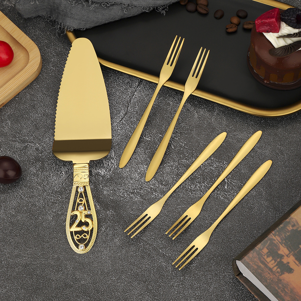 跨境创意生日蛋糕刀叉套装高档礼盒食品级数字婚庆派对小礼品餐具