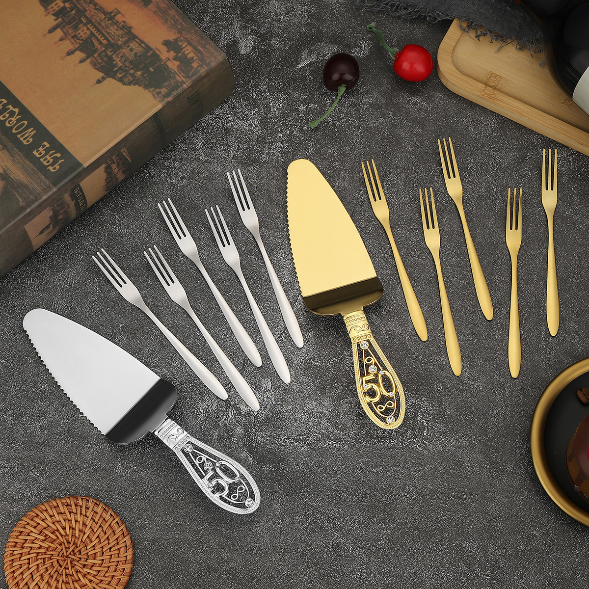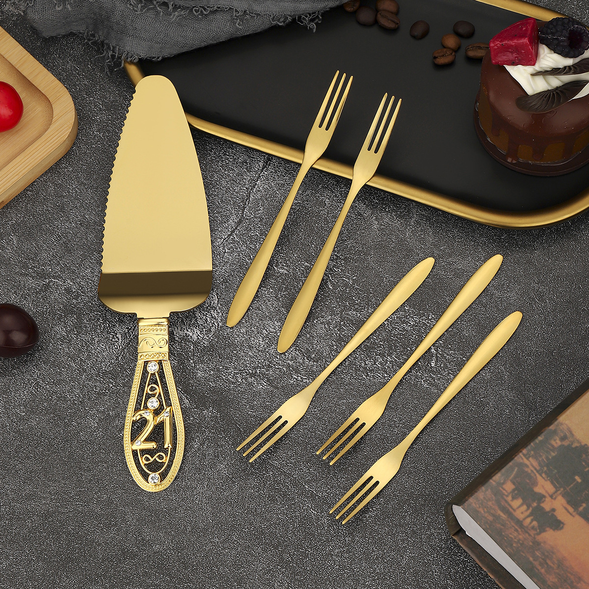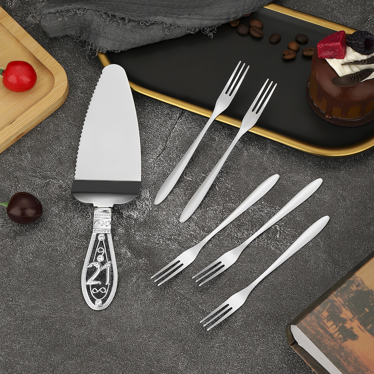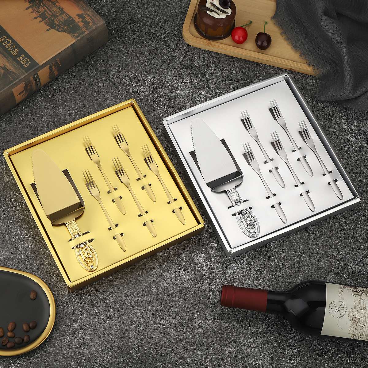 跨境创意生日蛋糕刀叉套装高档礼盒食品级数字婚庆派对小礼品餐具