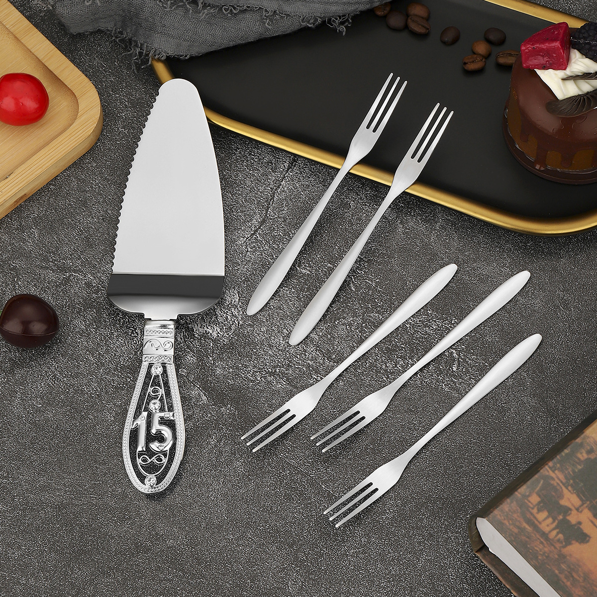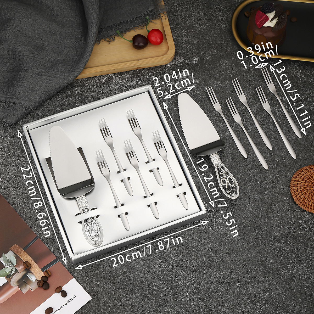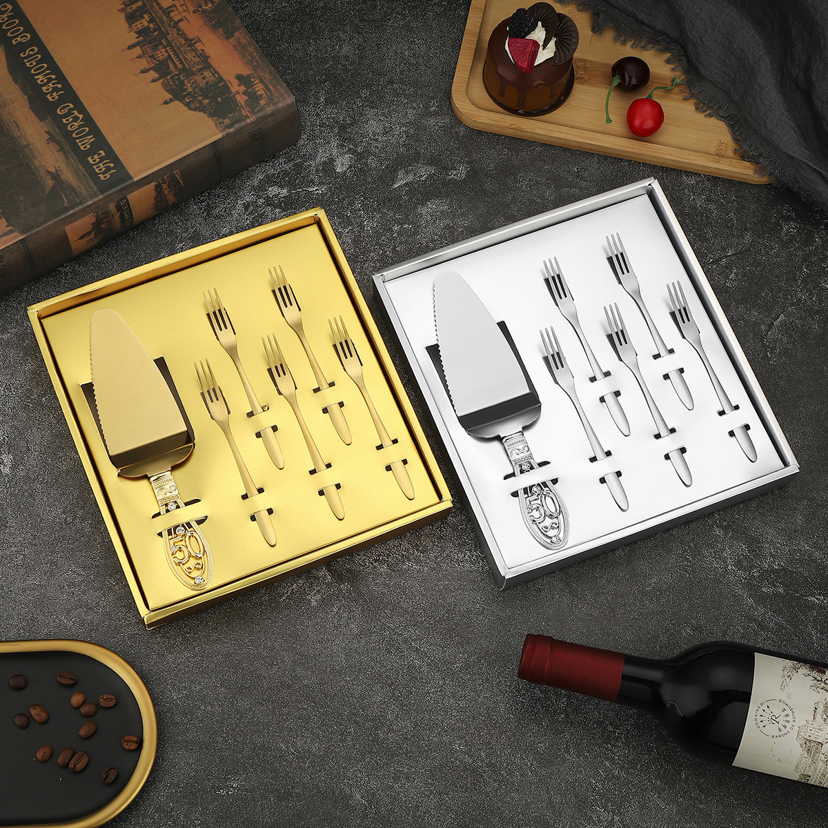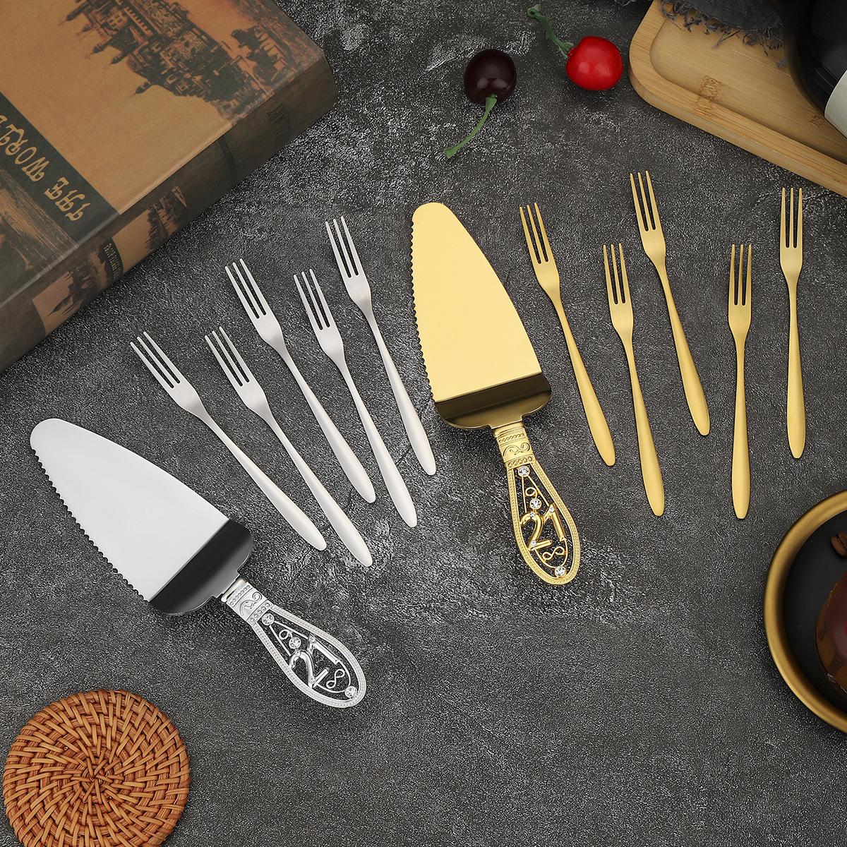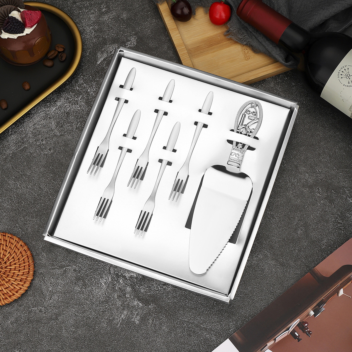 跨境创意生日蛋糕刀叉套装高档礼盒食品级数字婚庆派对小礼品餐具