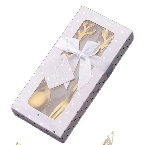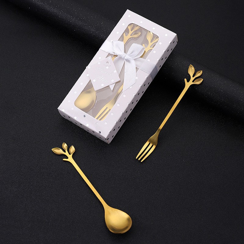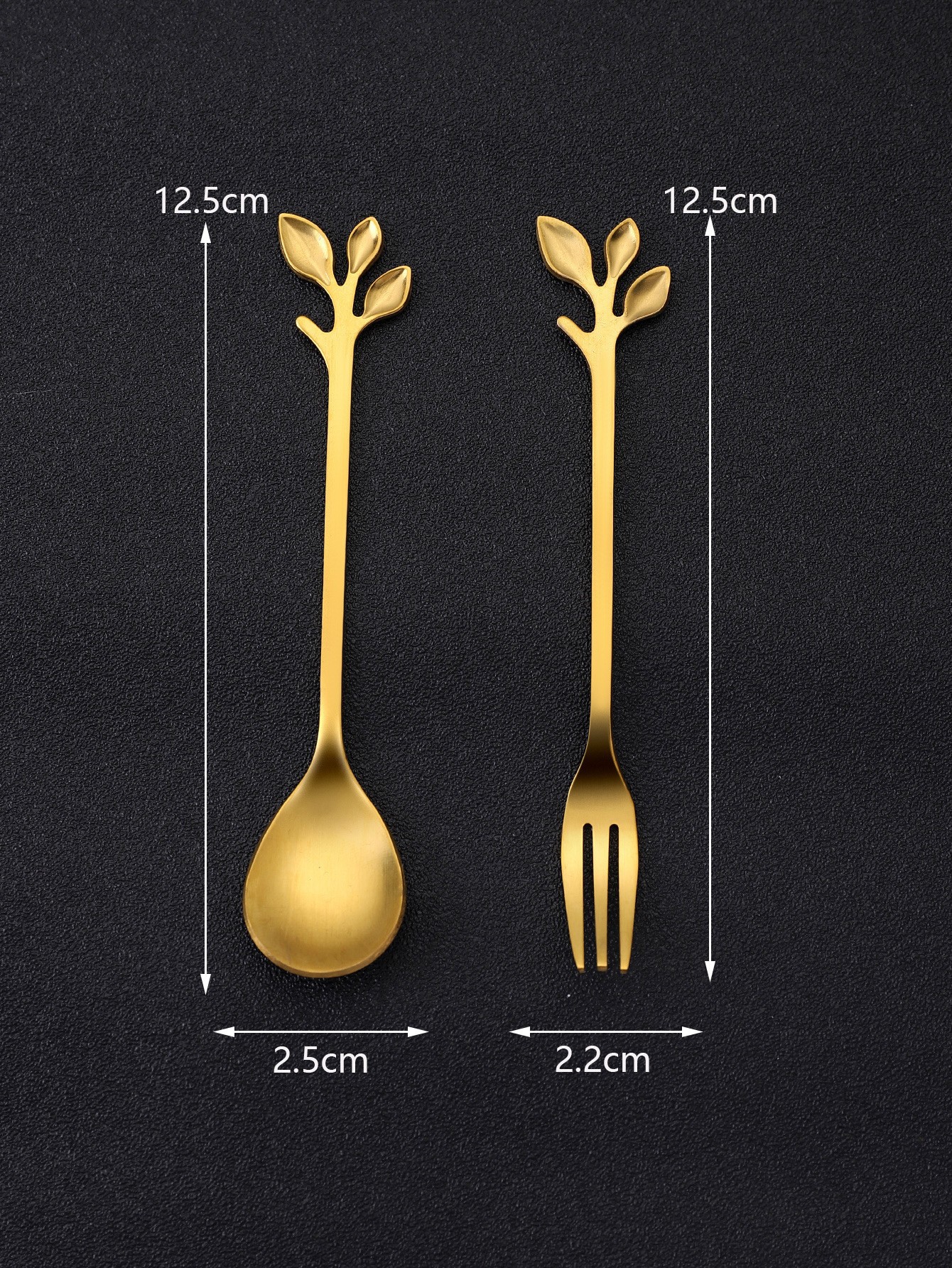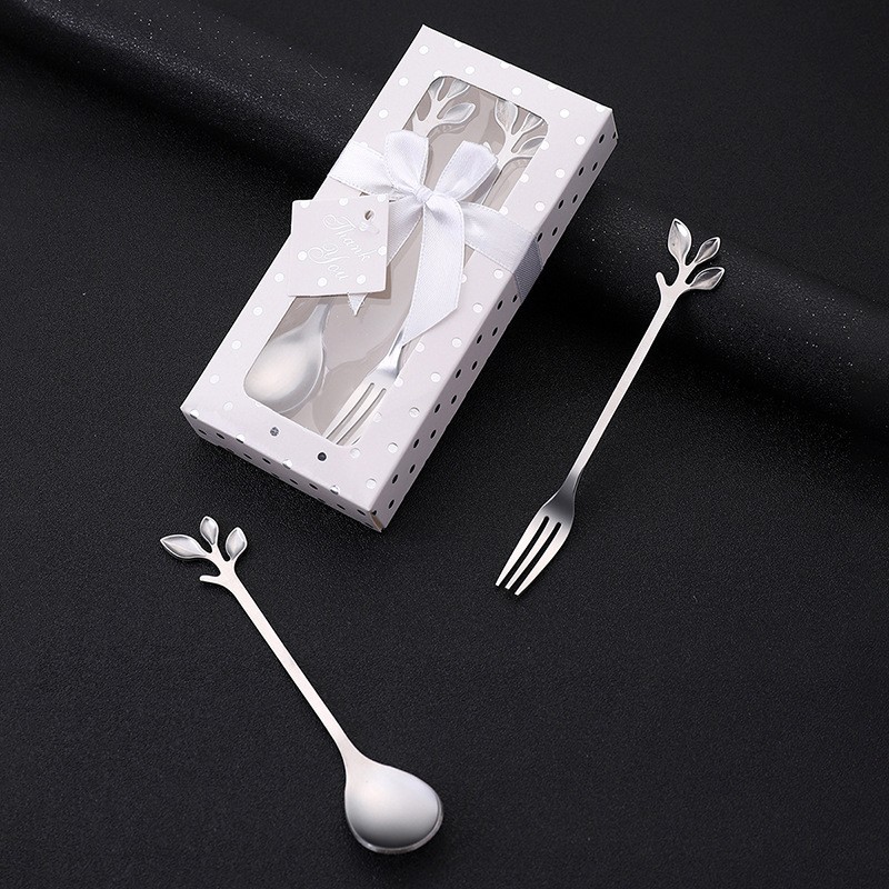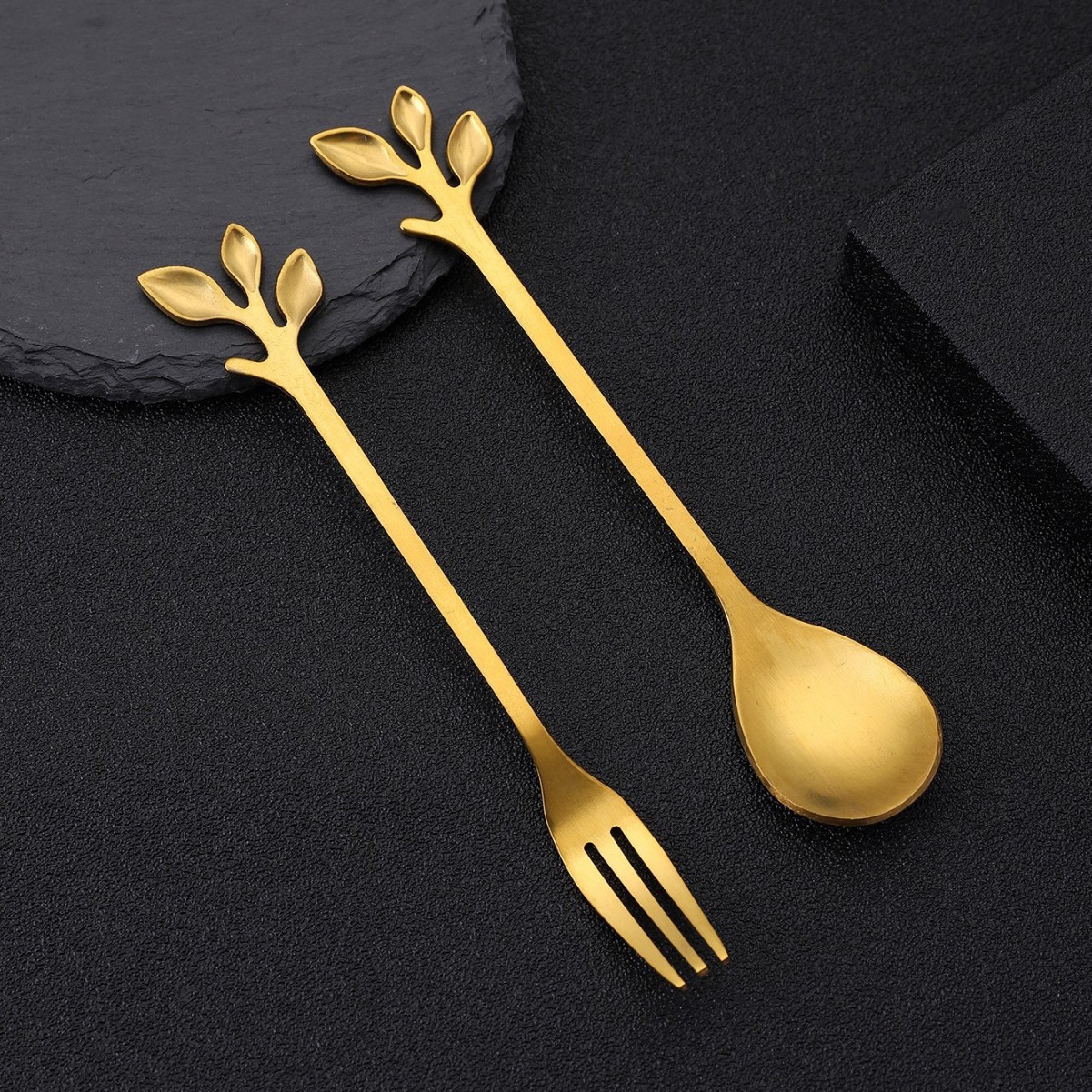 亚马逊热销树叶勺叉不锈钢家用水果叉咖啡搅拌甜品勺婚庆节日礼品