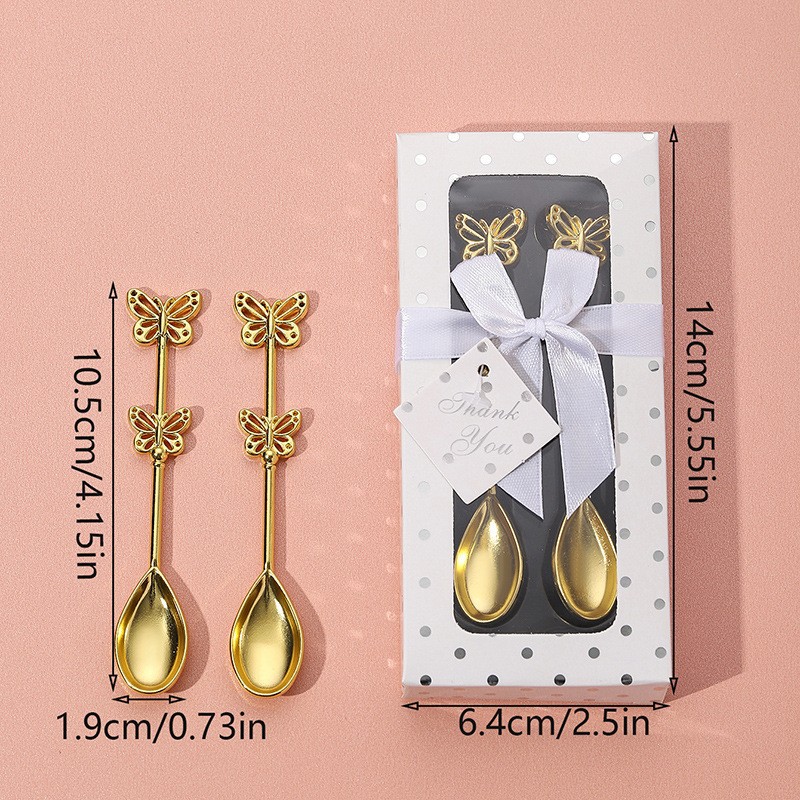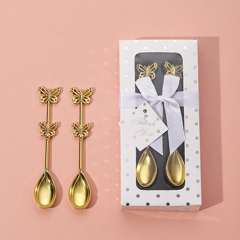 亚马逊蝴蝶勺不锈钢咖啡甜品勺情人节伴手礼搅拌勺婚庆金色套装