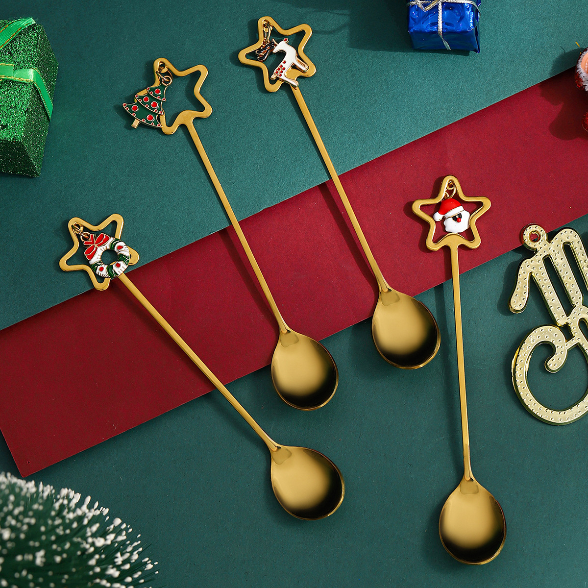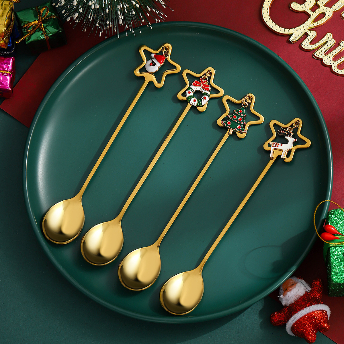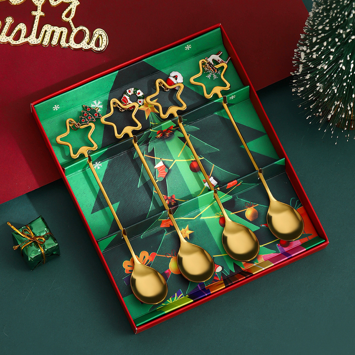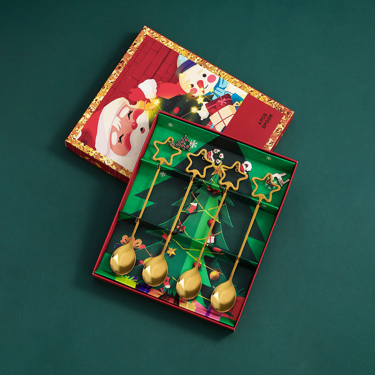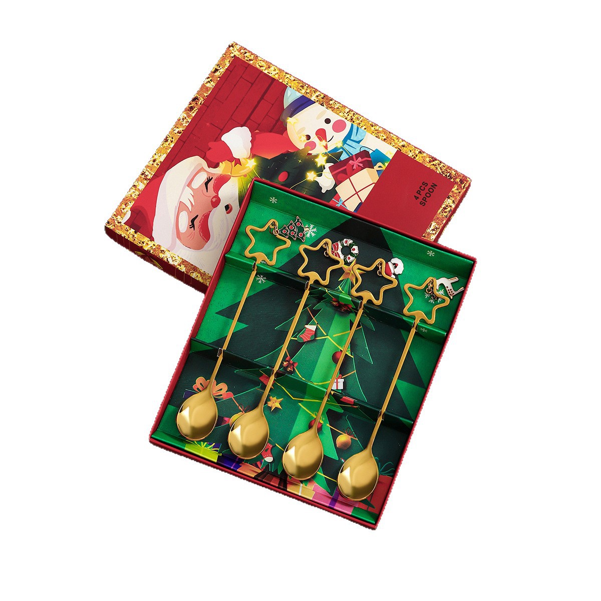 跨境不锈钢勺子圣诞节套装吊坠咖啡搅拌勺圣诞礼盒礼品勺圣诞限定