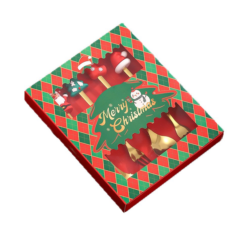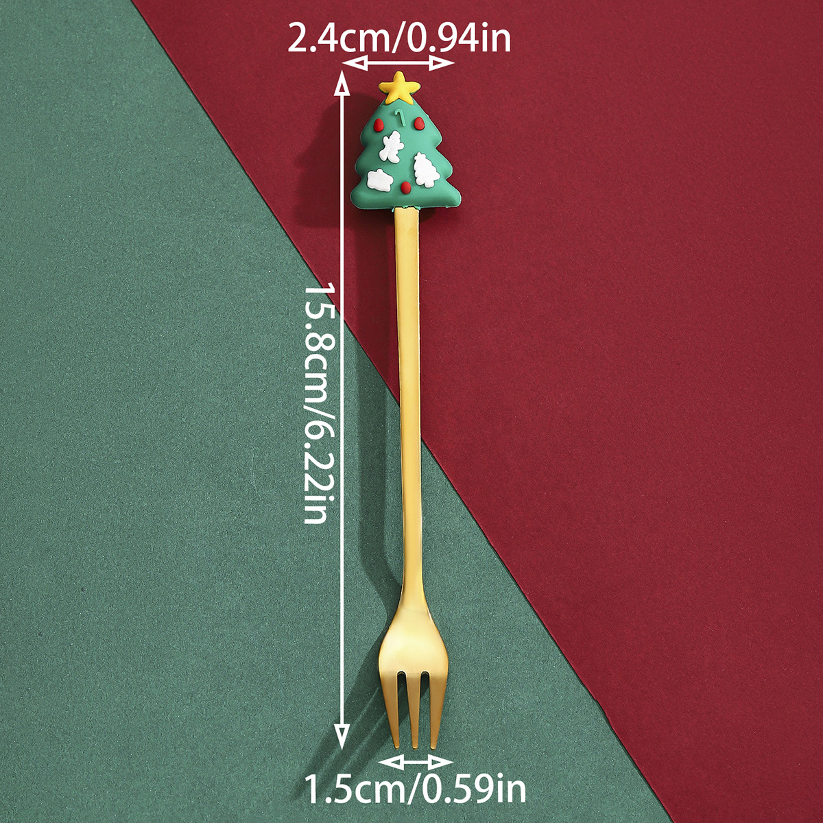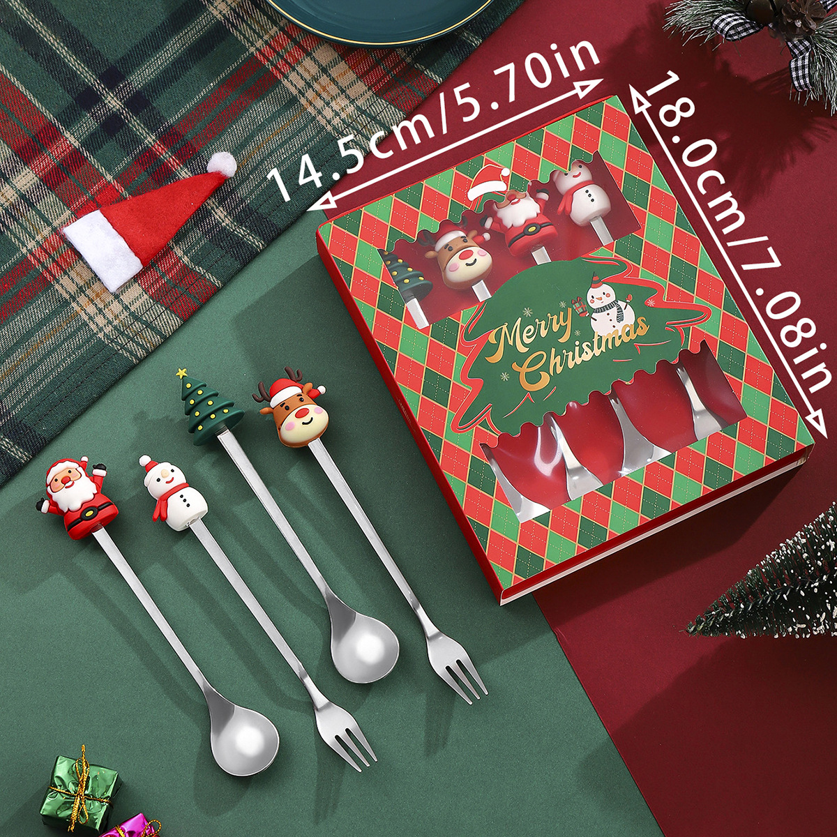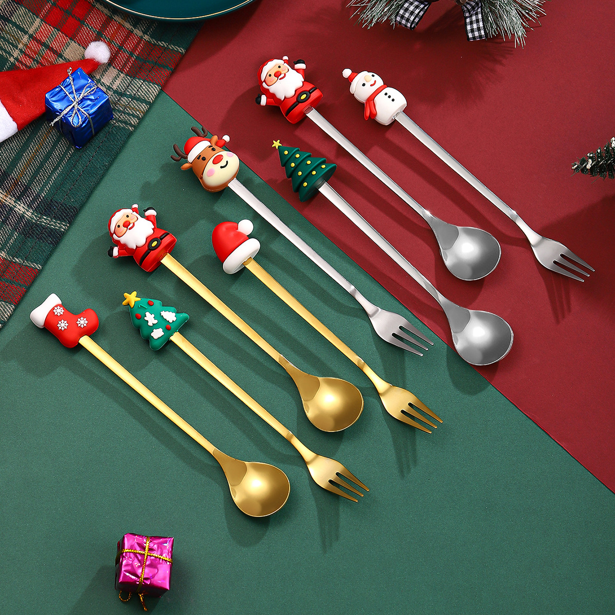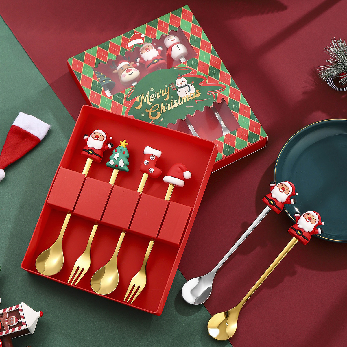 圣诞节勺叉4套装不锈钢餐具可爱卡通甜品咖啡勺水果叉圣诞节礼品