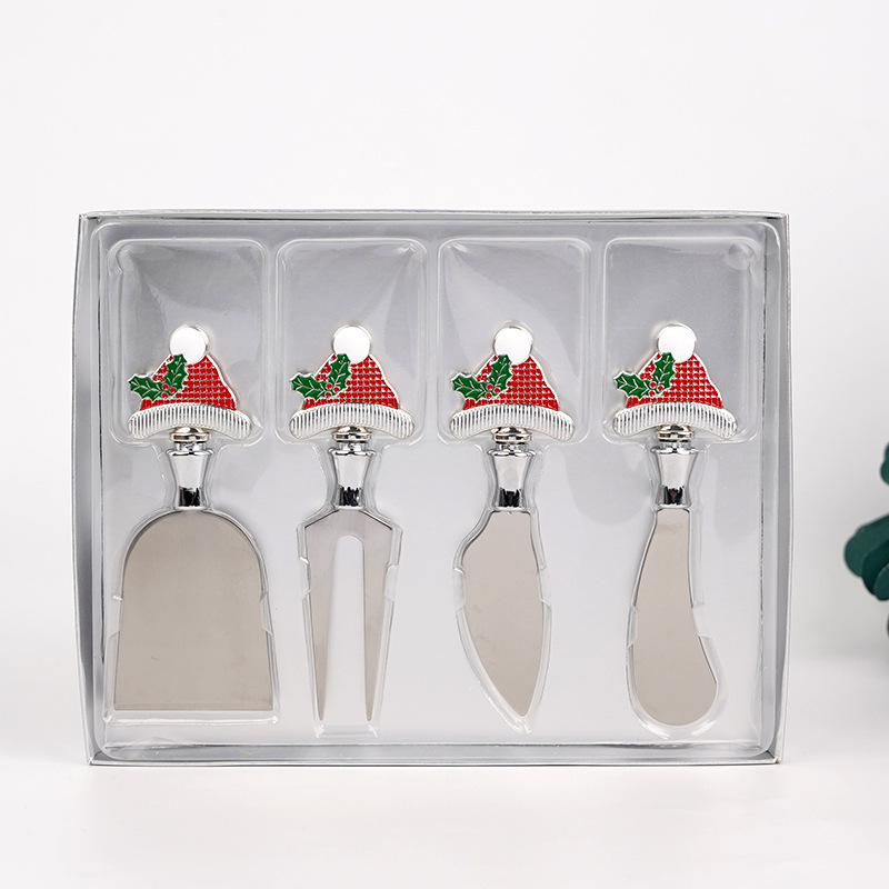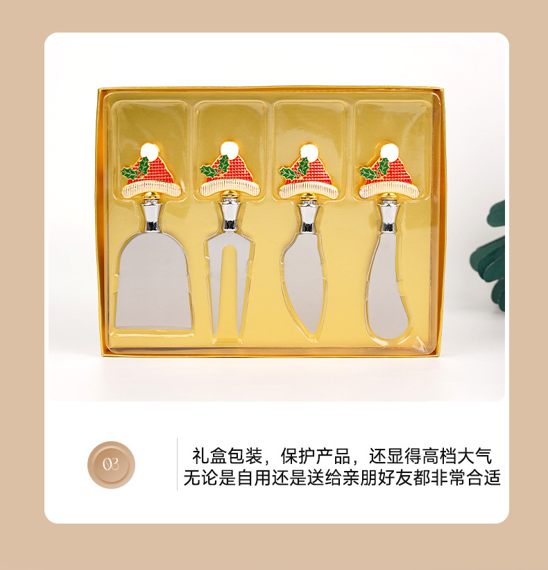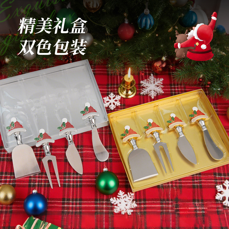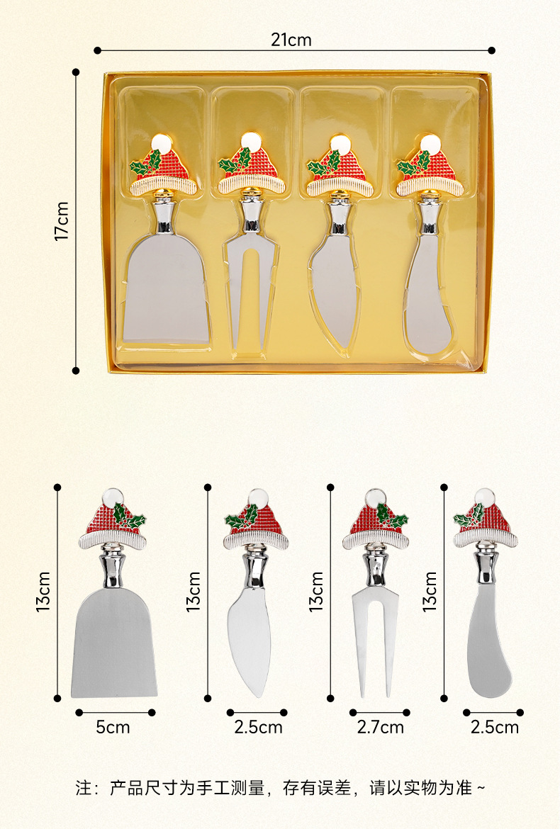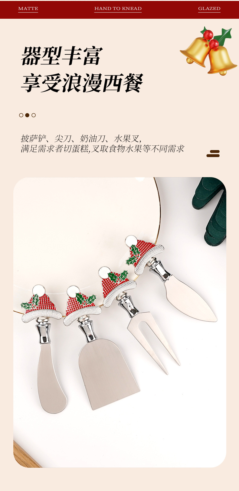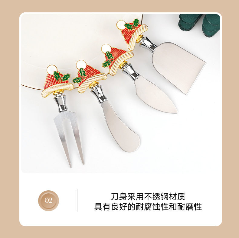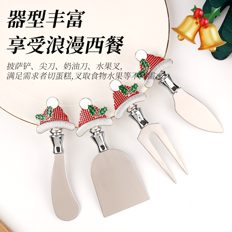 圣诞帽子刀叉套装 披萨铲创意刀叉圣诞礼盒餐具 奶油刀水果叉礼品