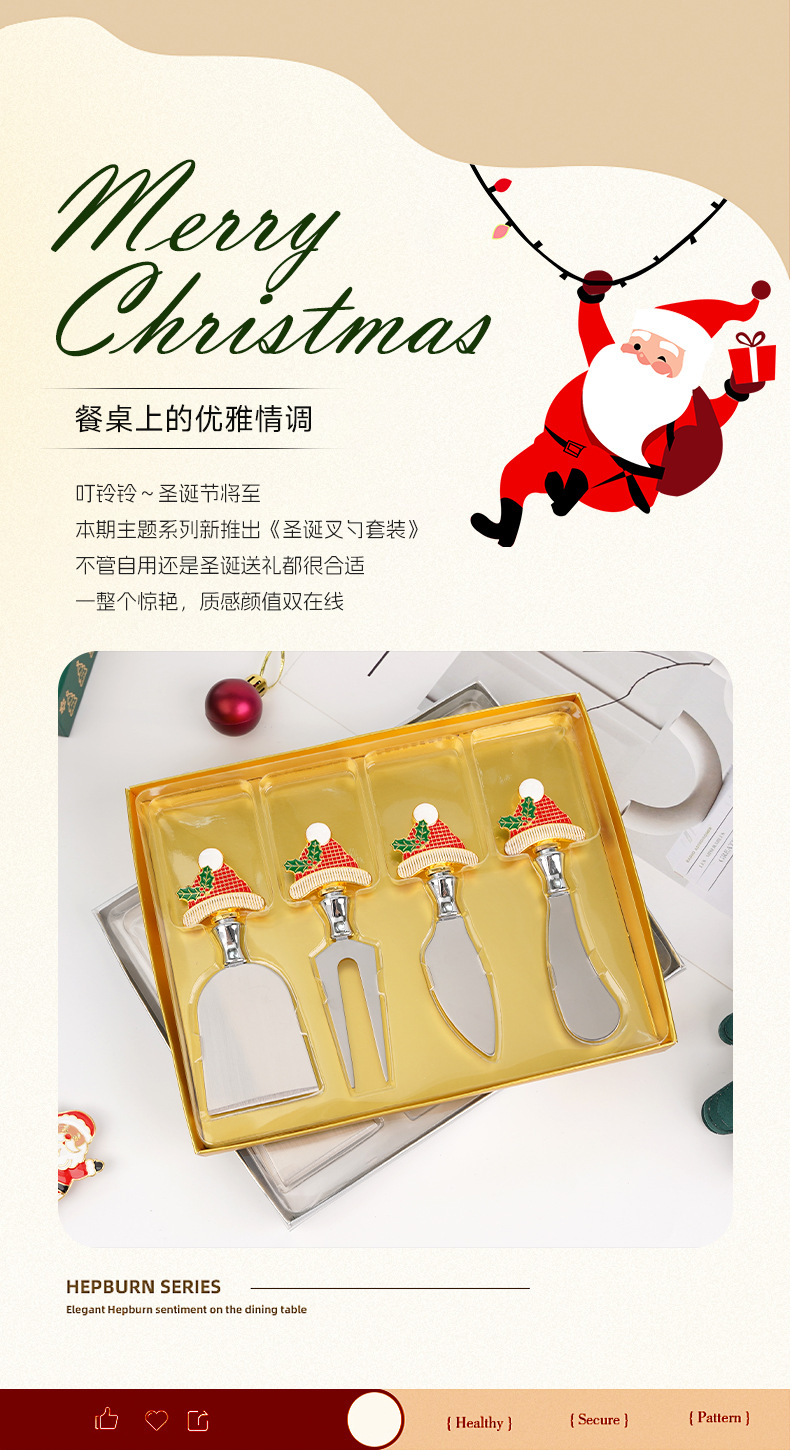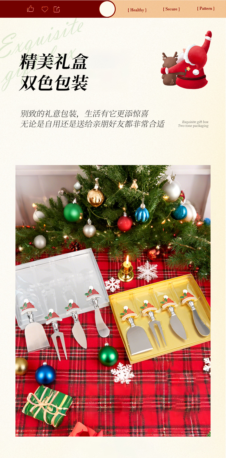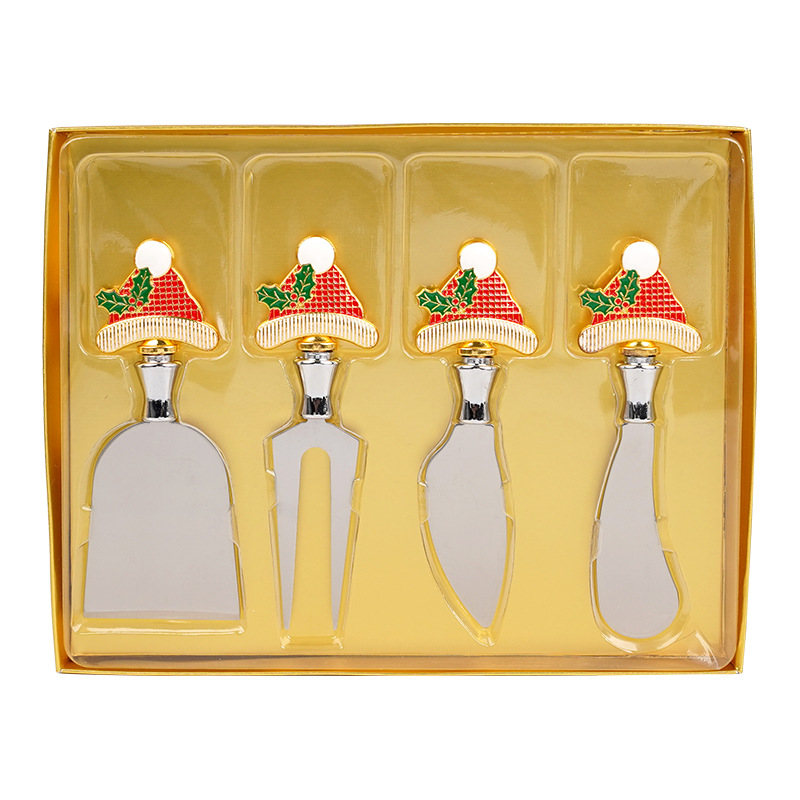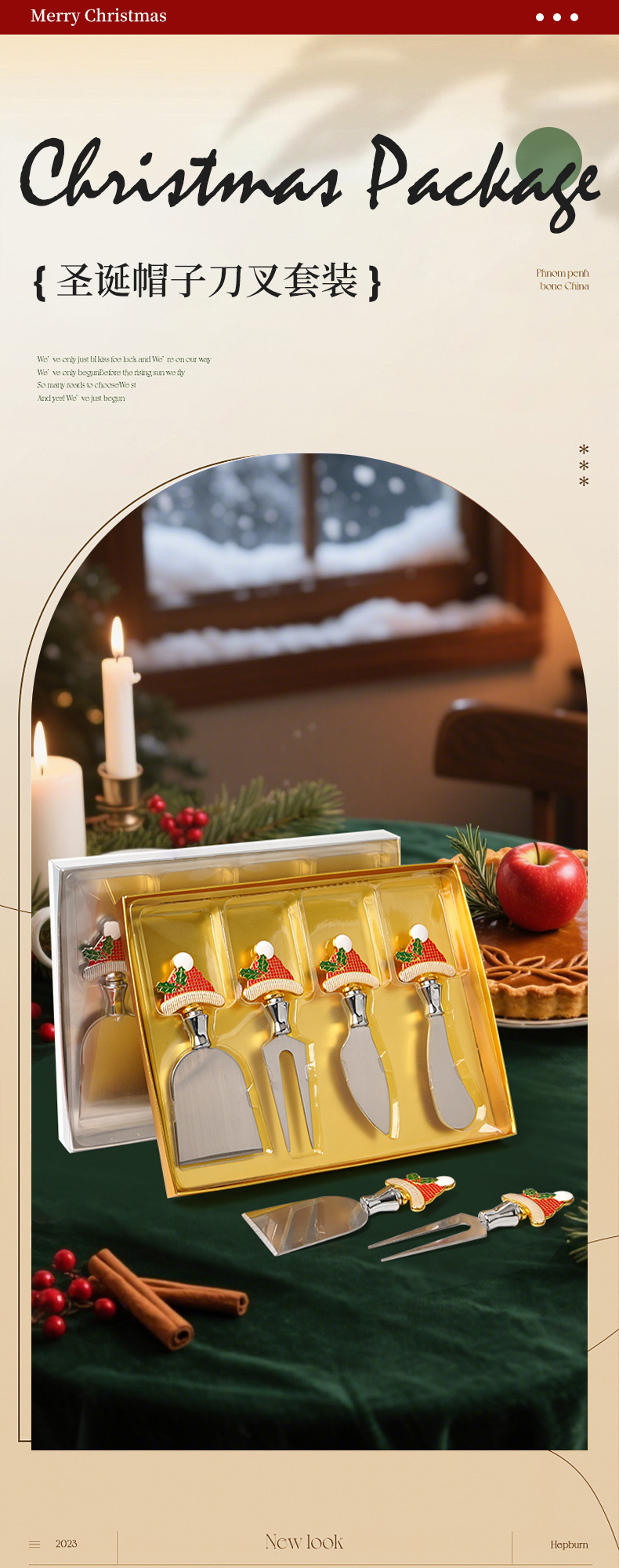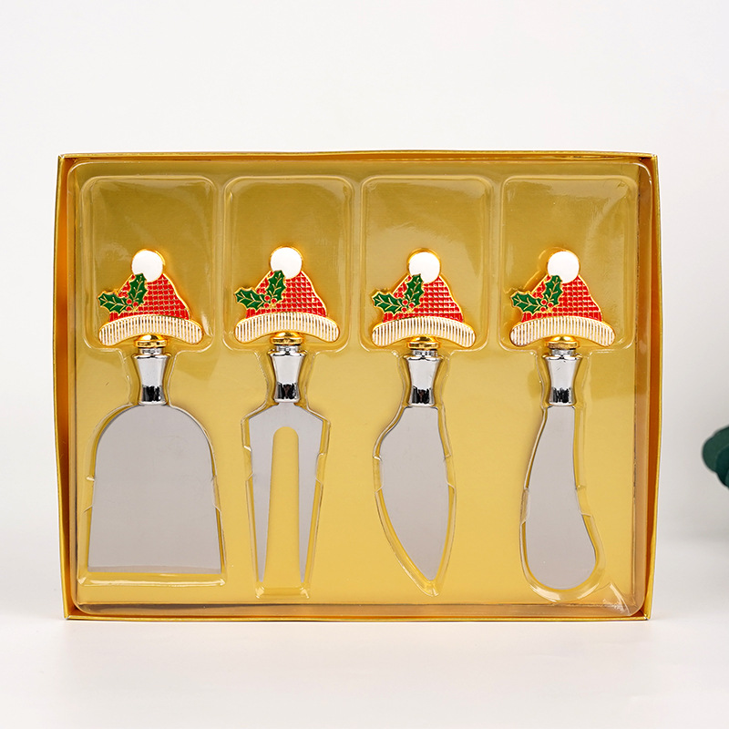 圣诞帽子刀叉套装 披萨铲创意刀叉圣诞礼盒餐具 奶油刀水果叉礼品