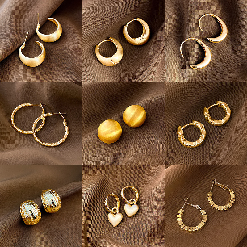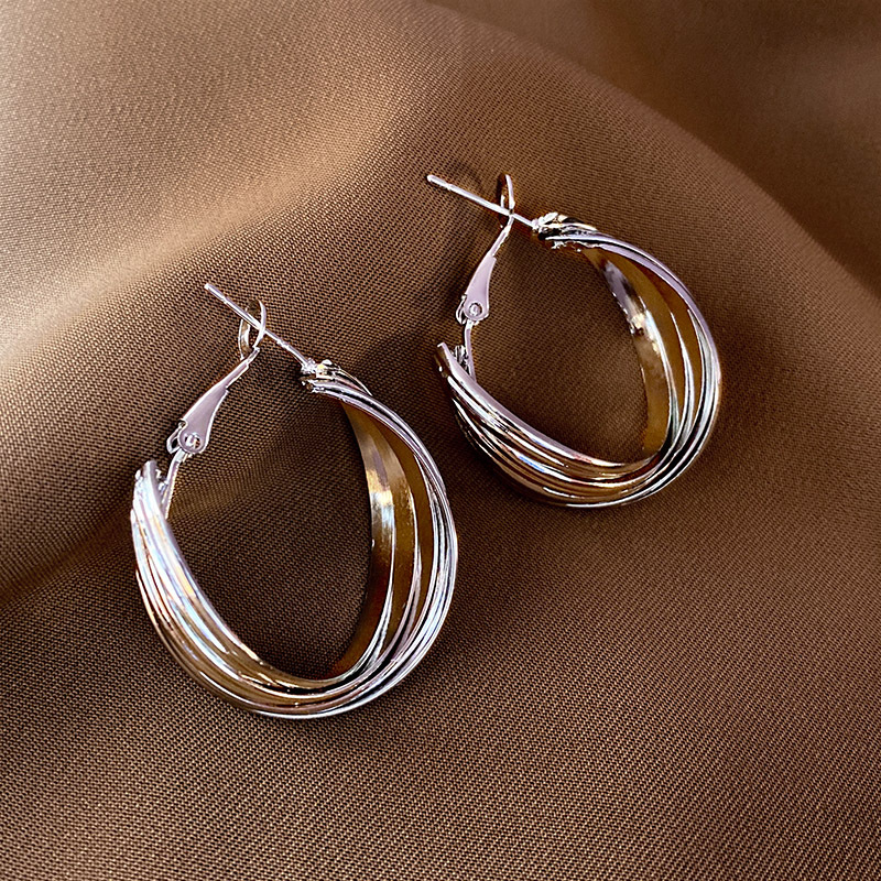 个性简约百搭气质耳钉耳饰S925银针欧美跨境爆款金属感冷淡风耳环