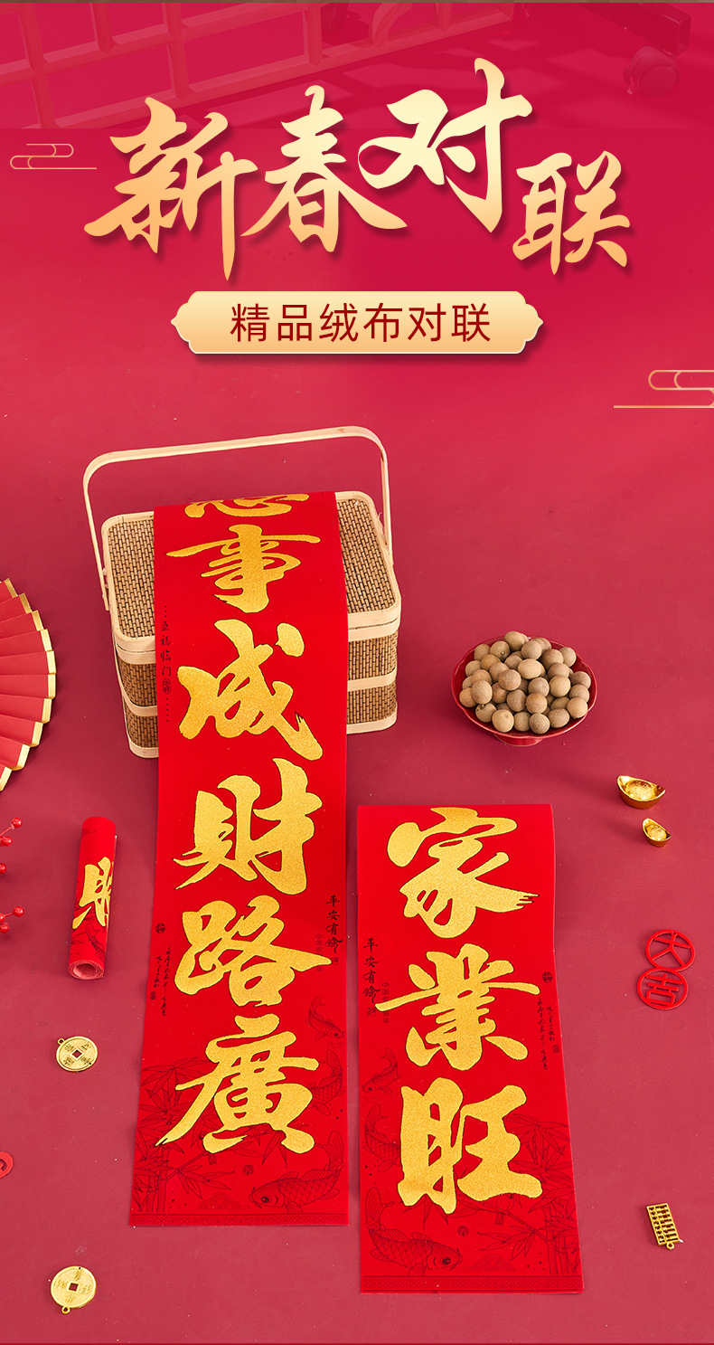 正唐新款绒布对联2026马年加厚春联春节全背胶新年门贴家用门联