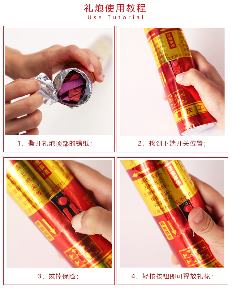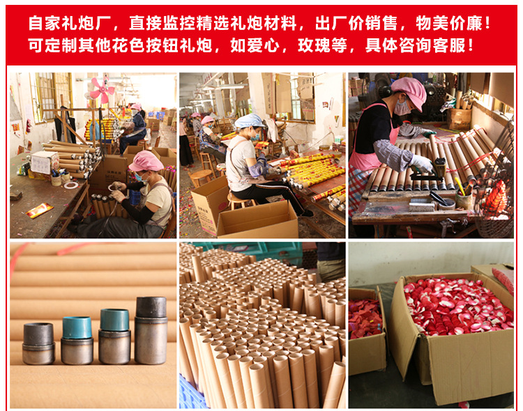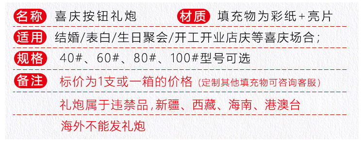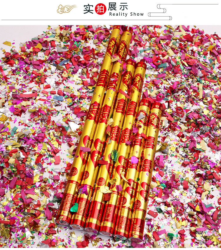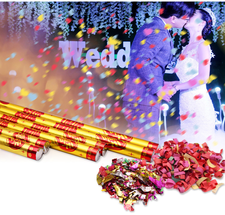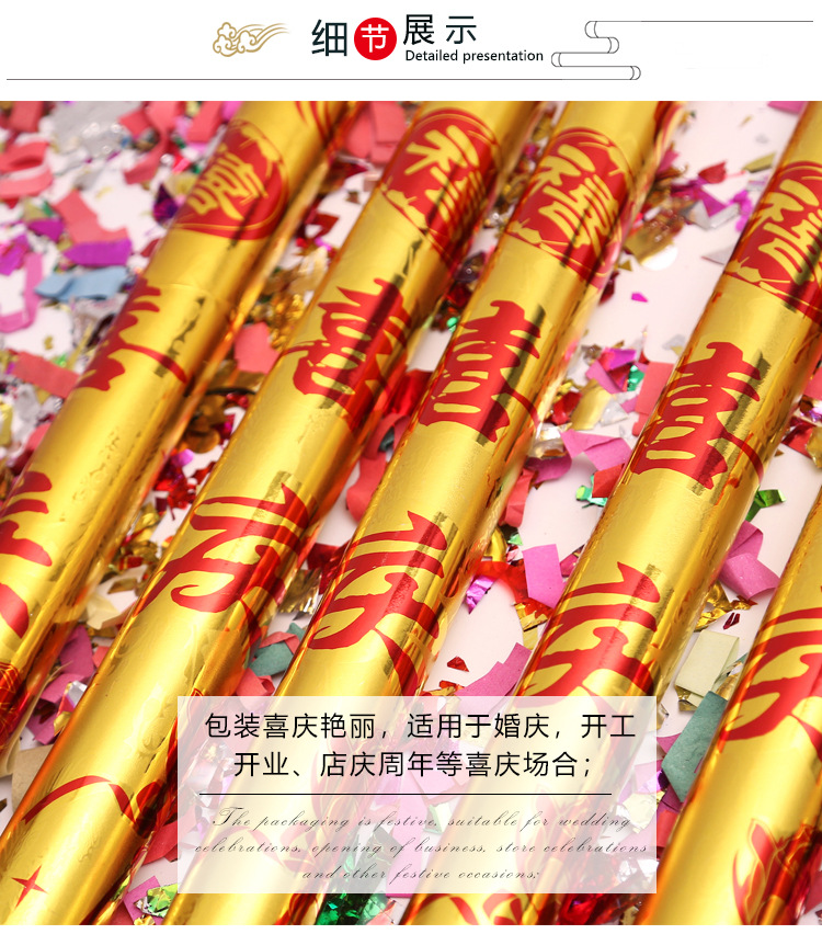 按钮礼炮手持便捷彩带亮片礼花筒结婚开业开工庆典婚礼喷筒礼宾花