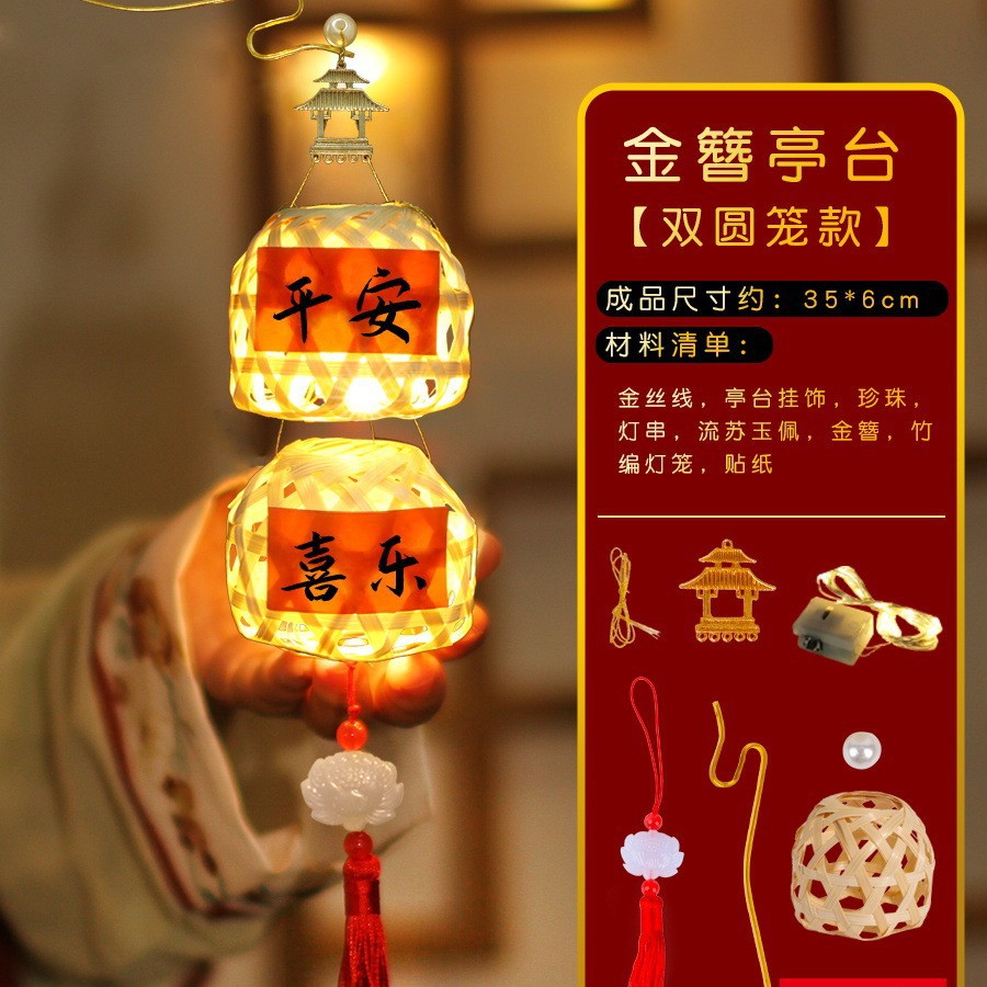 元旦节竹编灯笼儿童手工diy迷你手提发光灯笼材料包古风中式礼物