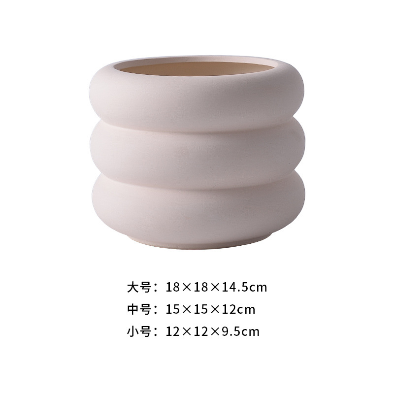 北欧简约花盆陶瓷素烧透气盆有孔圆形多肉植物盆栽陶盆花瓶
