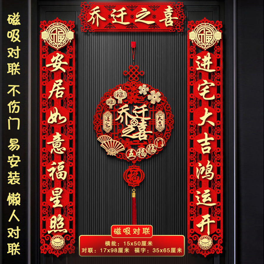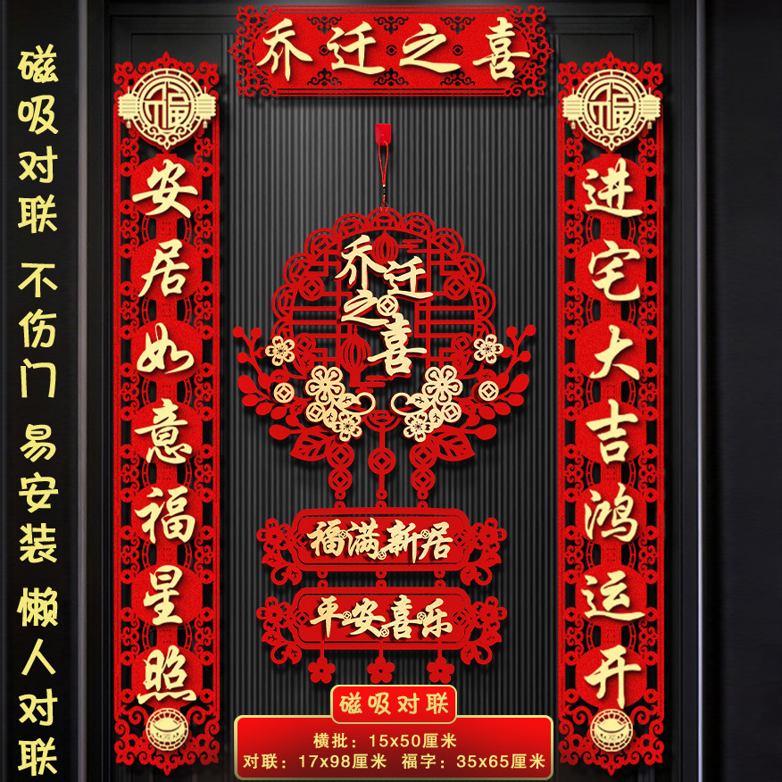 磁吸乔迁之喜对联搬家仪式用品大门新居进宅入宅挂件门贴用品批发