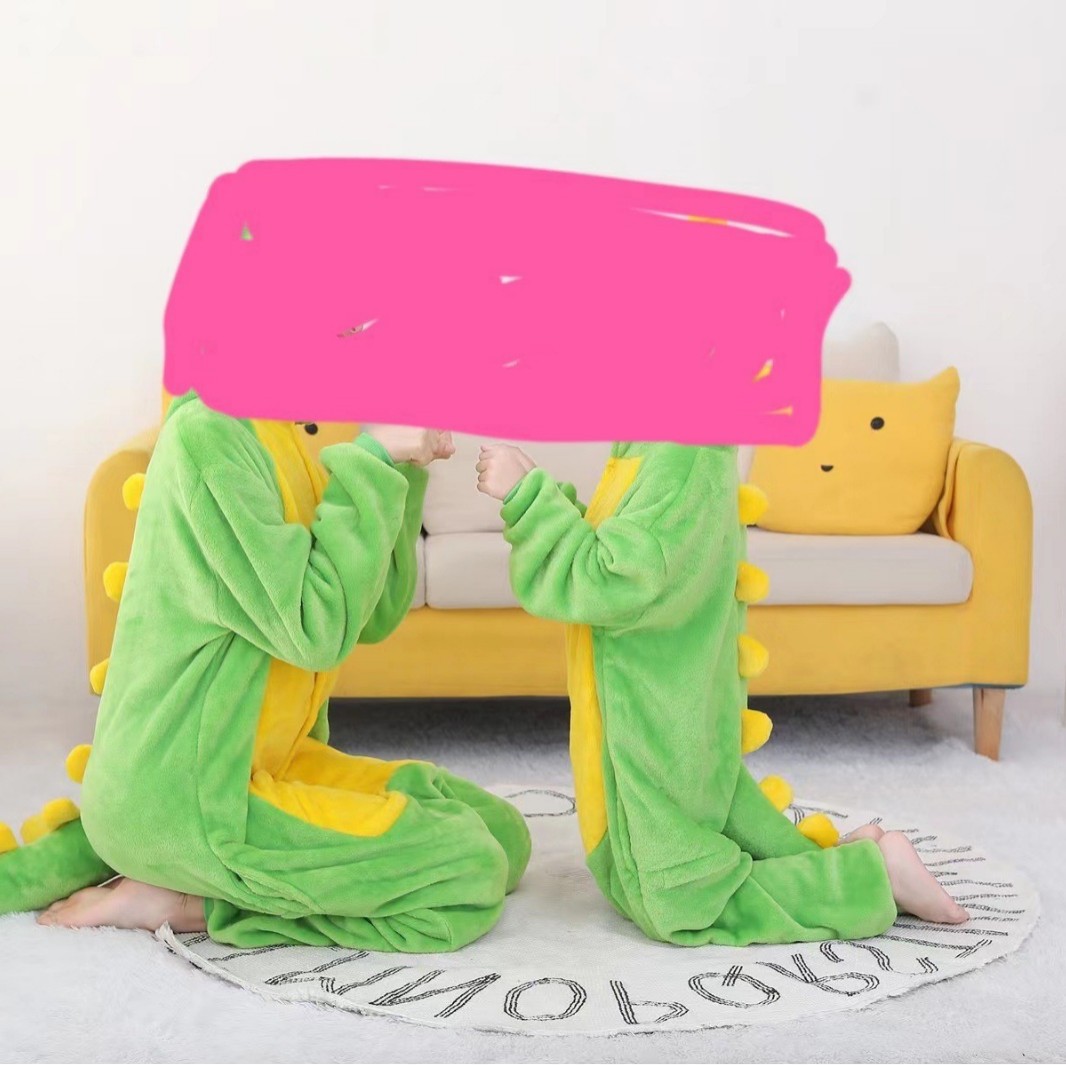 children‘s cute cartoon dinosaur animal one-piece autumn and winter flannel couple home wear pajamas toilet version outerwear
