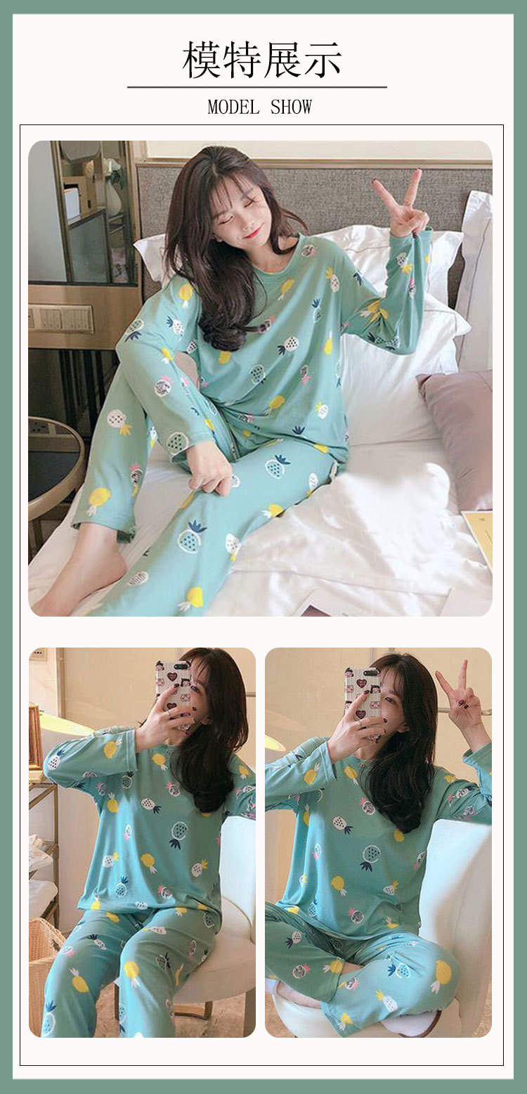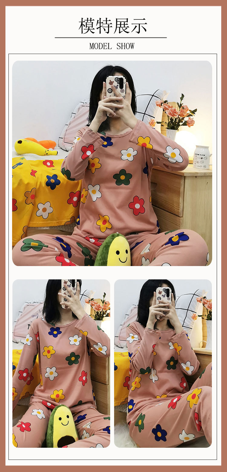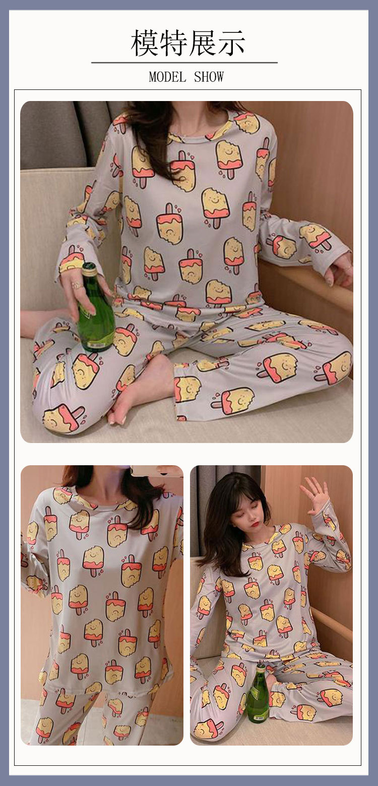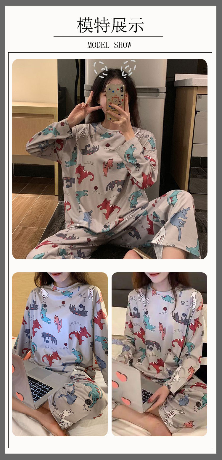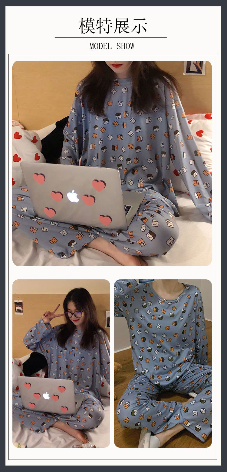 可外穿秋季睡衣女圆领日系长袖长裤时尚透气网红款家居服两件套装