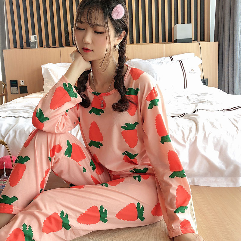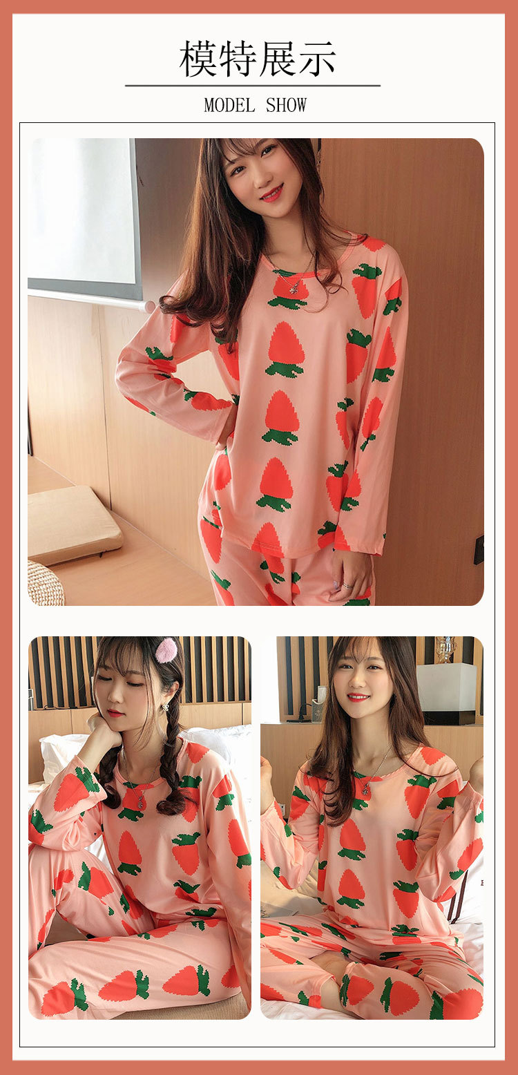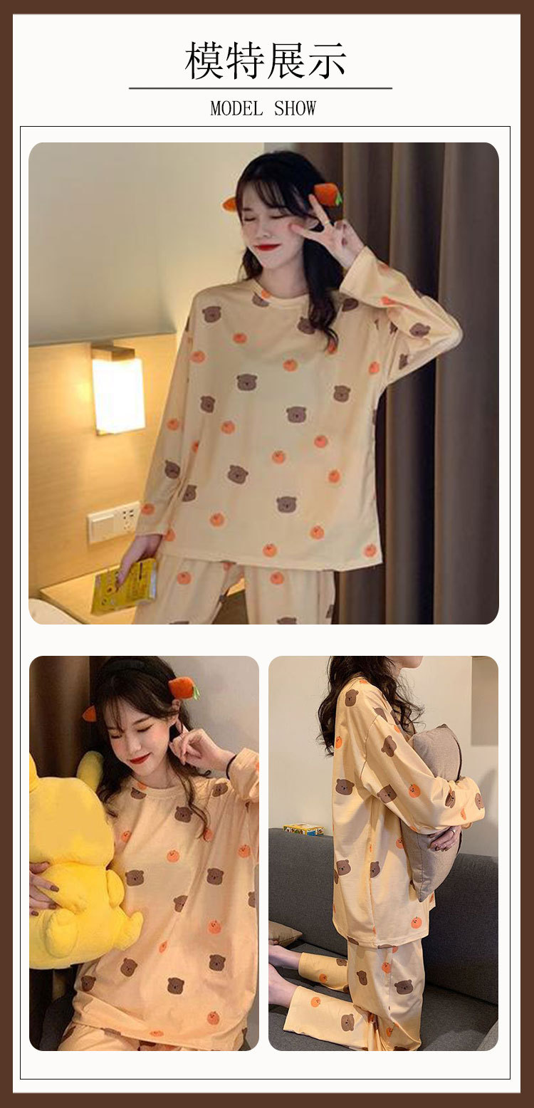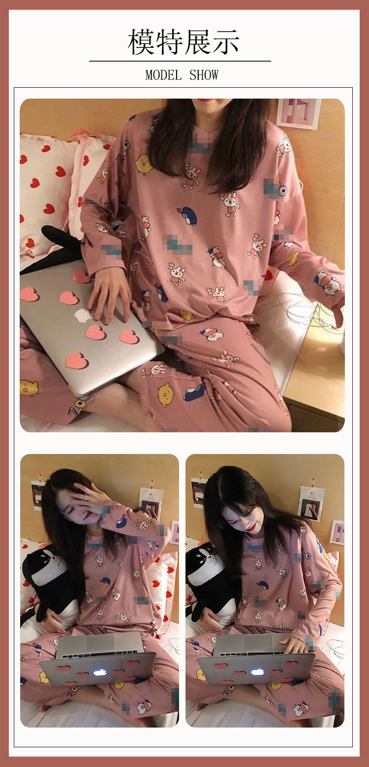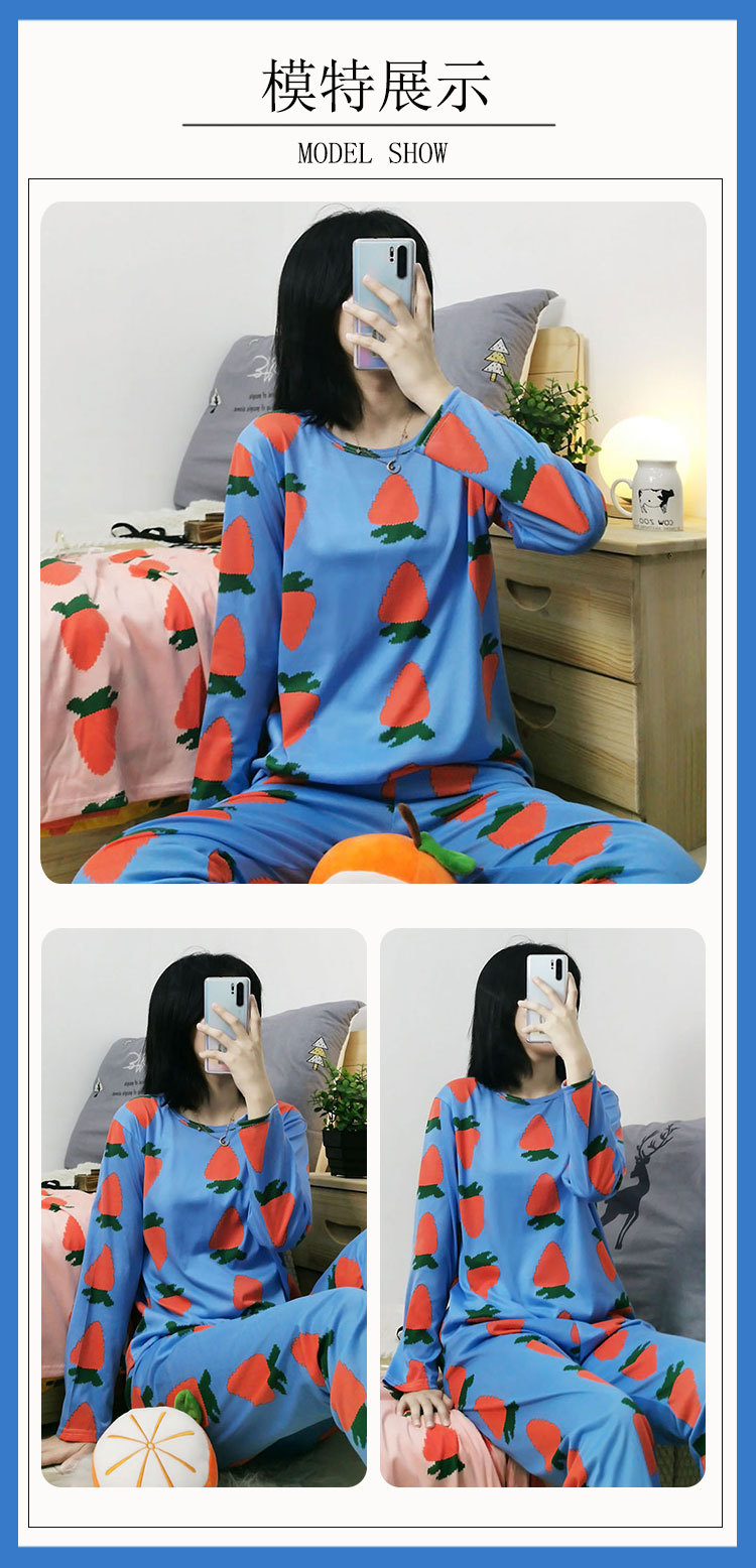 可外穿秋季睡衣女圆领日系长袖长裤时尚透气网红款家居服两件套装