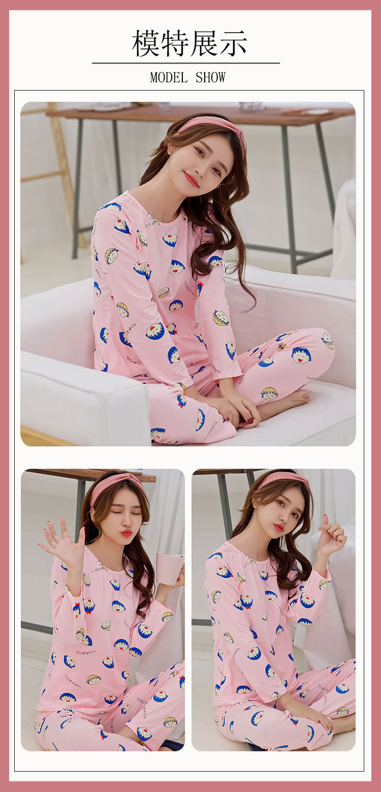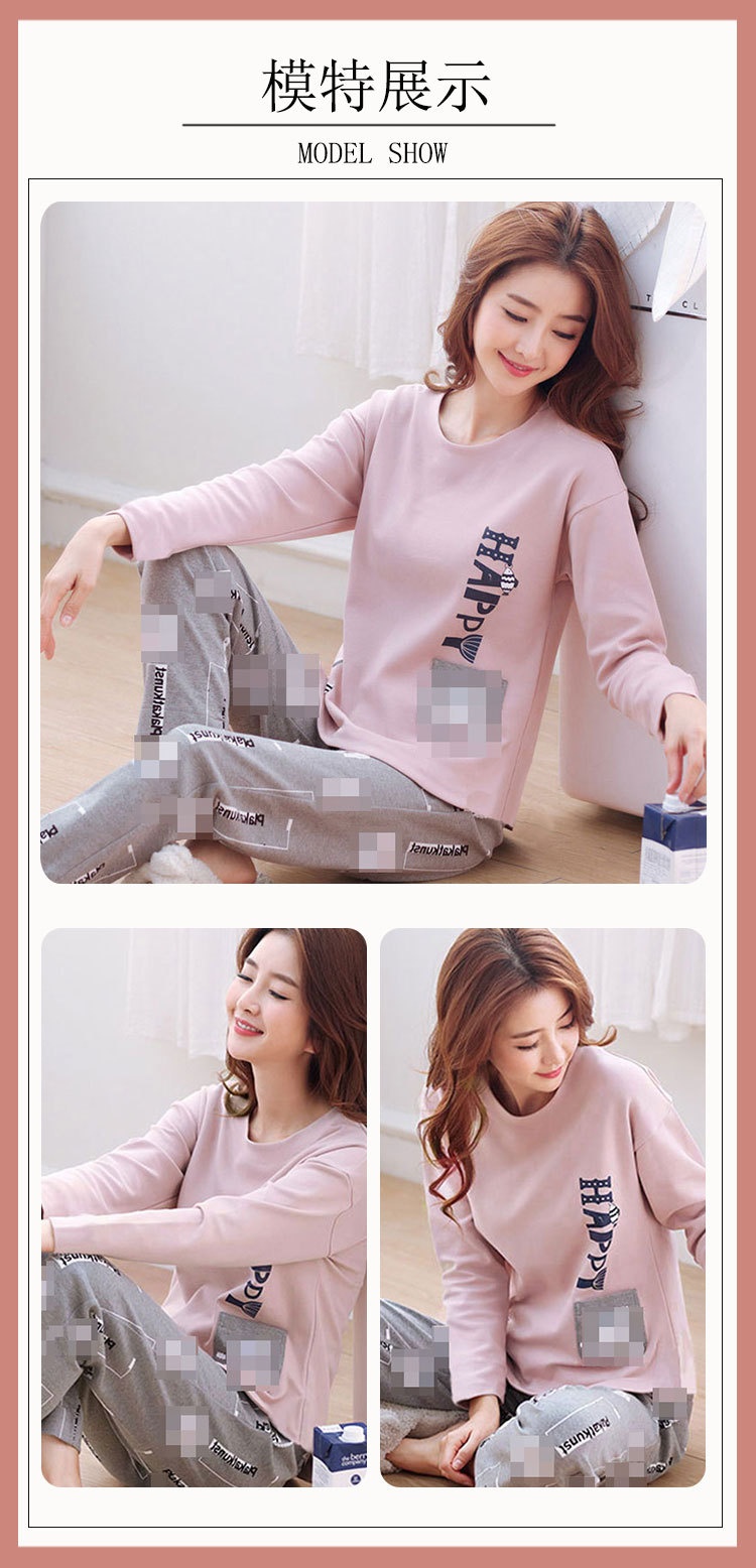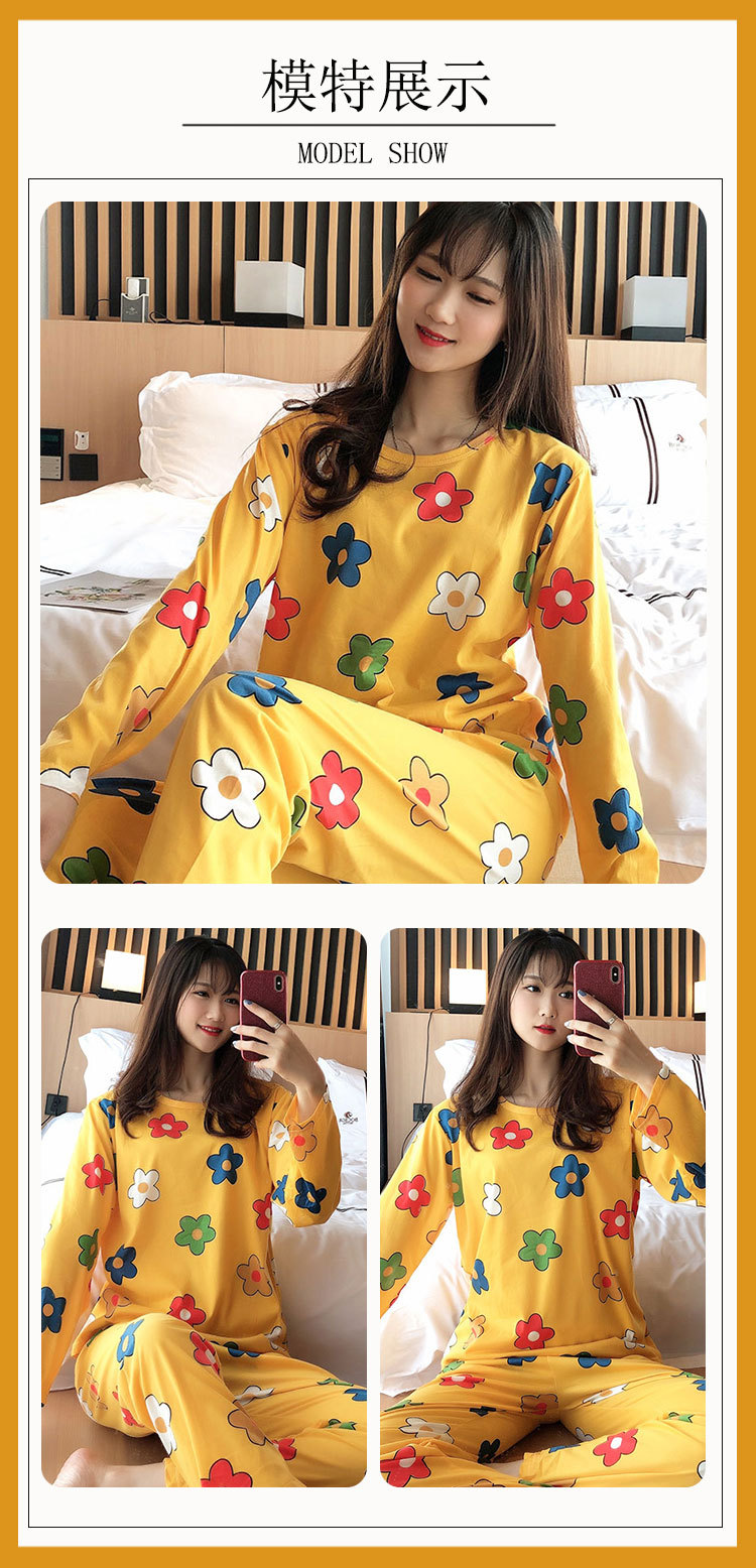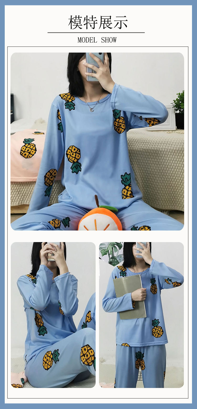 可外穿秋季睡衣女圆领日系长袖长裤时尚透气网红款家居服两件套装