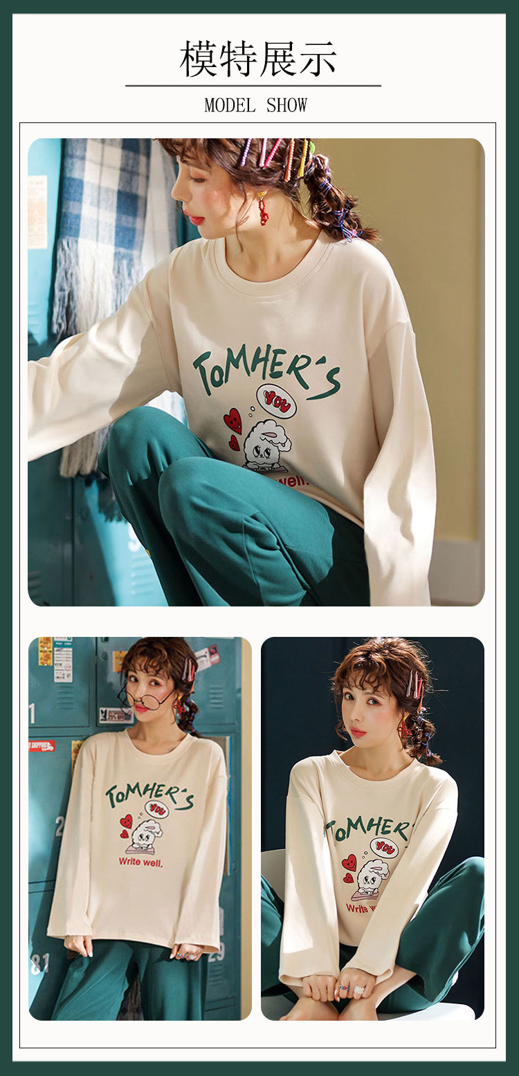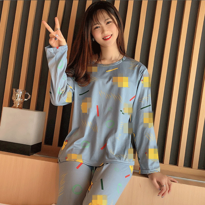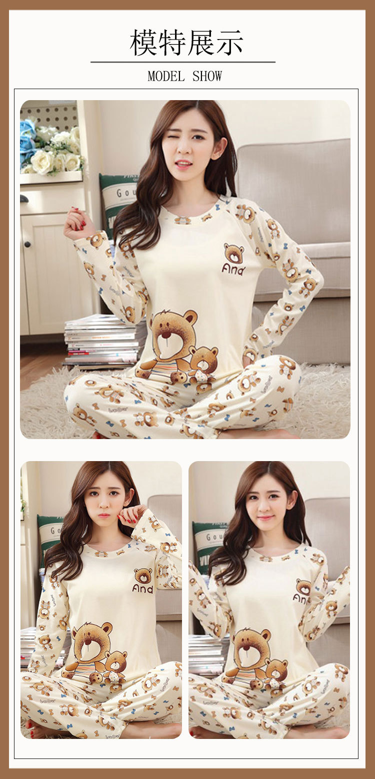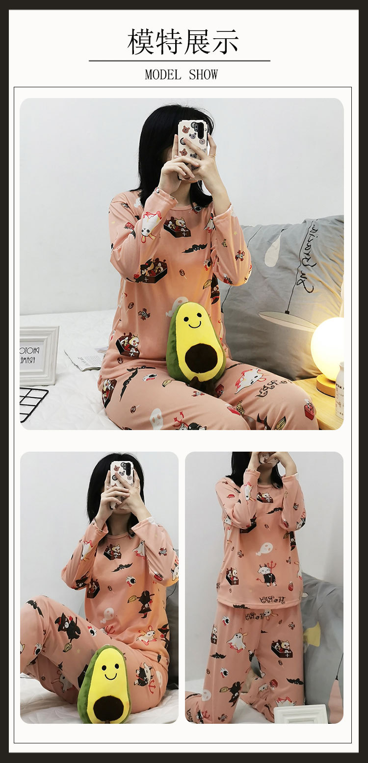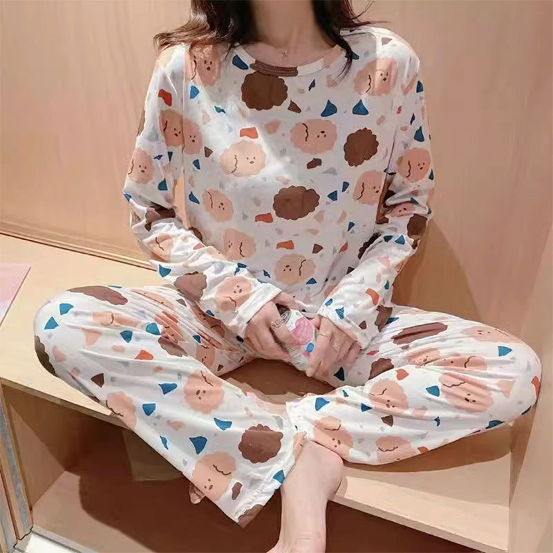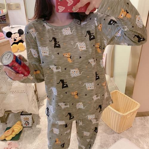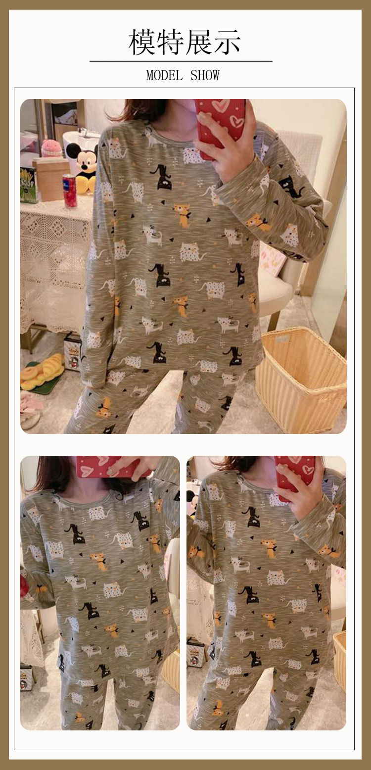 可外穿秋季睡衣女圆领日系长袖长裤时尚透气网红款家居服两件套装