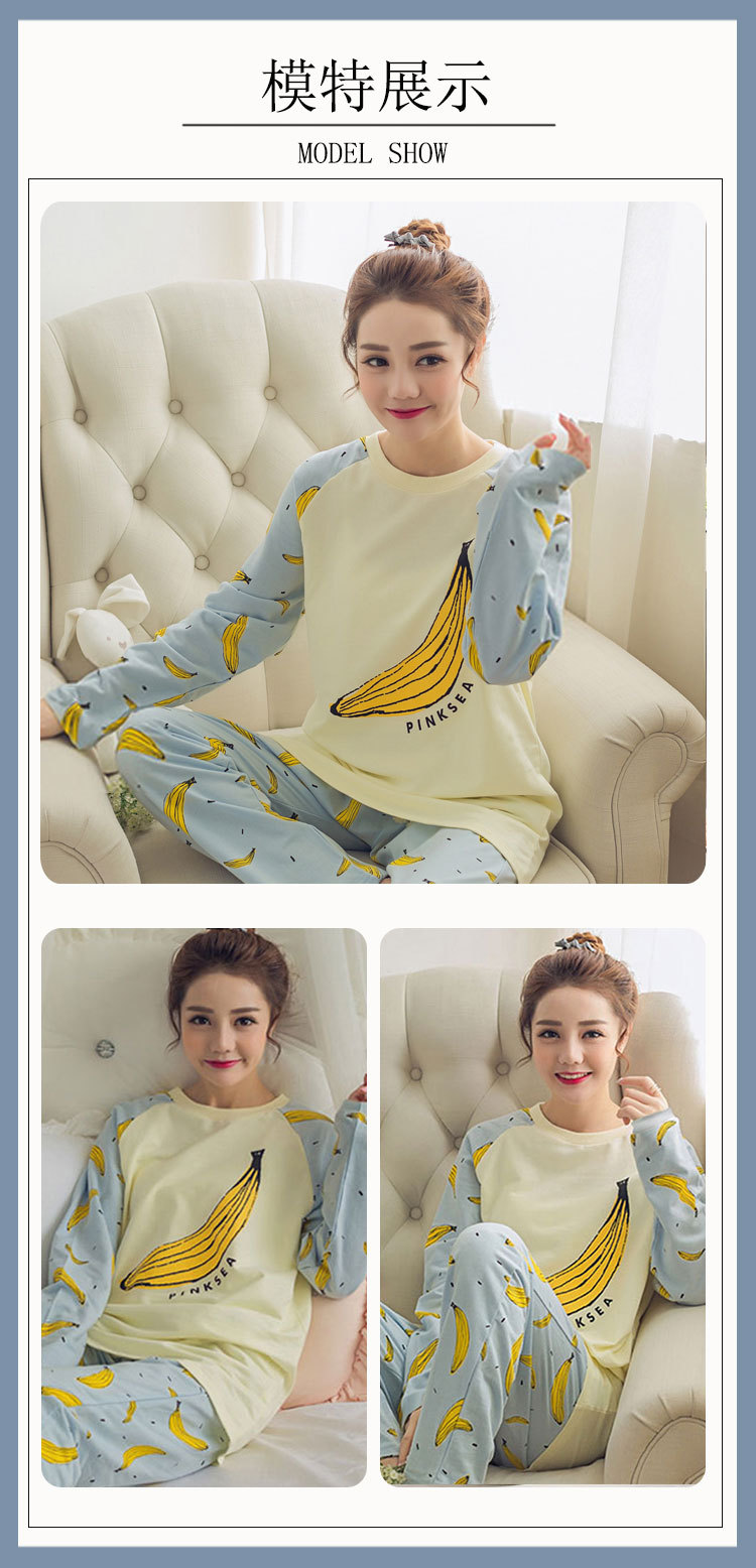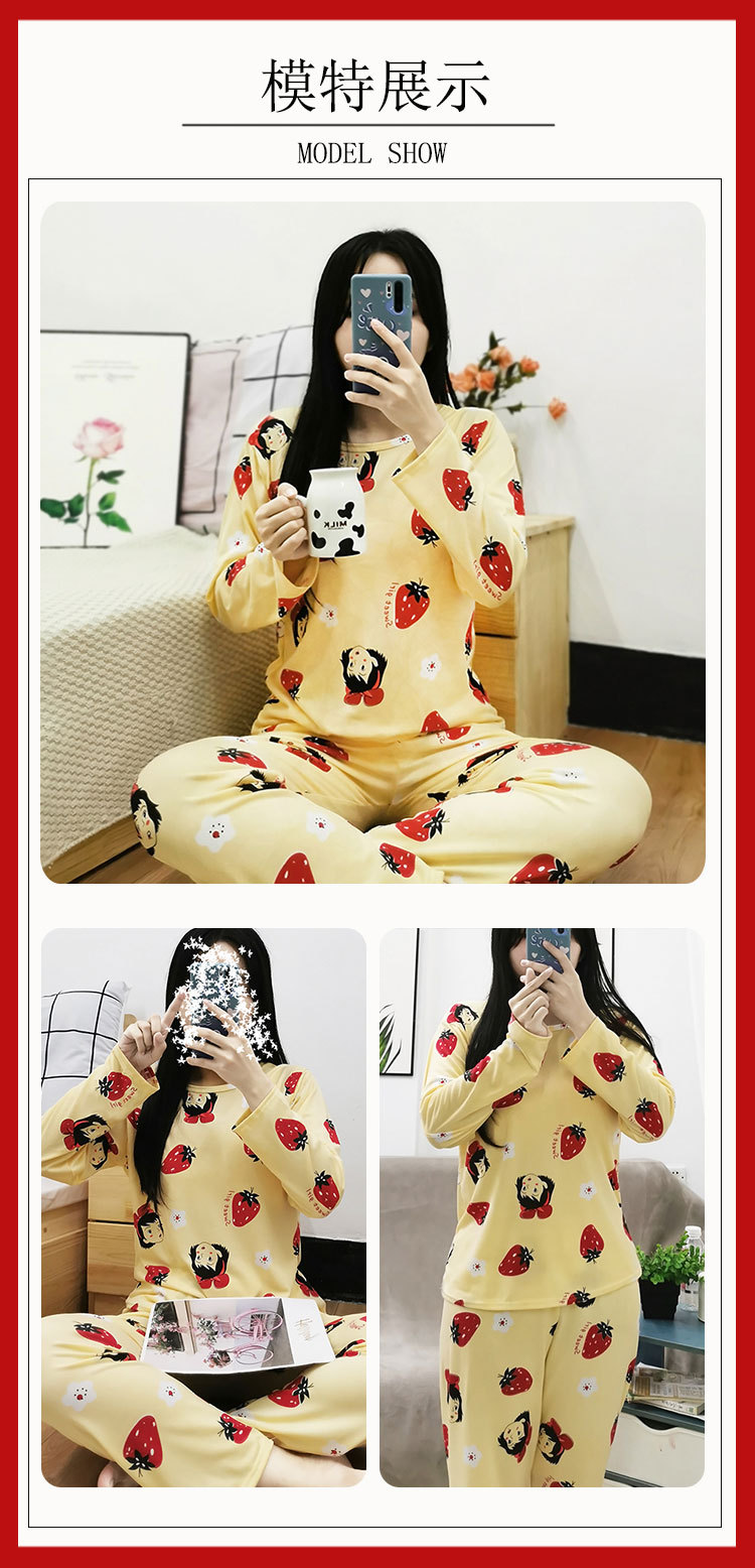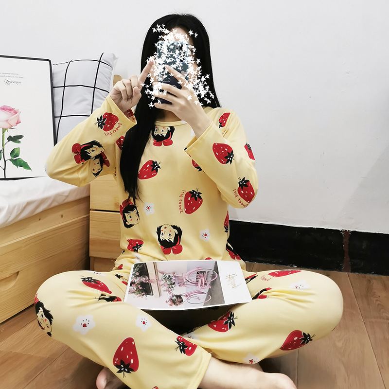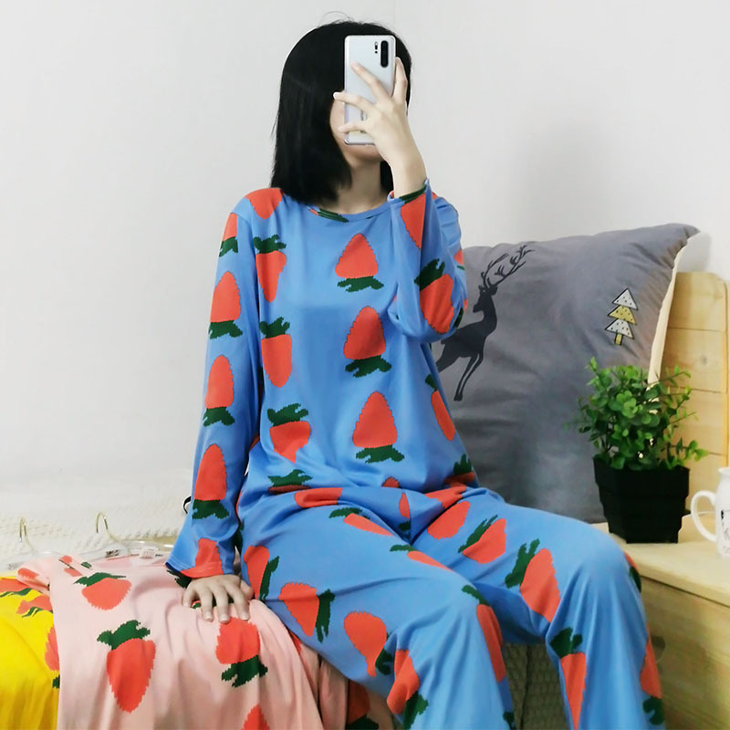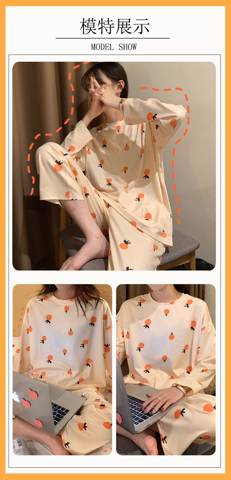 可外穿秋季睡衣女圆领日系长袖长裤时尚透气网红款家居服两件套装