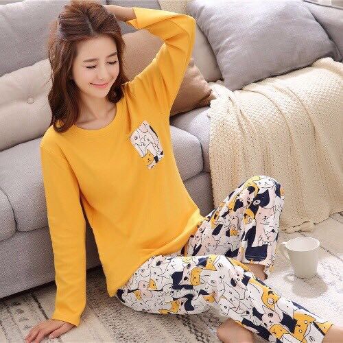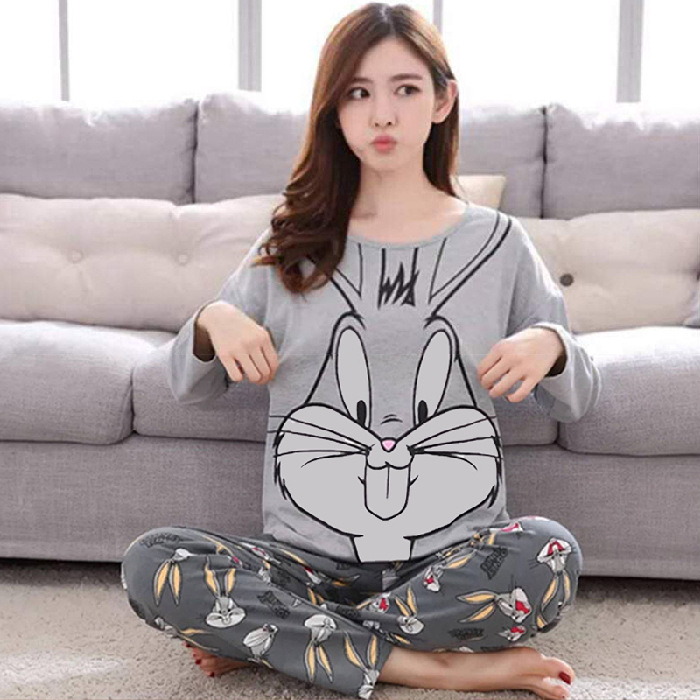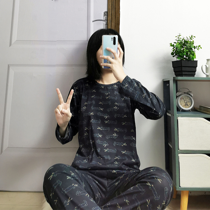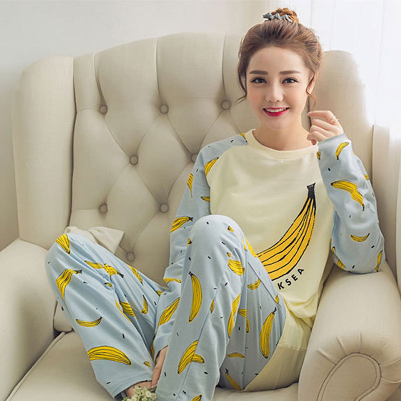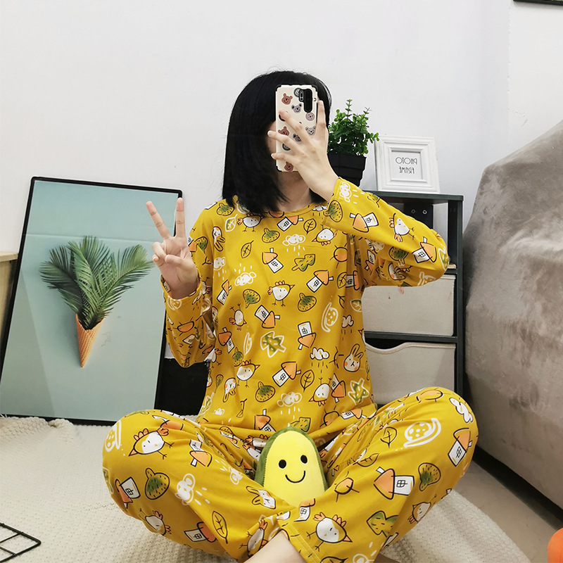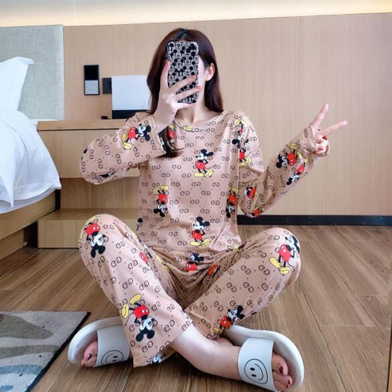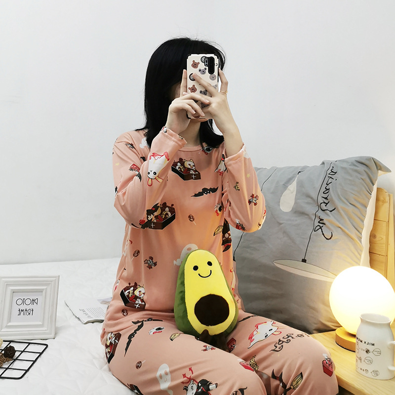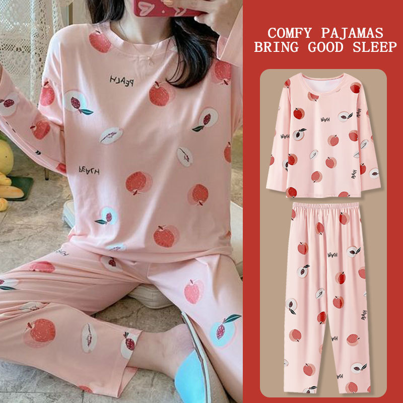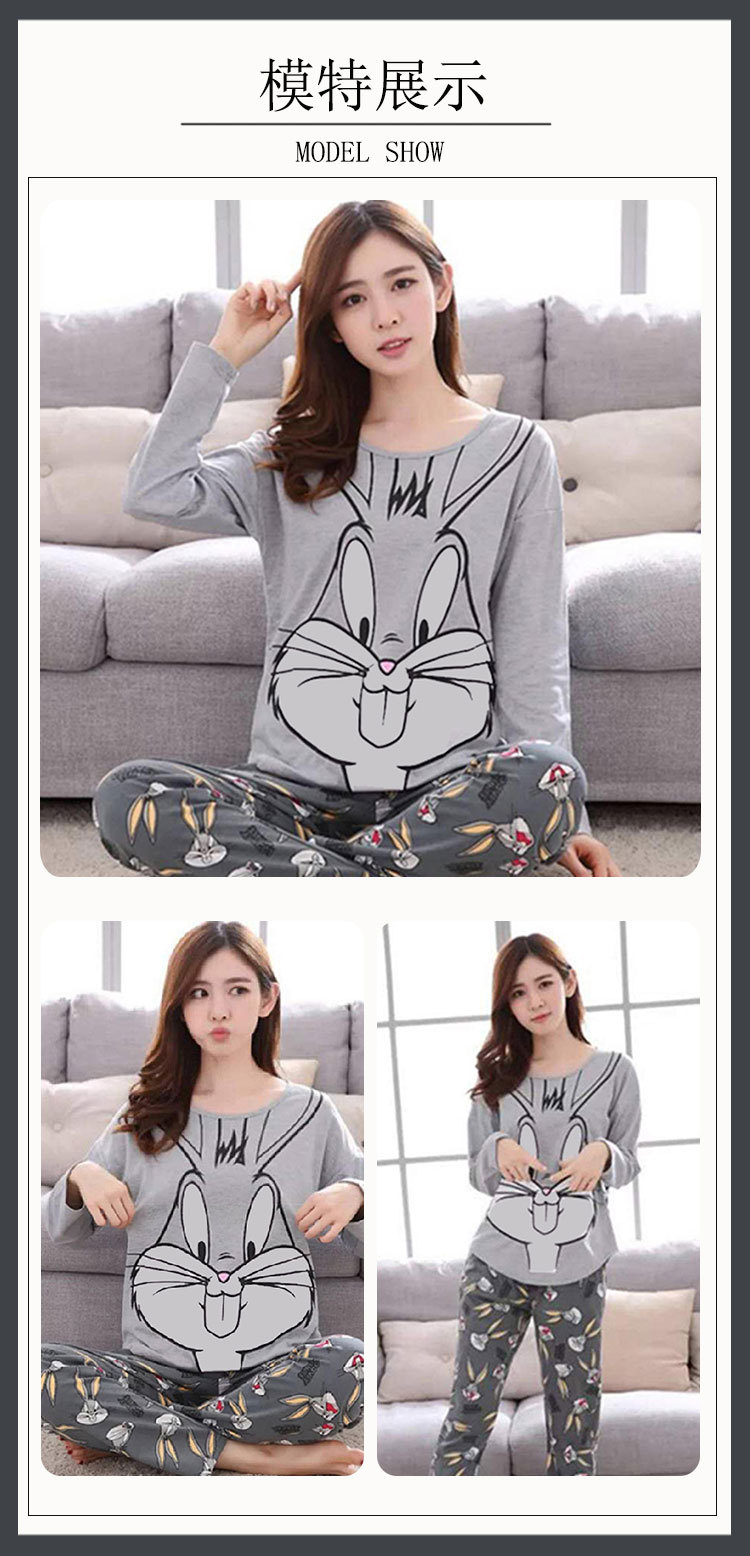 可外穿秋季睡衣女圆领日系长袖长裤时尚透气网红款家居服两件套装