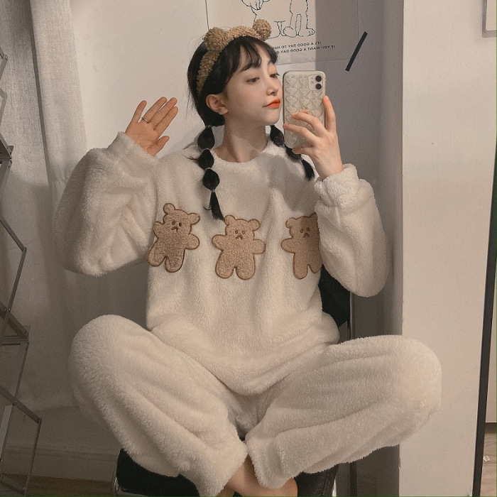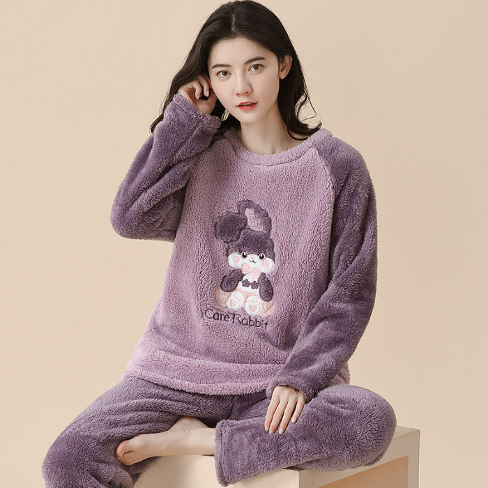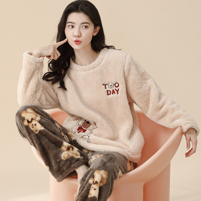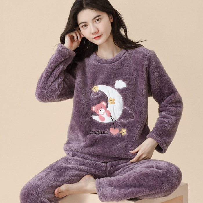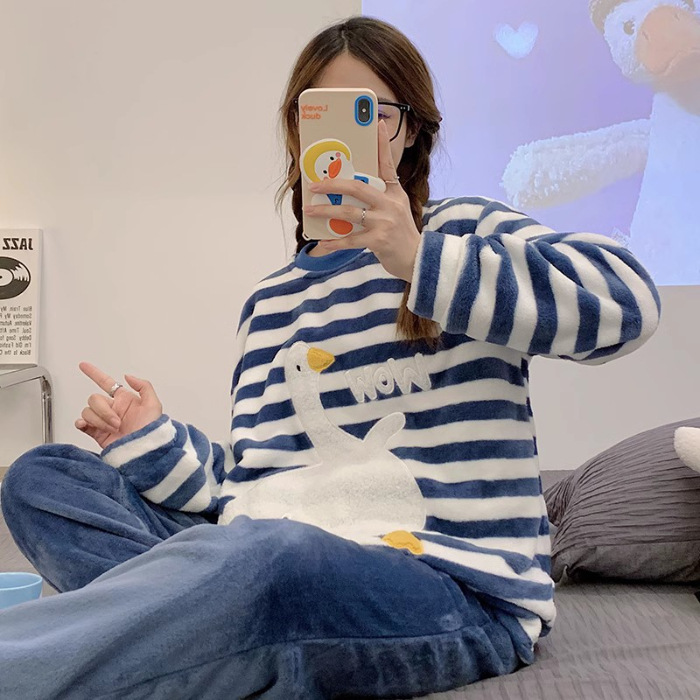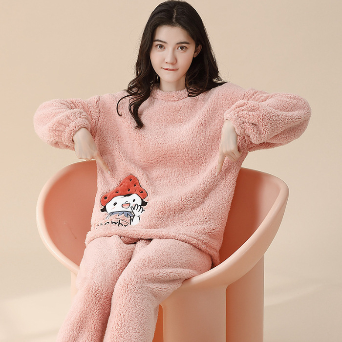珊瑚绒睡衣女冬季可爱草莓加绒加厚保暖法兰绒2023新款家居服套装