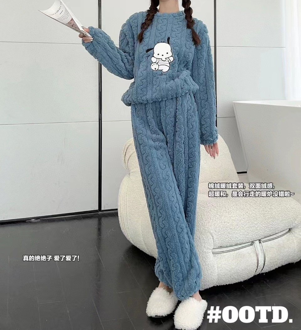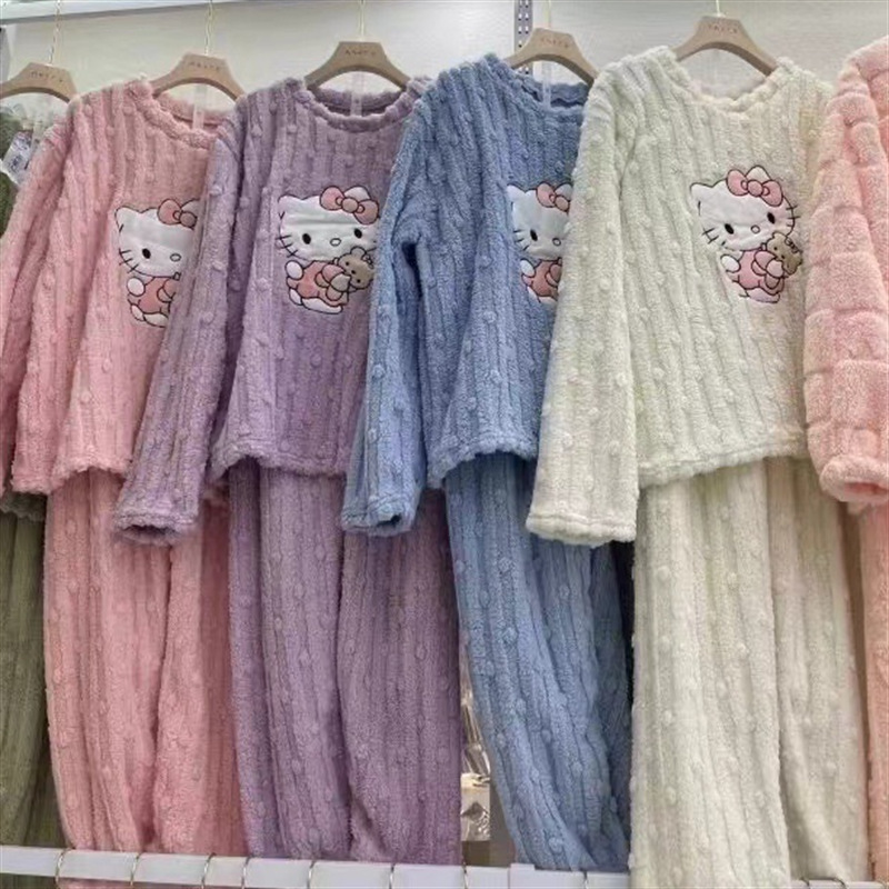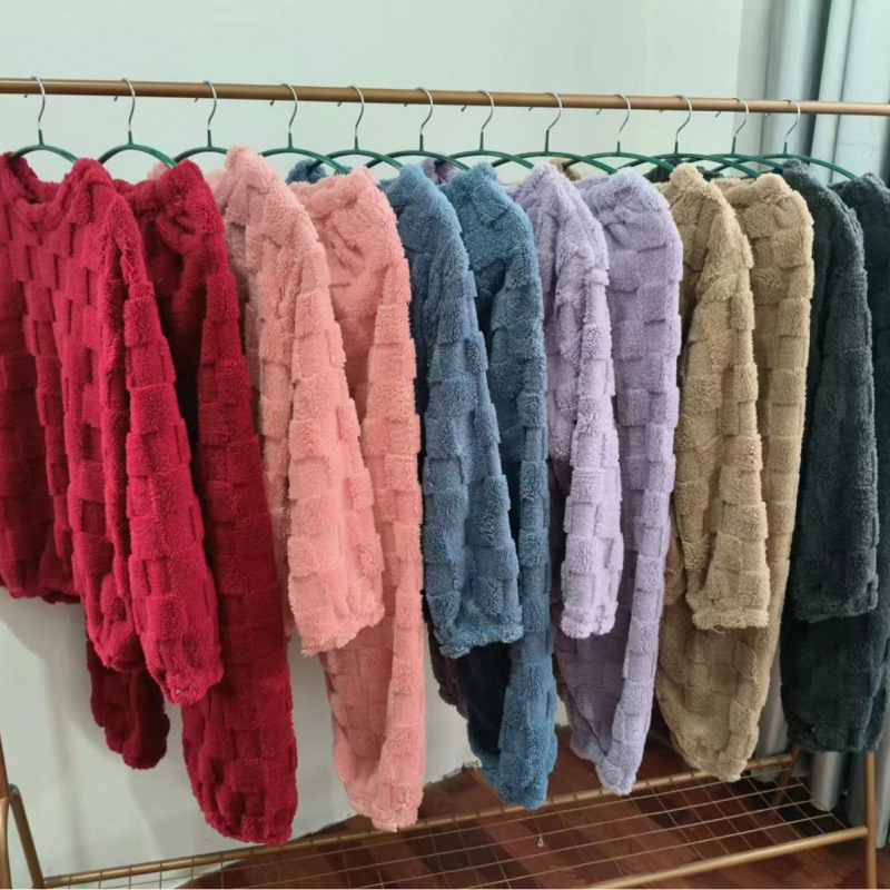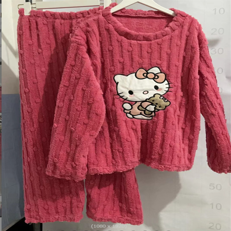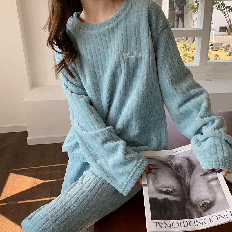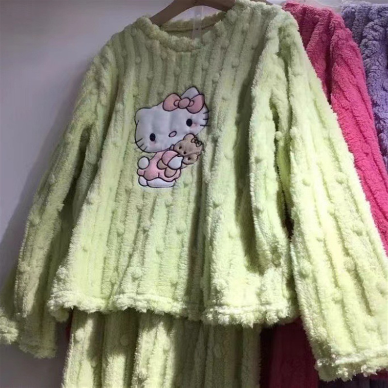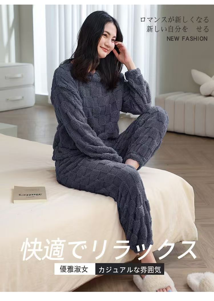 珊瑚绒睡衣女秋冬季时尚开衫套装加绒加厚家居服可外穿法兰绒睡袍