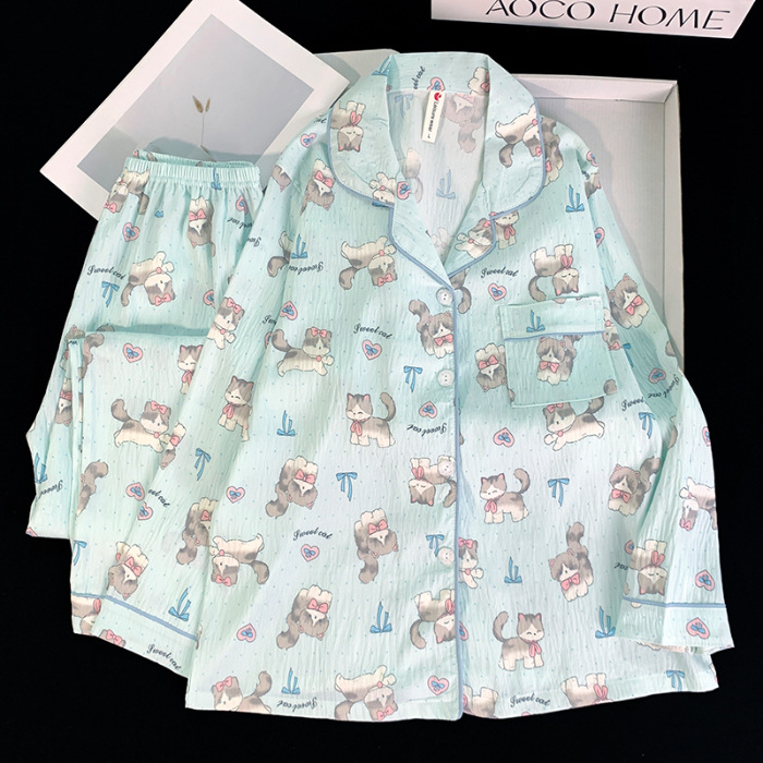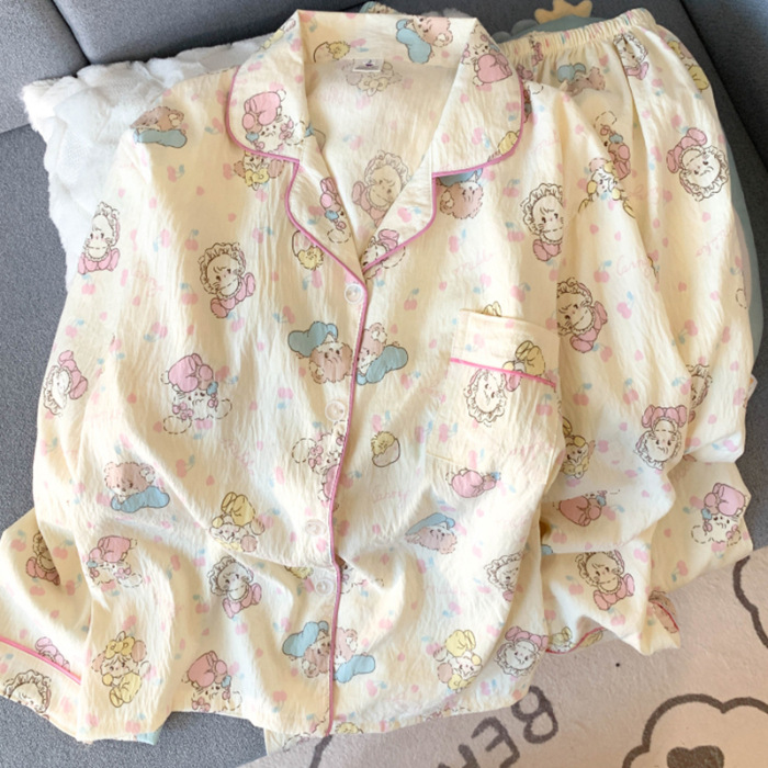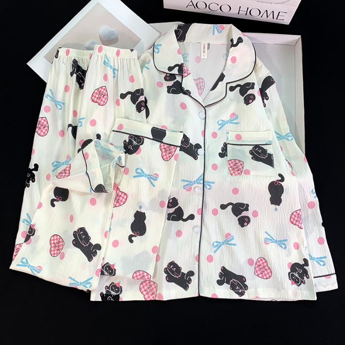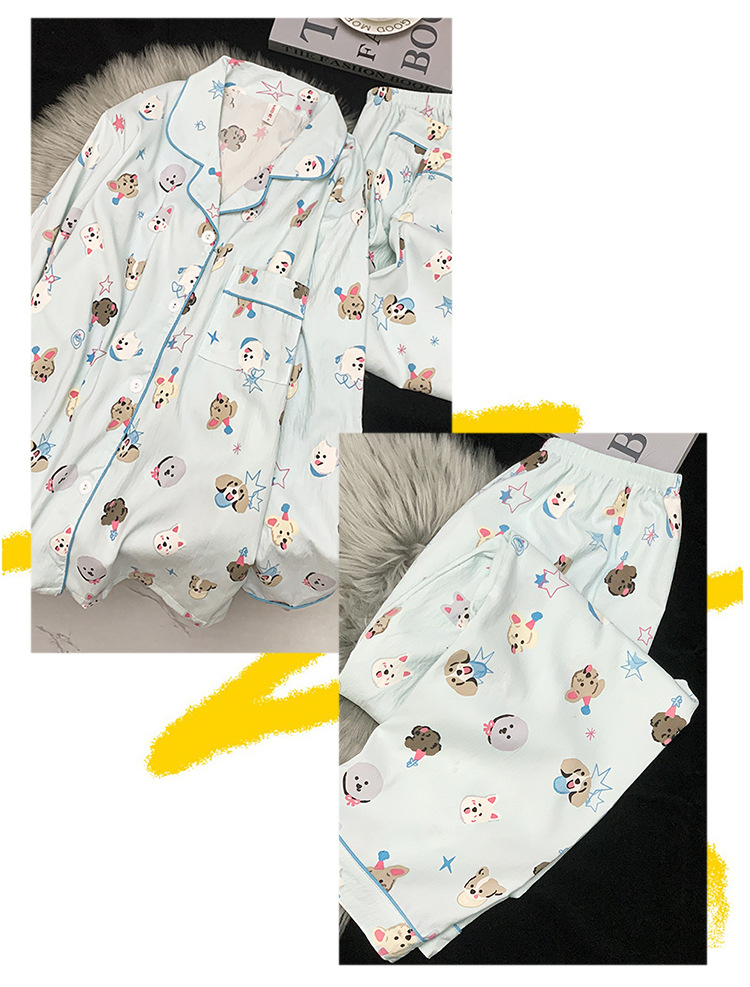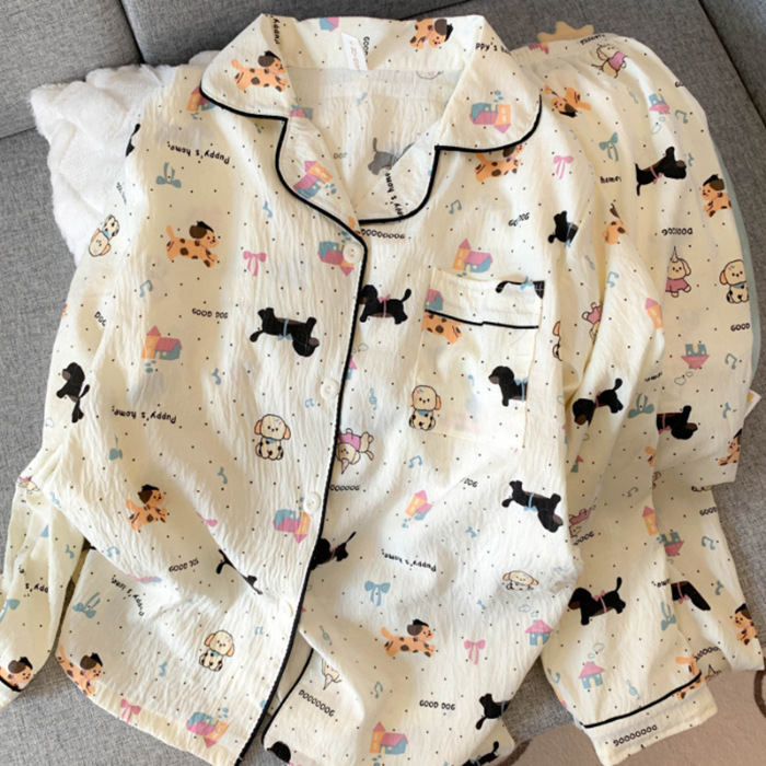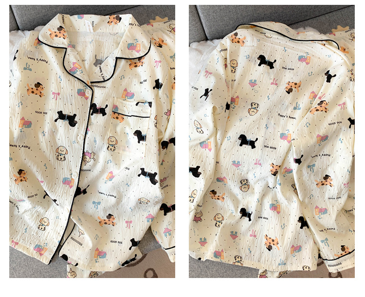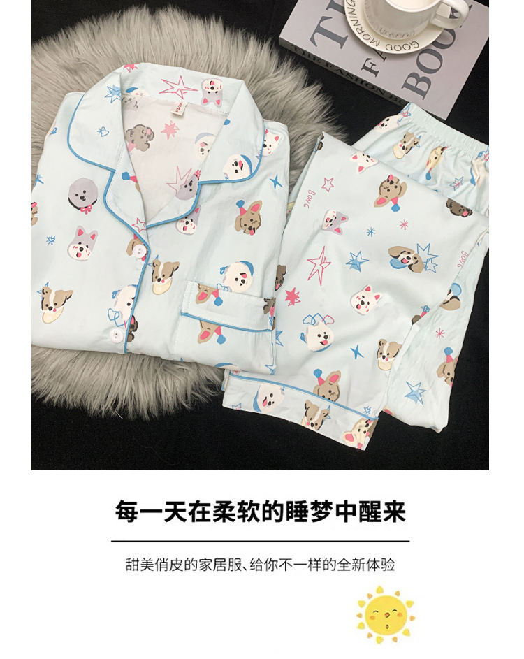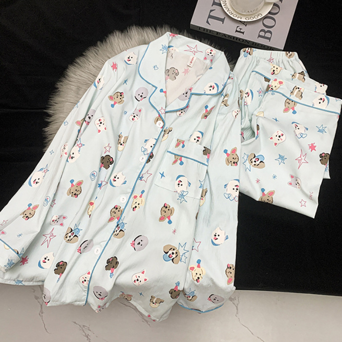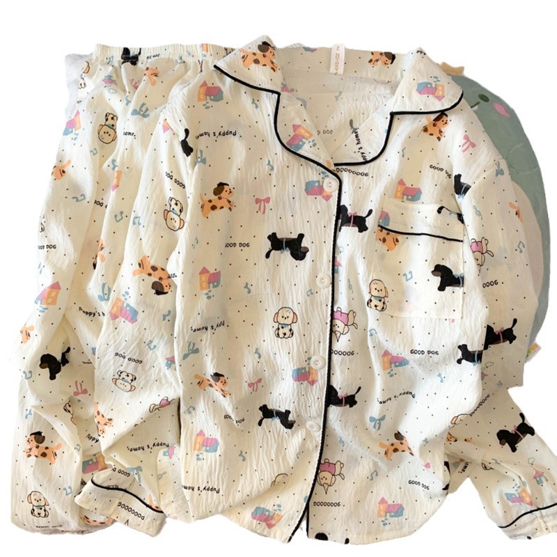 跨境睡衣女春秋季新款可爱卡通斑点狗云朵棉长袖家居服套装可外穿