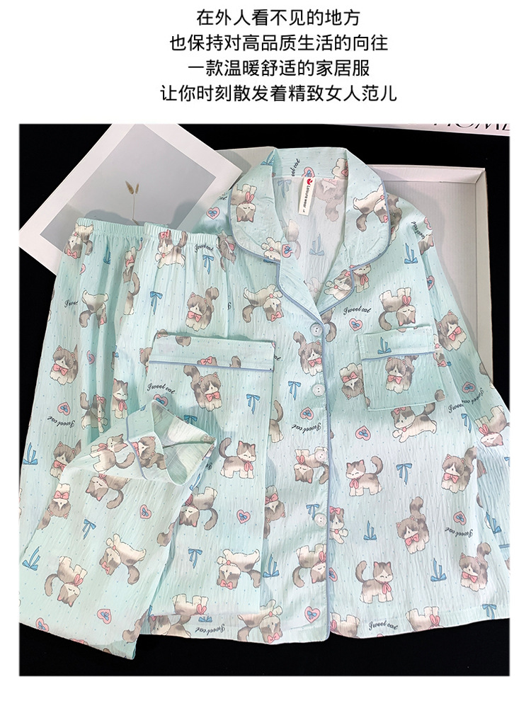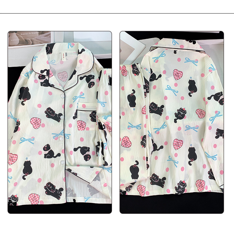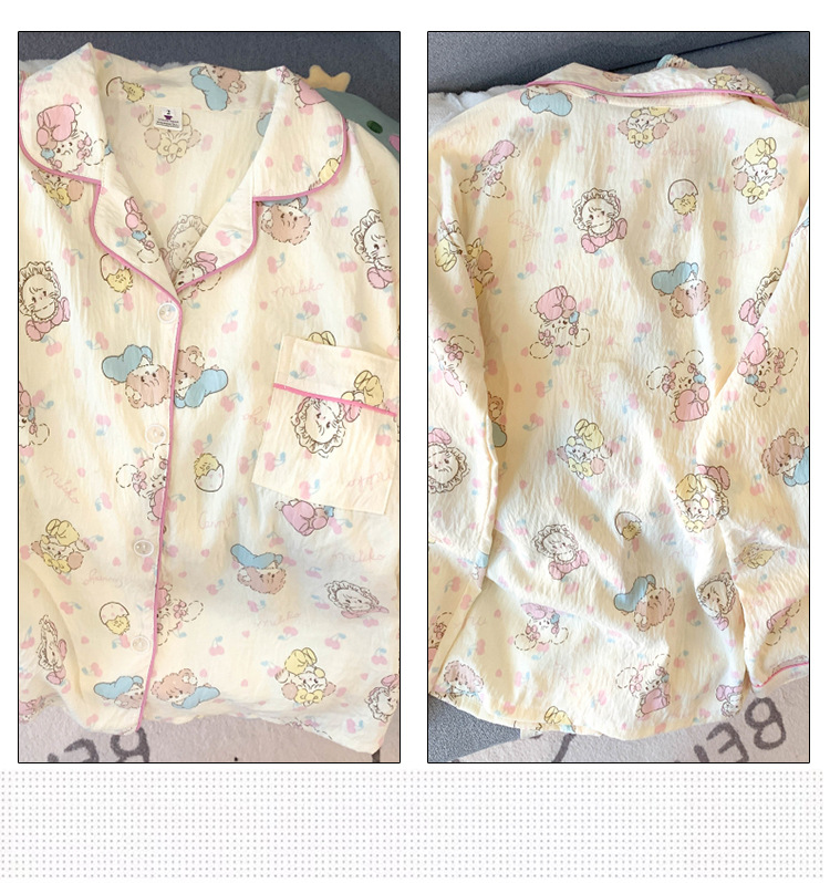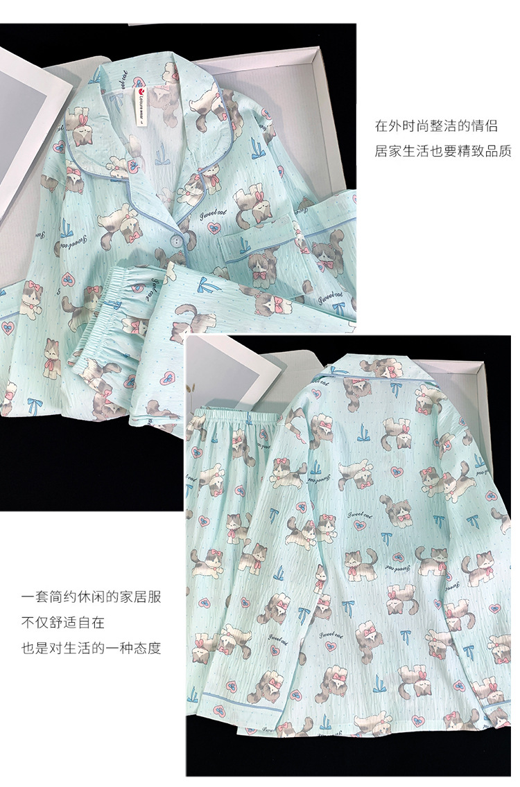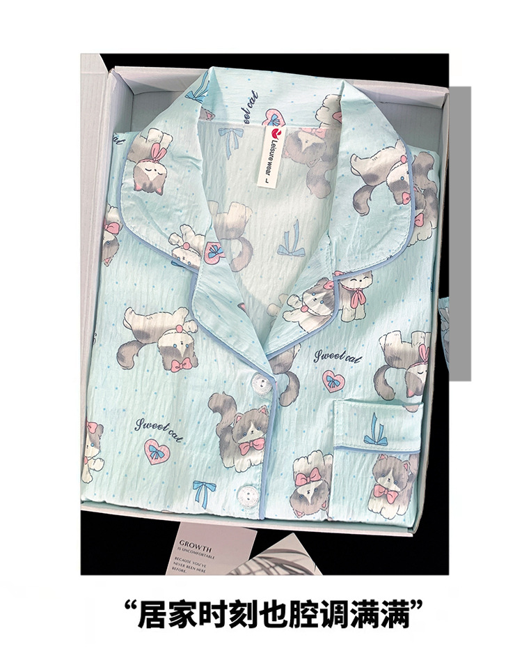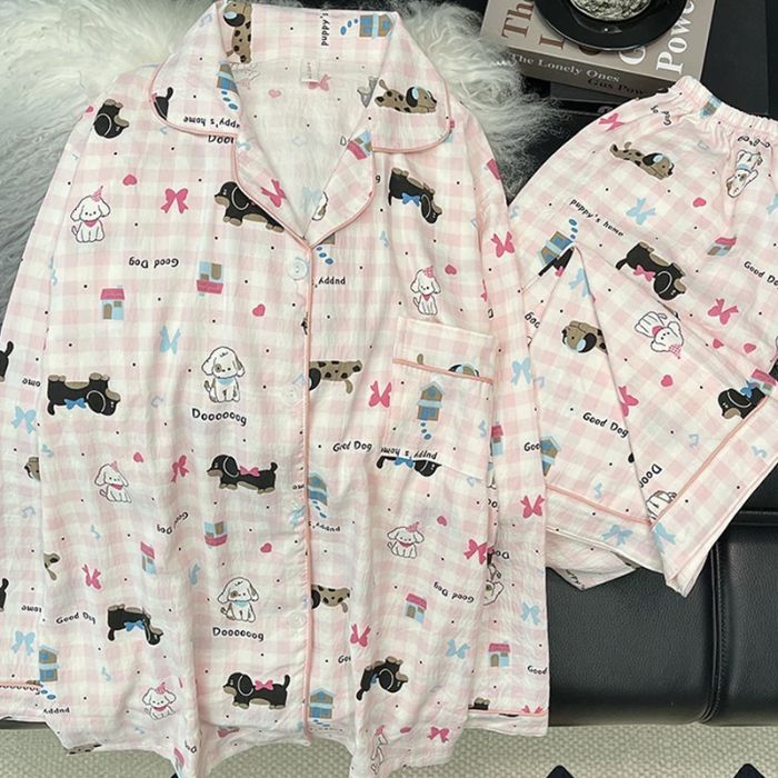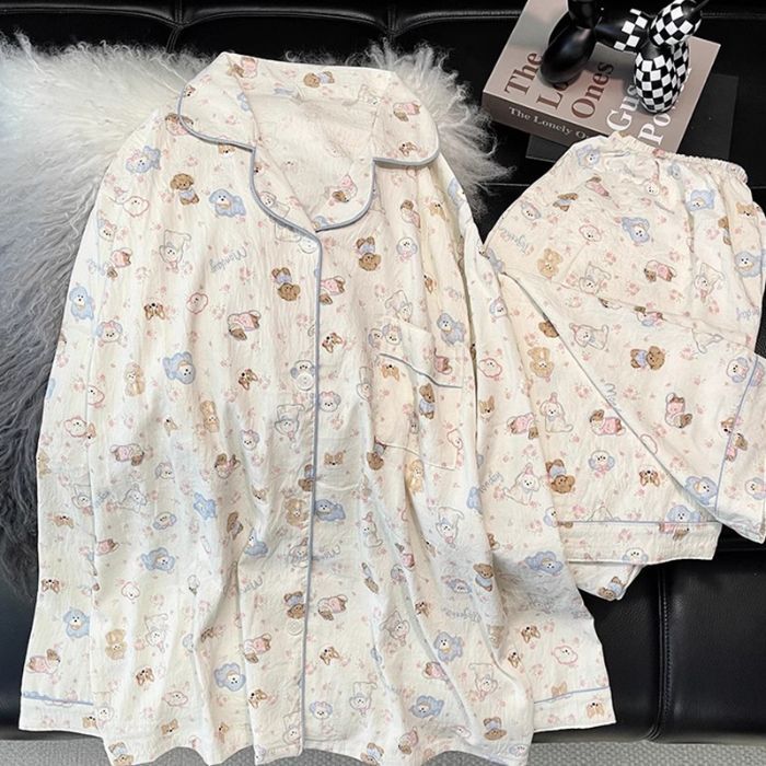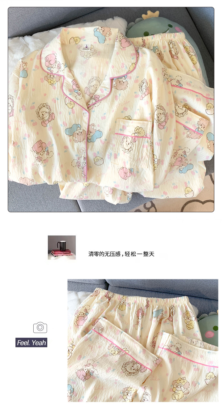 跨境睡衣女春秋季新款可爱卡通斑点狗云朵棉长袖家居服套装可外穿