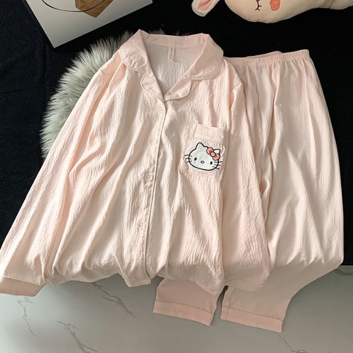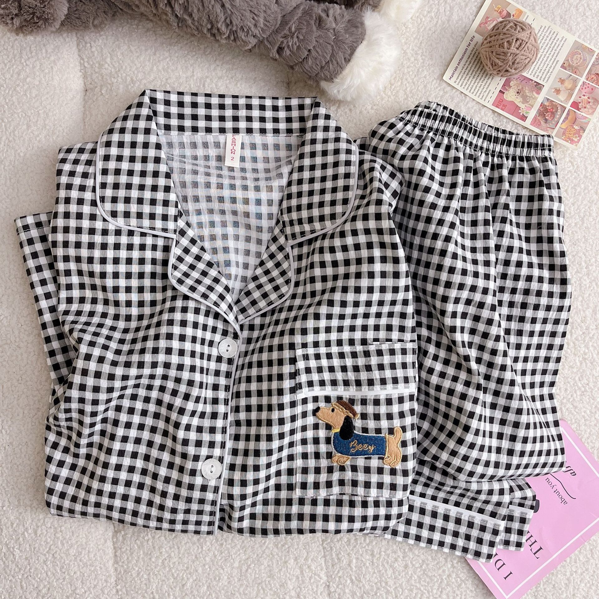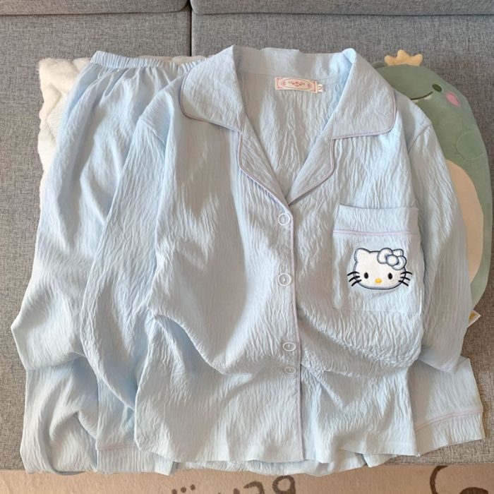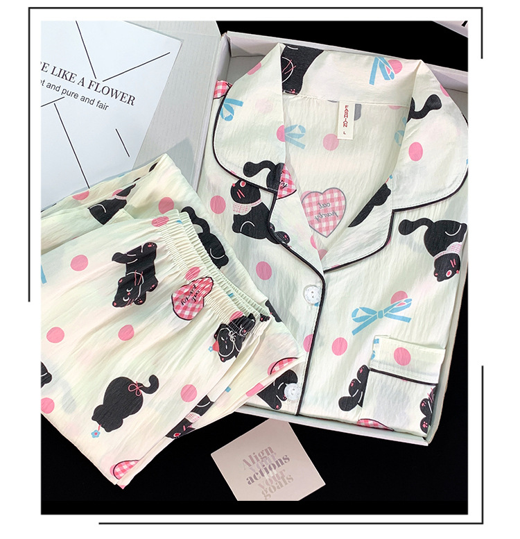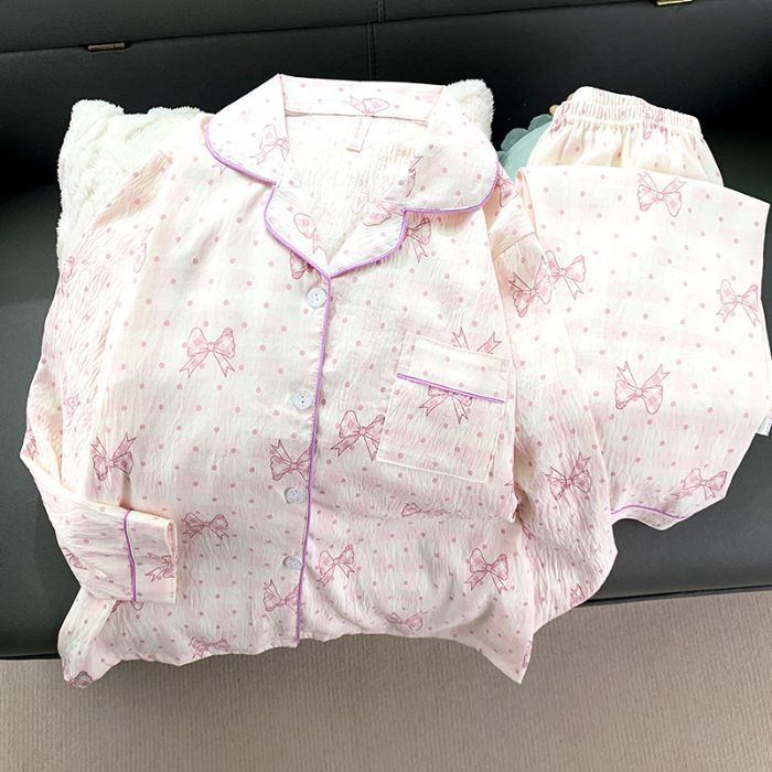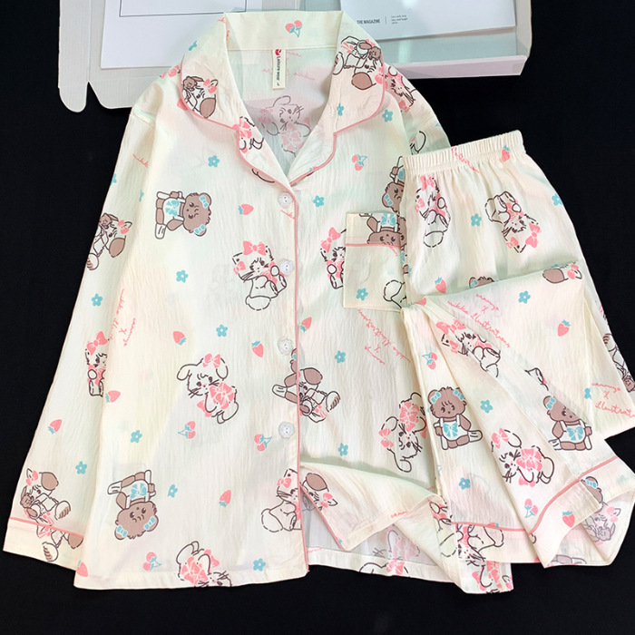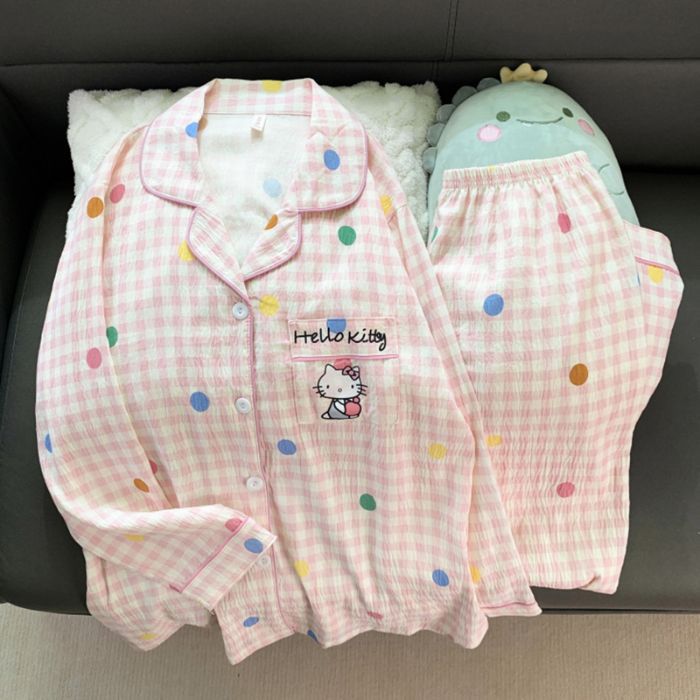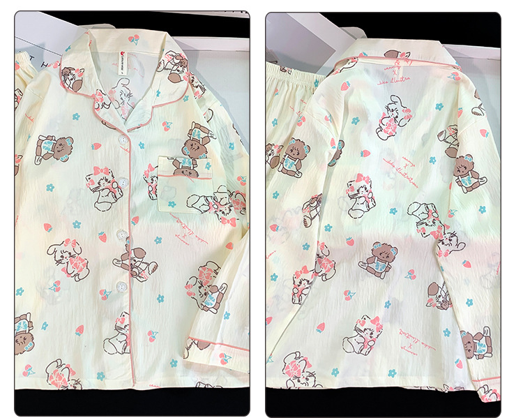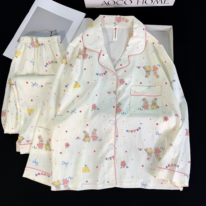 跨境睡衣女春秋季新款可爱卡通斑点狗云朵棉长袖家居服套装可外穿