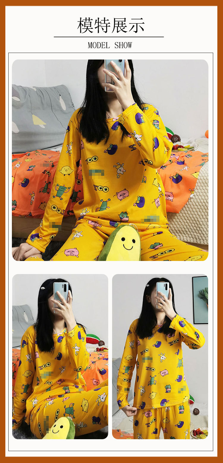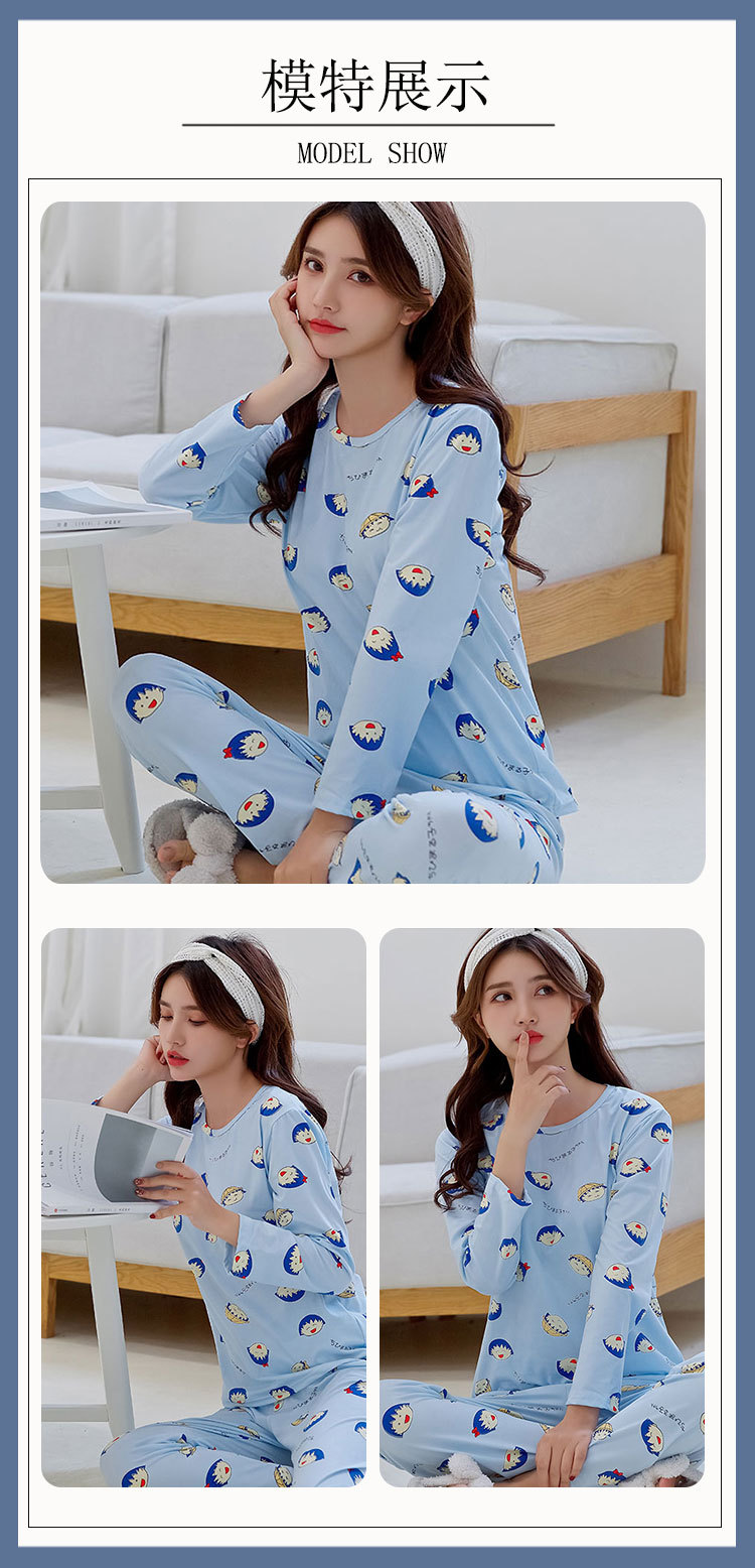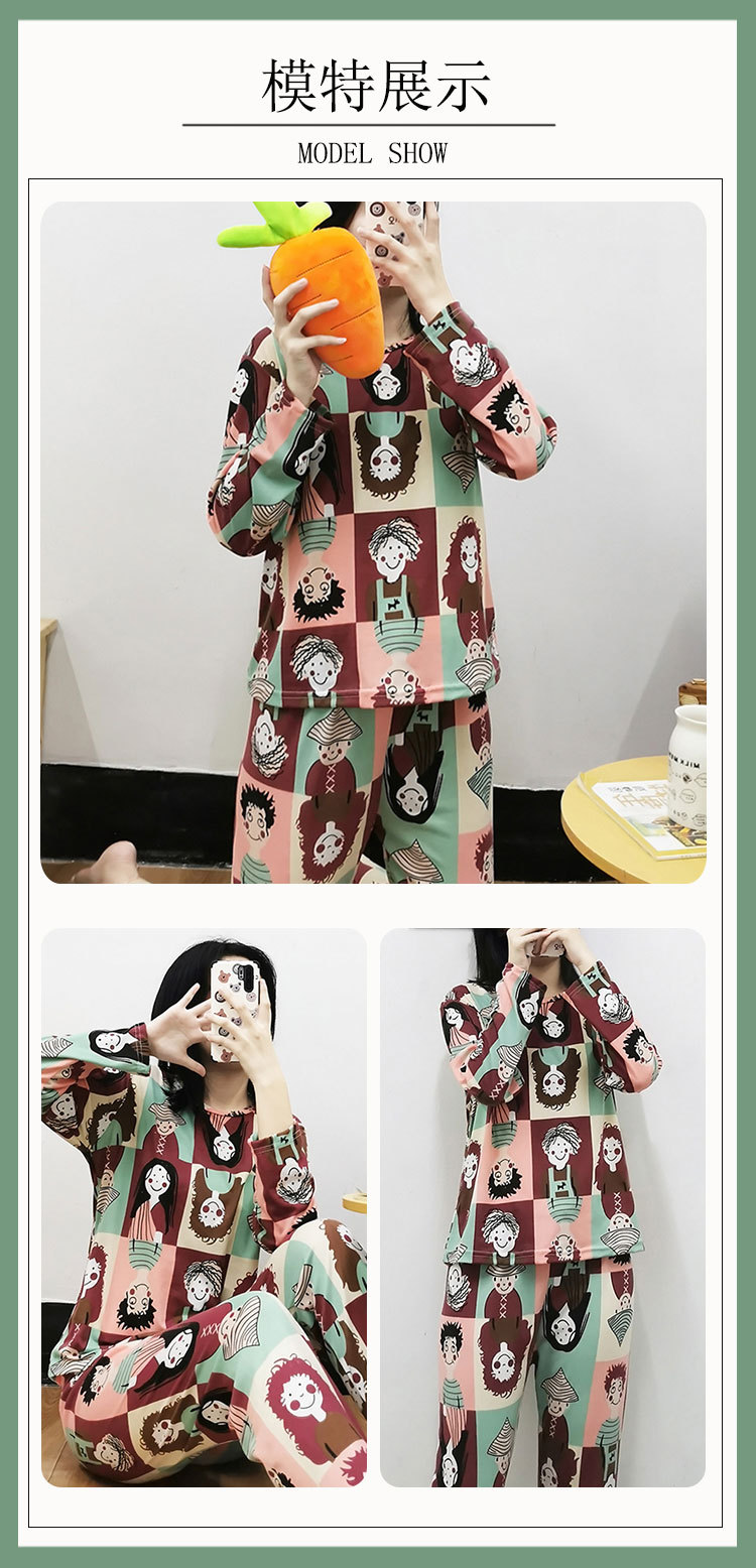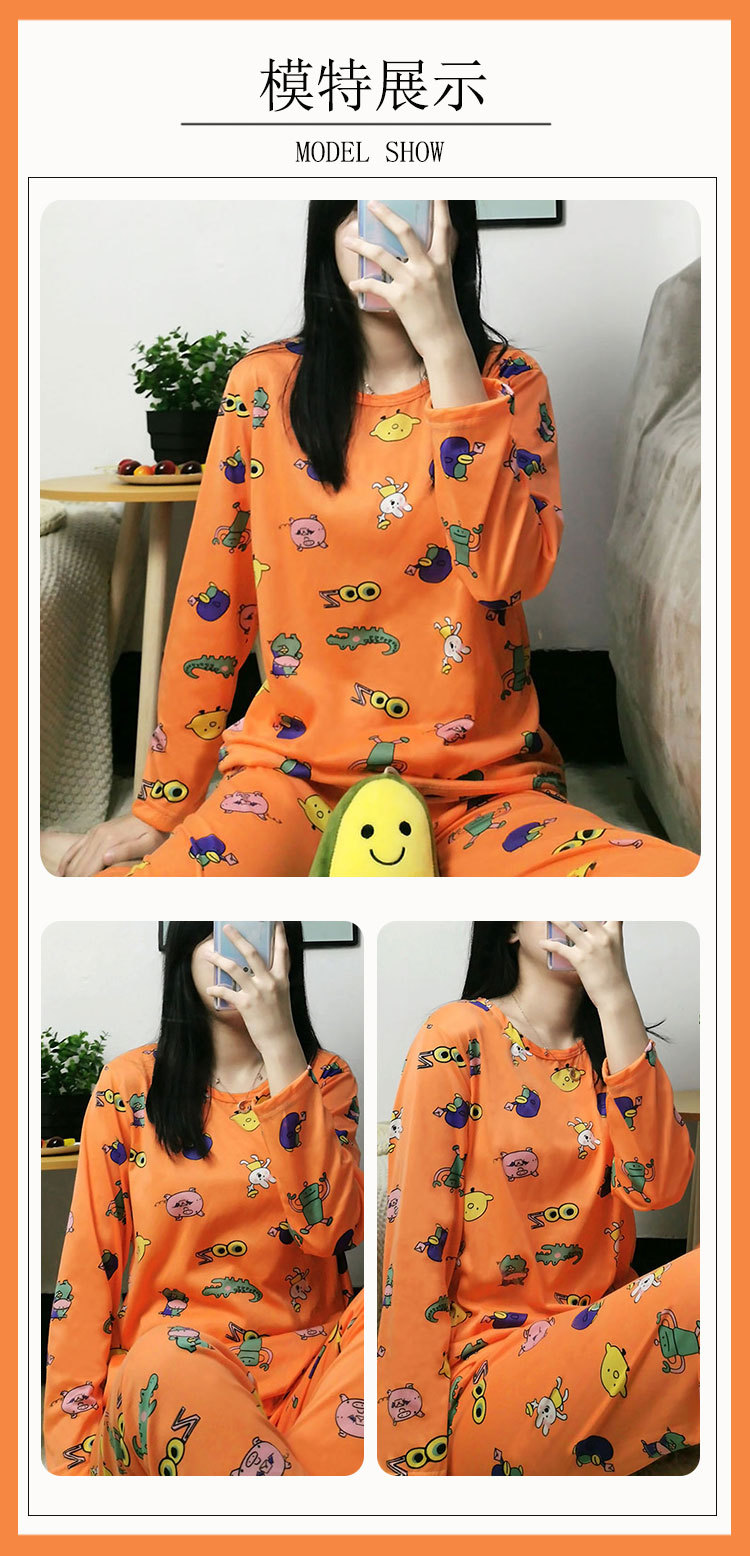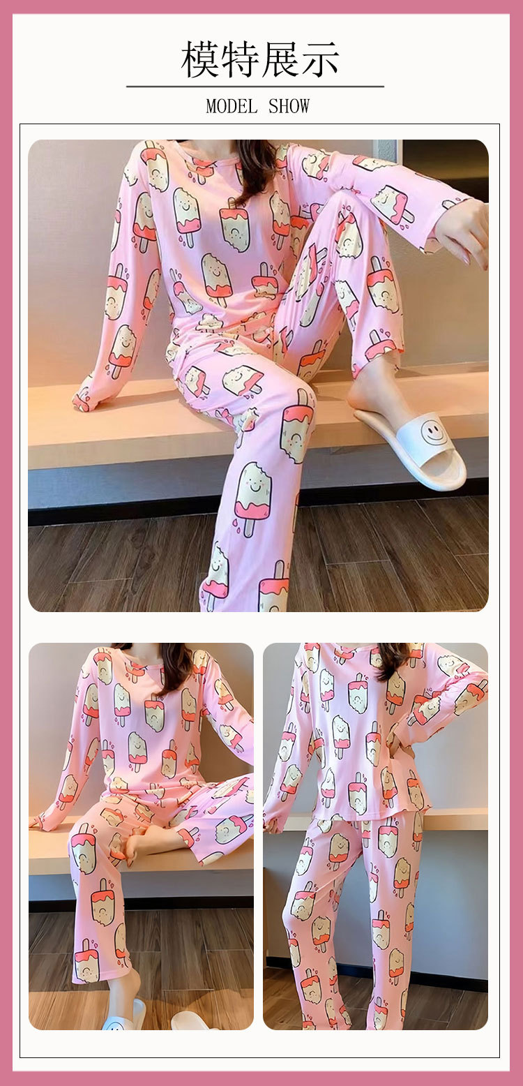 抖音直播睡衣女薄款圆领日系卡通长袖长裤休闲套装学生宿舍家居服