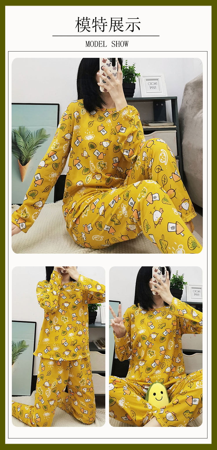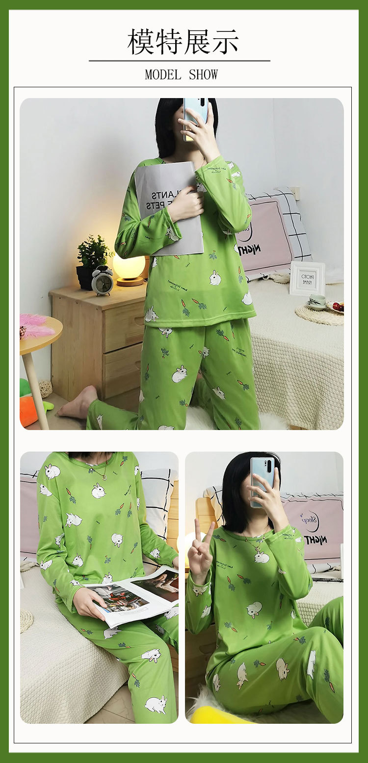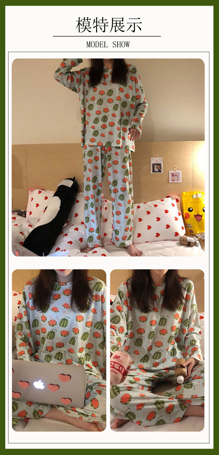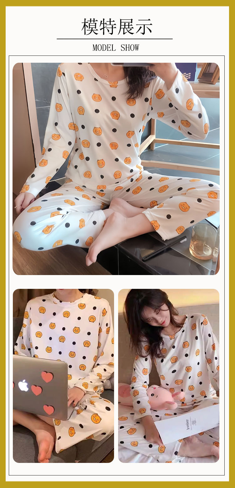 抖音直播睡衣女薄款圆领日系卡通长袖长裤休闲套装学生宿舍家居服