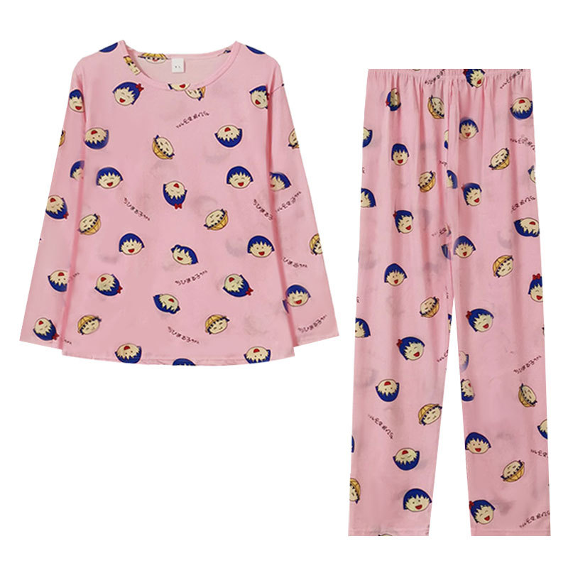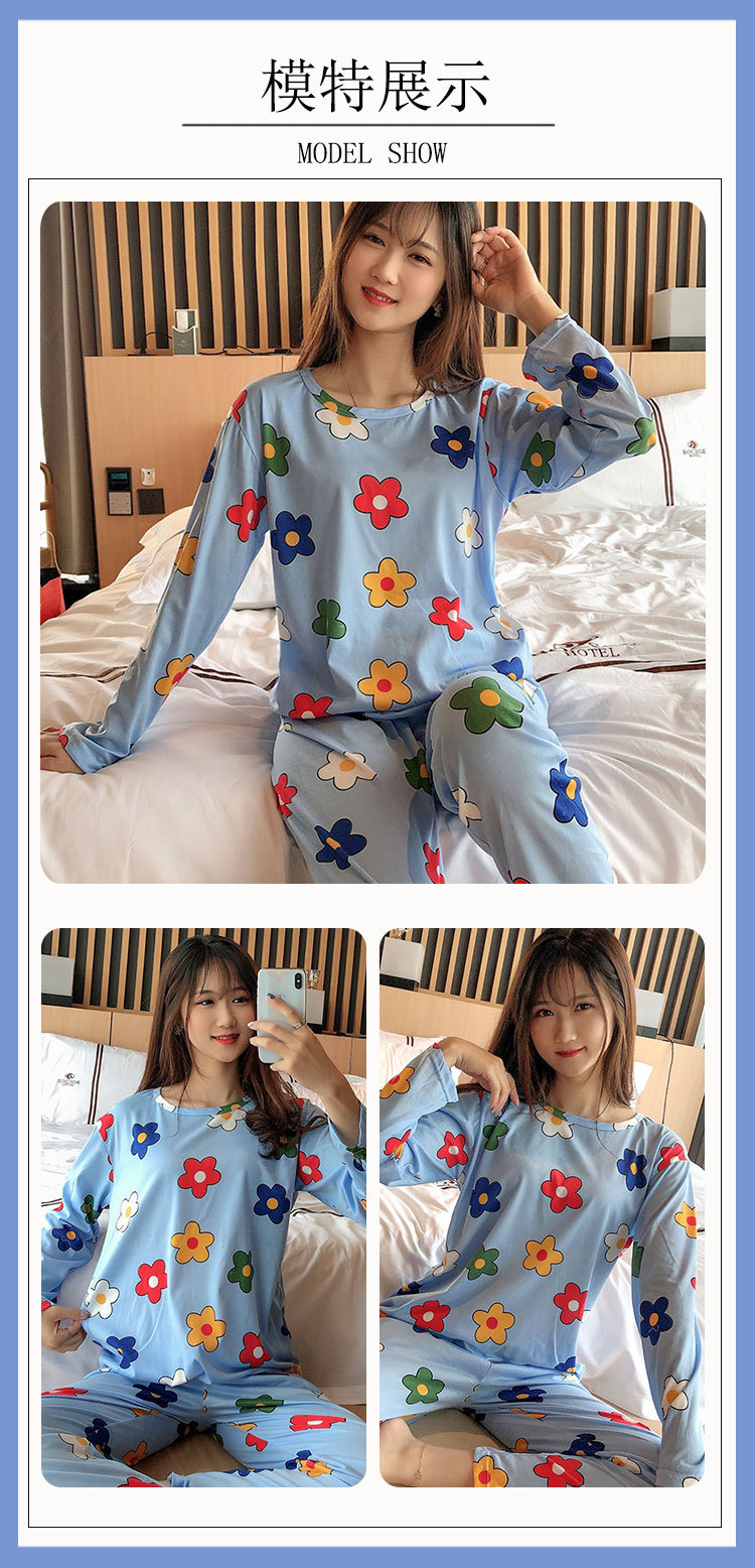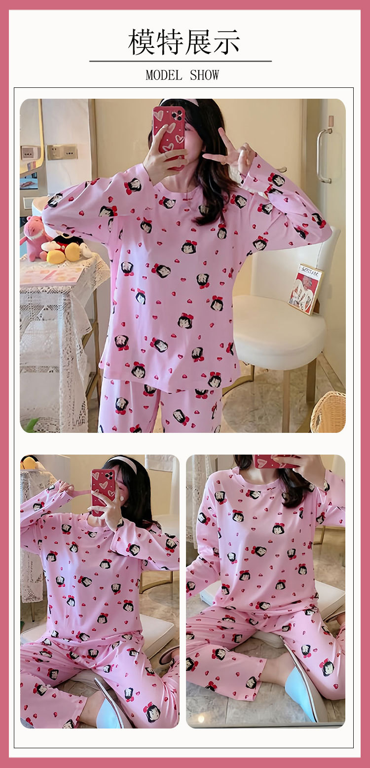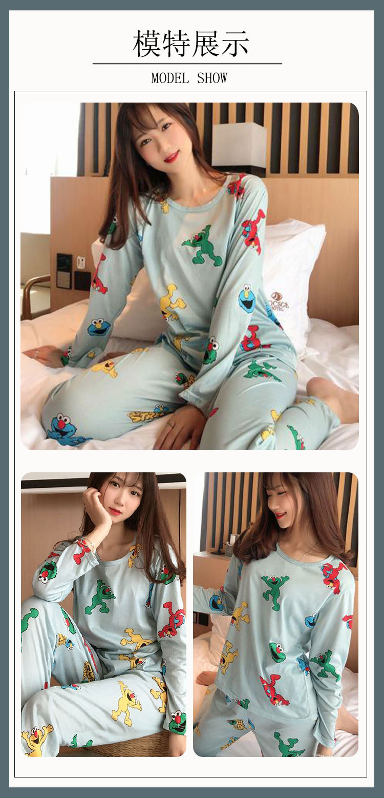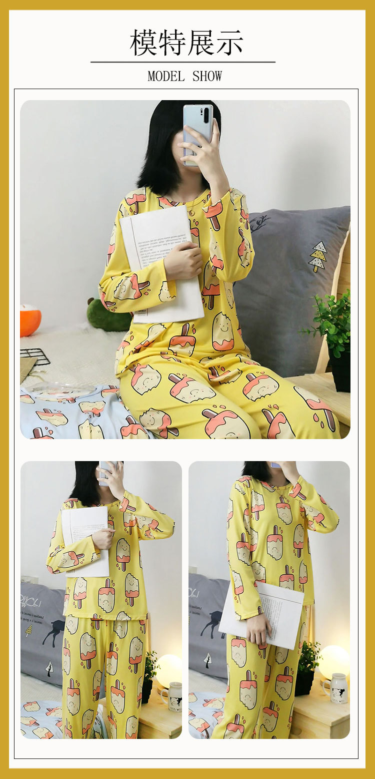 抖音直播睡衣女薄款圆领日系卡通长袖长裤休闲套装学生宿舍家居服