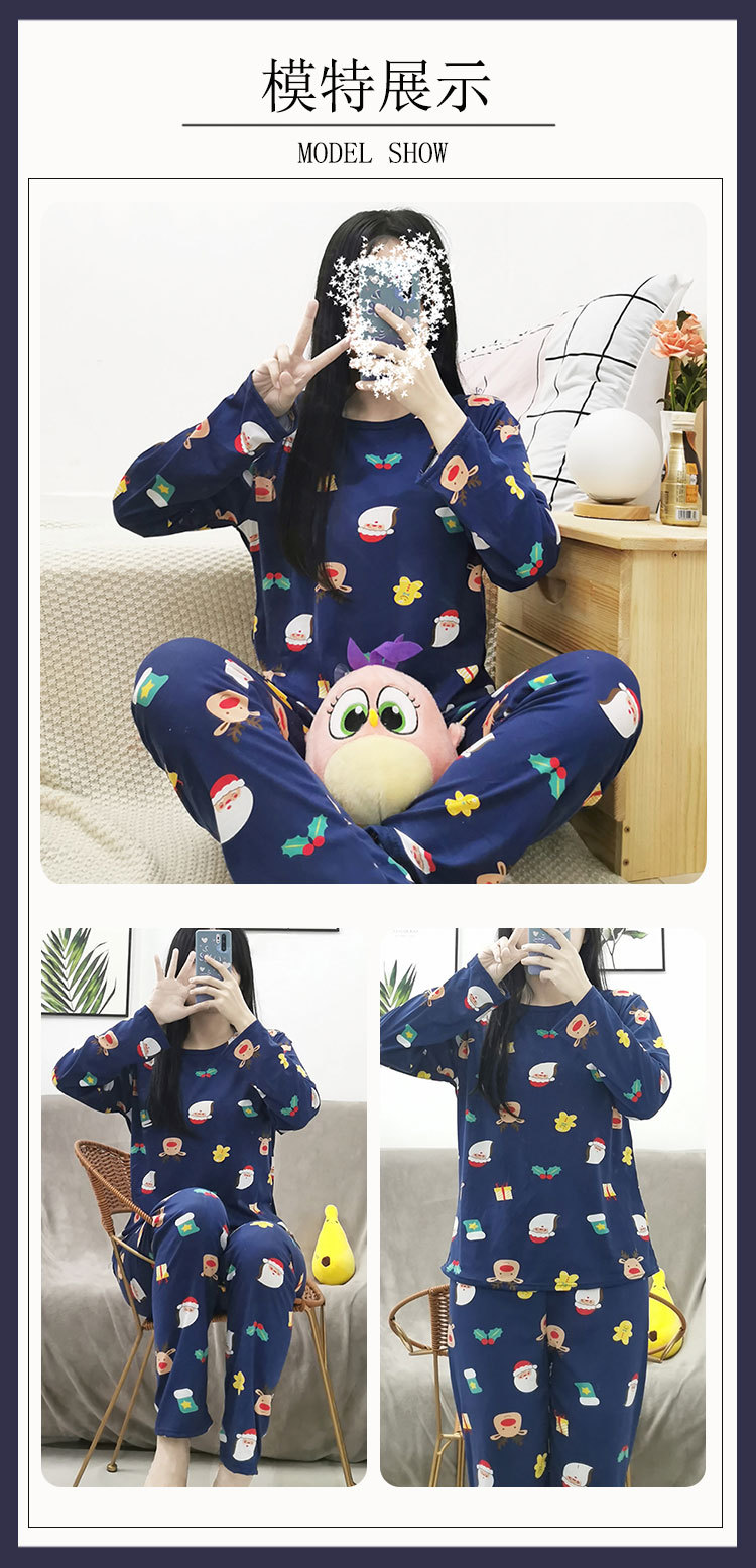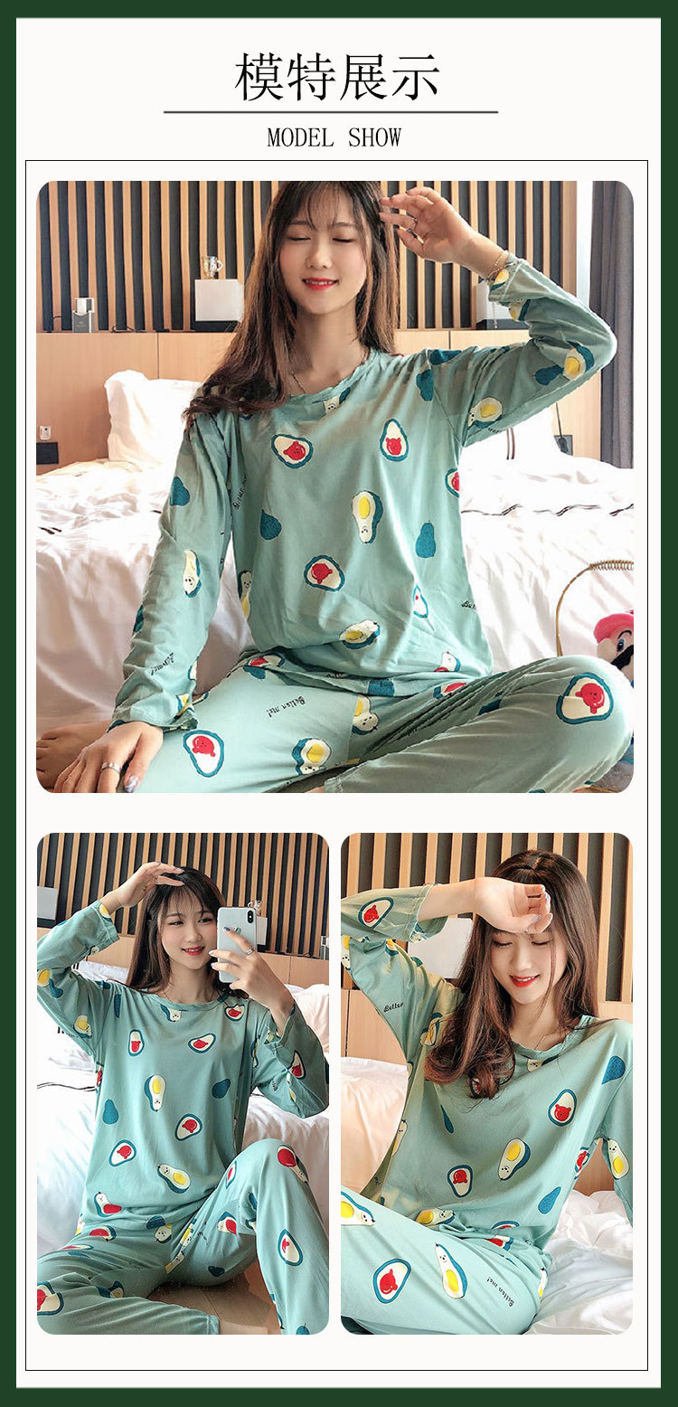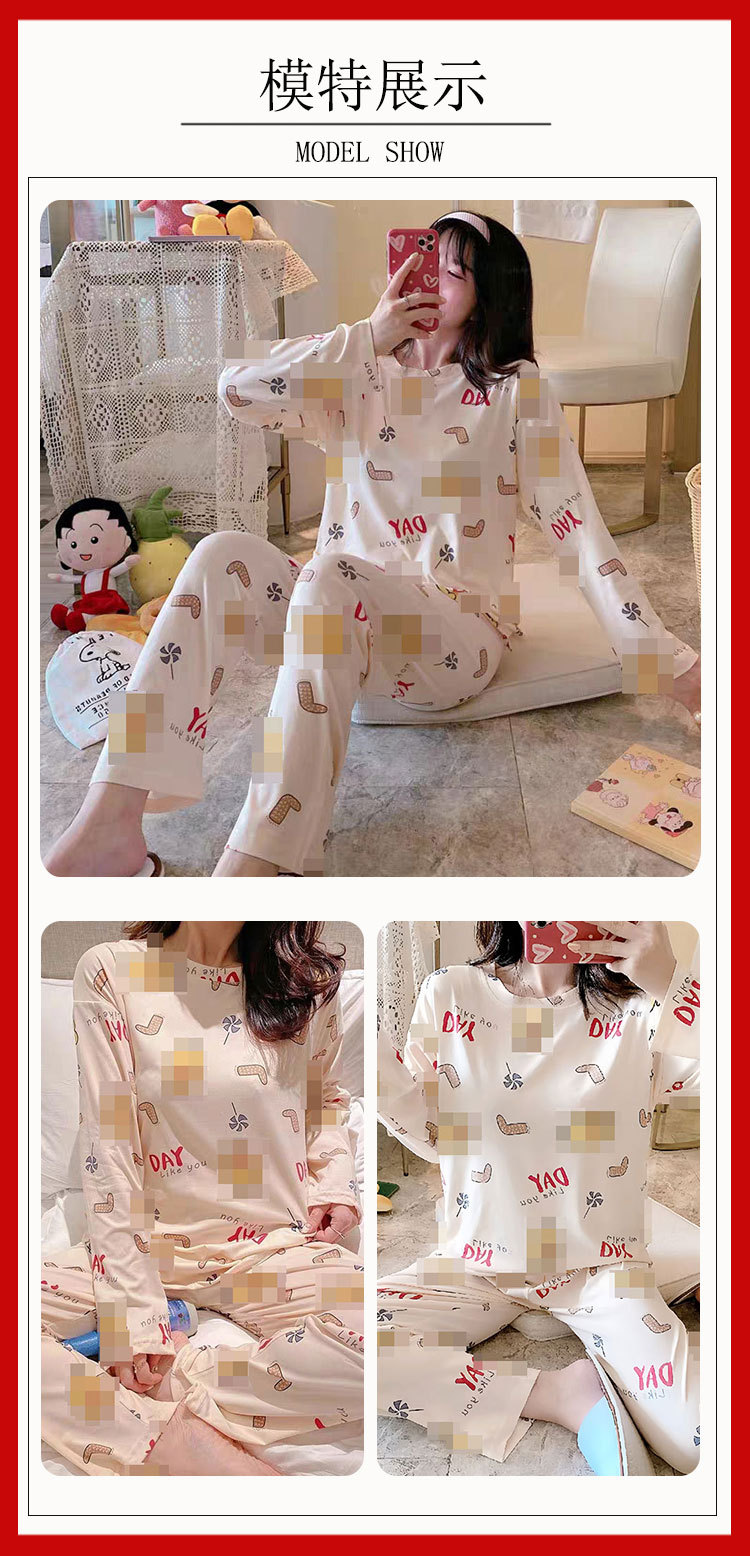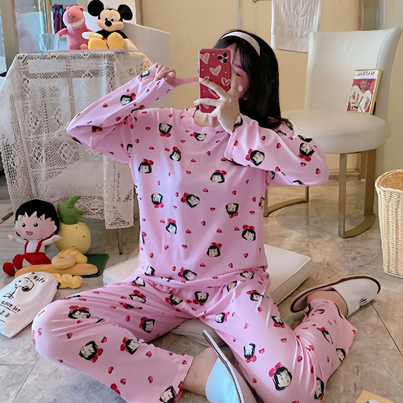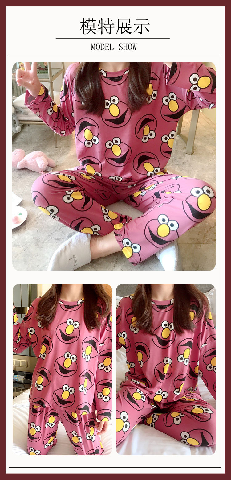 抖音直播睡衣女薄款圆领日系卡通长袖长裤休闲套装学生宿舍家居服
