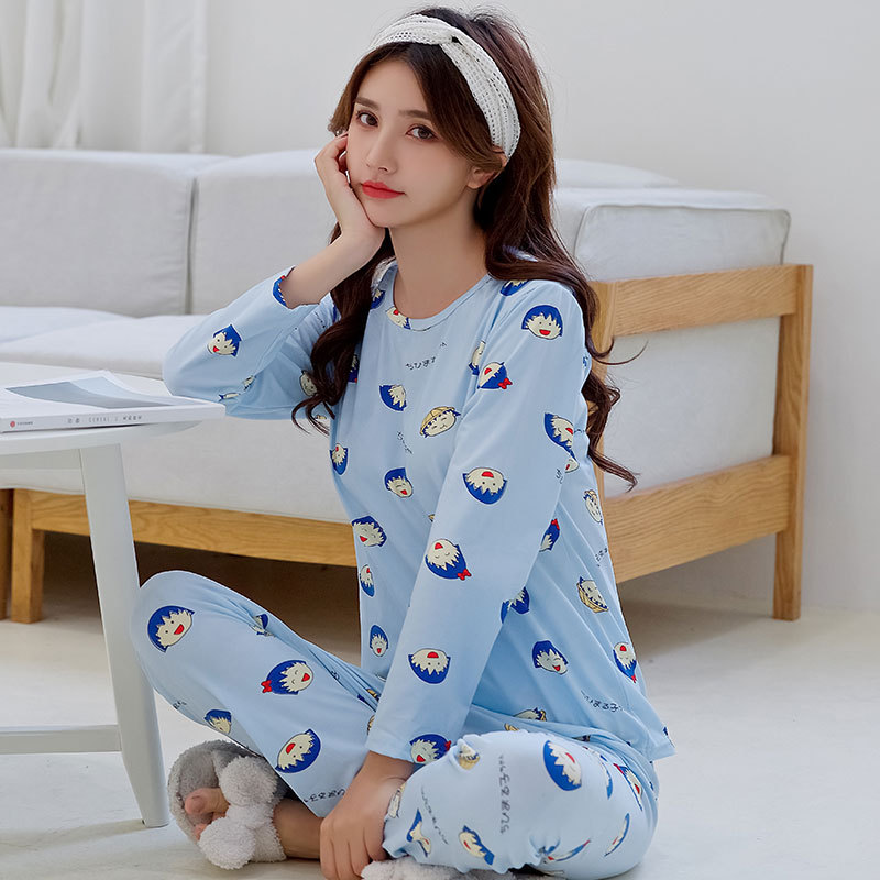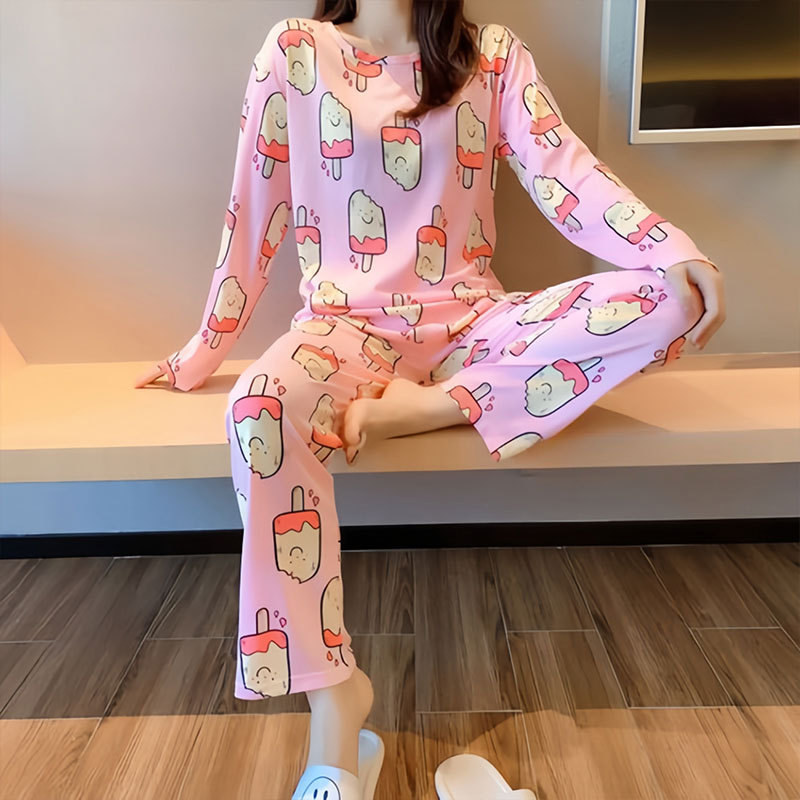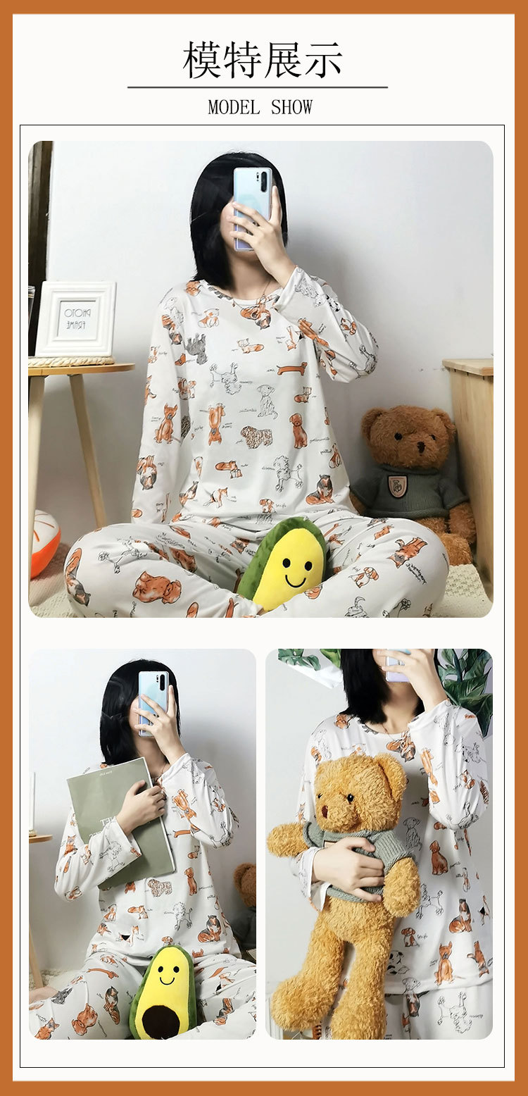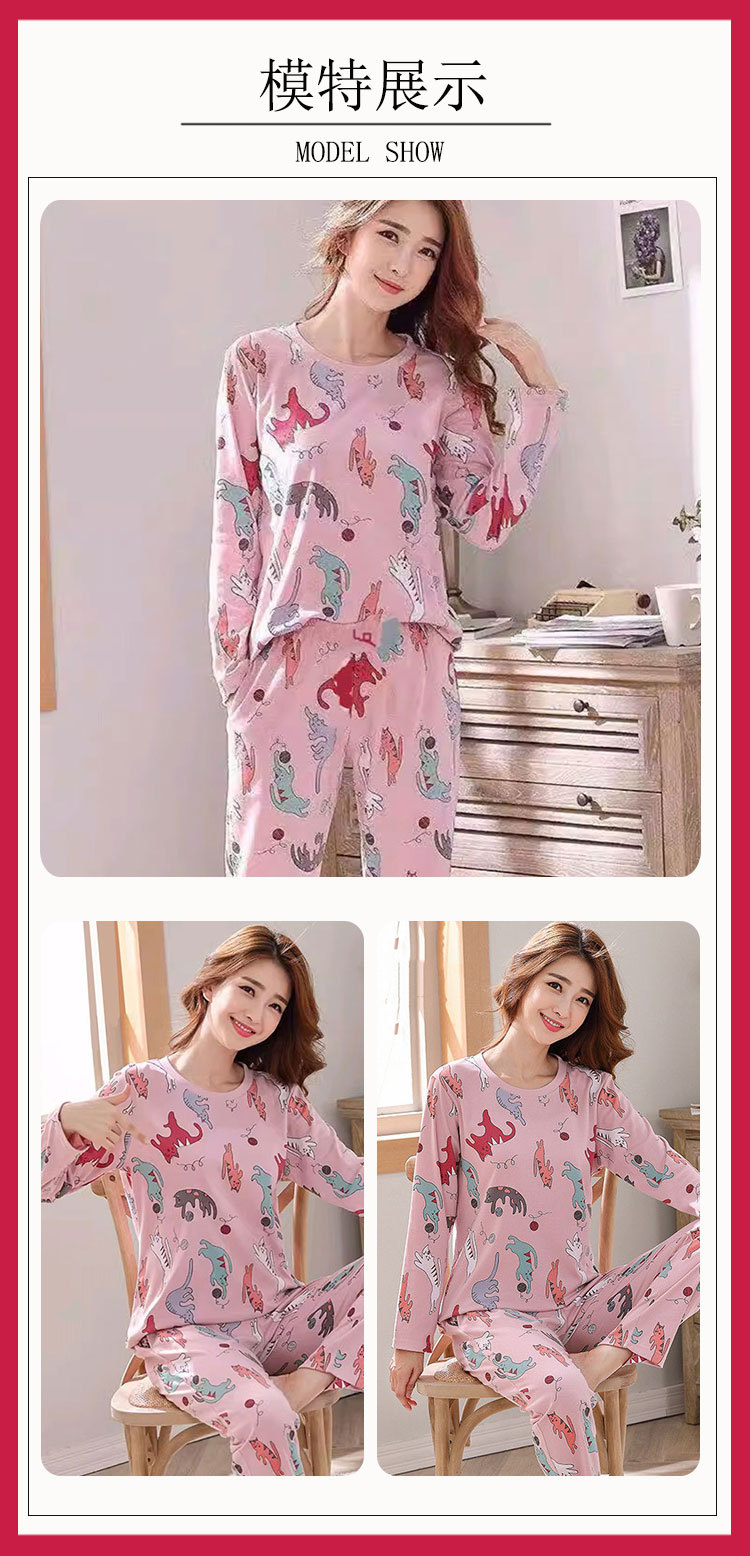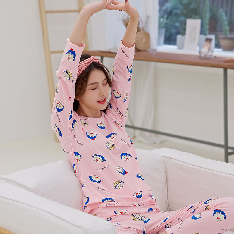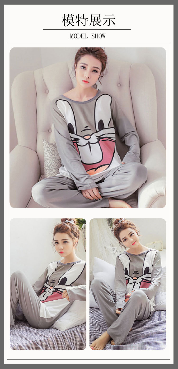抖音直播睡衣女薄款圆领日系卡通长袖长裤休闲套装学生宿舍家居服