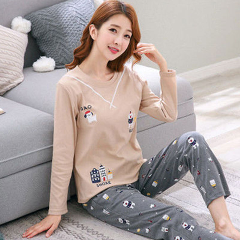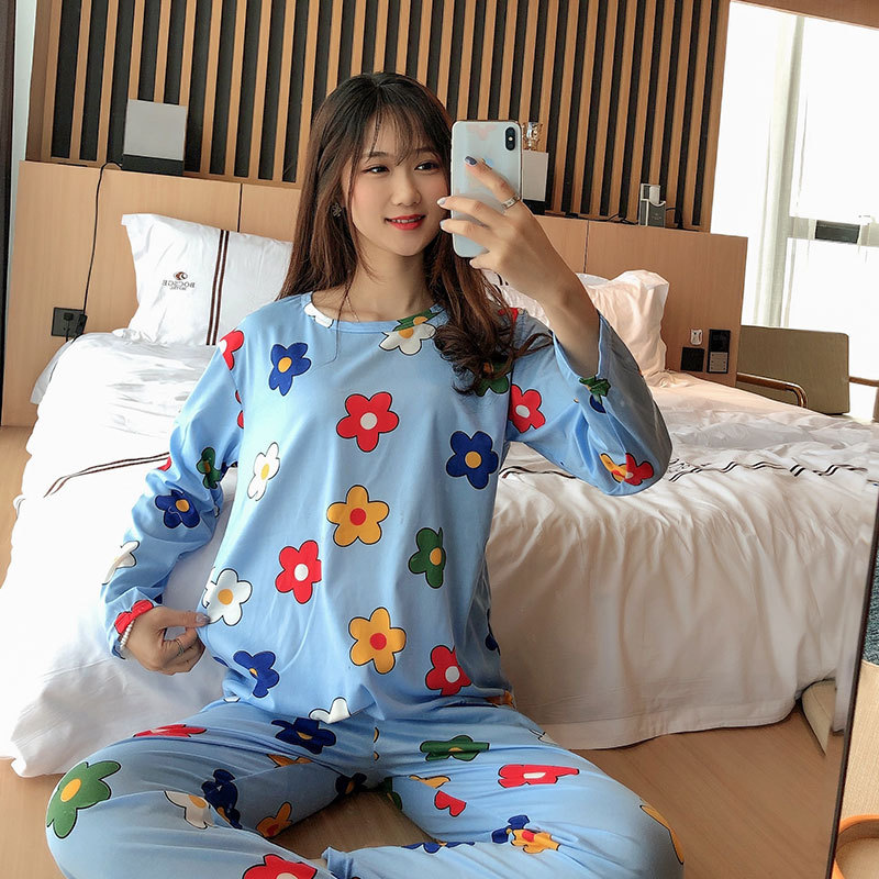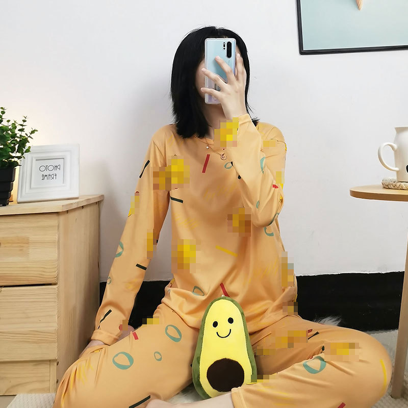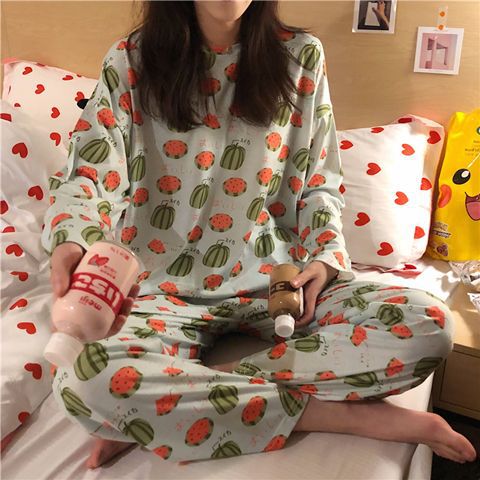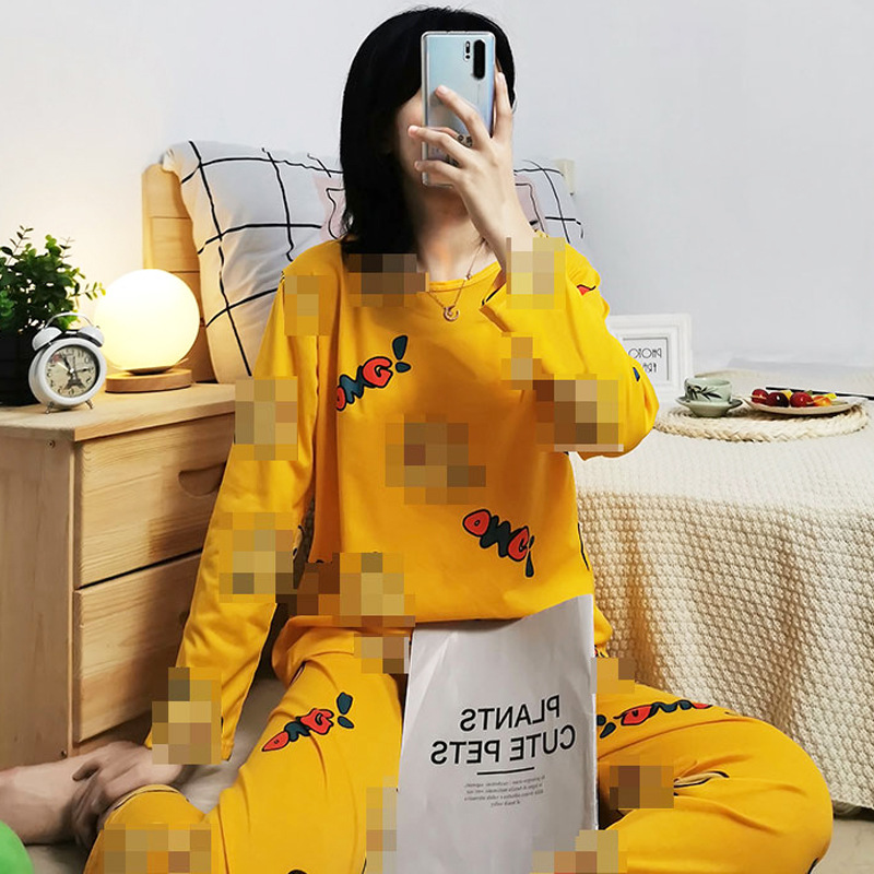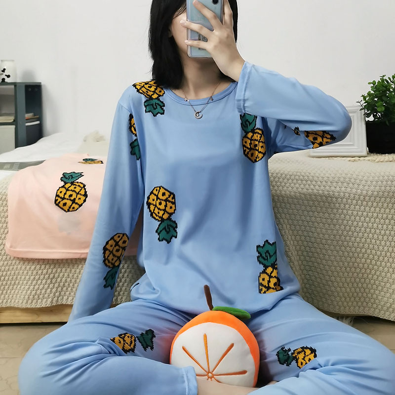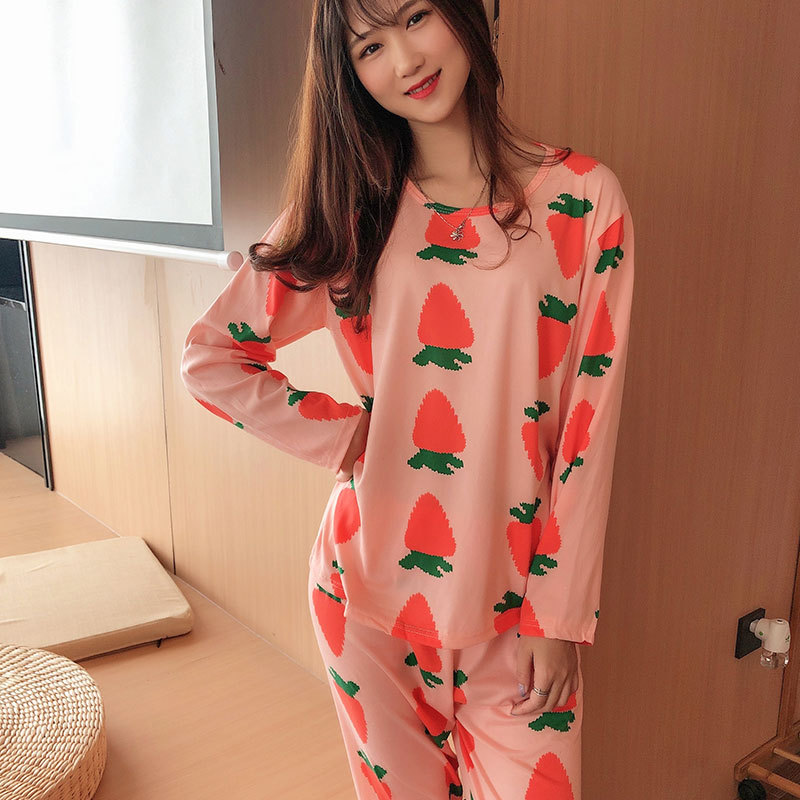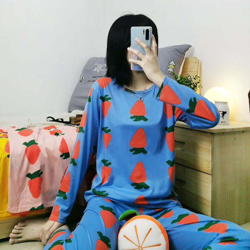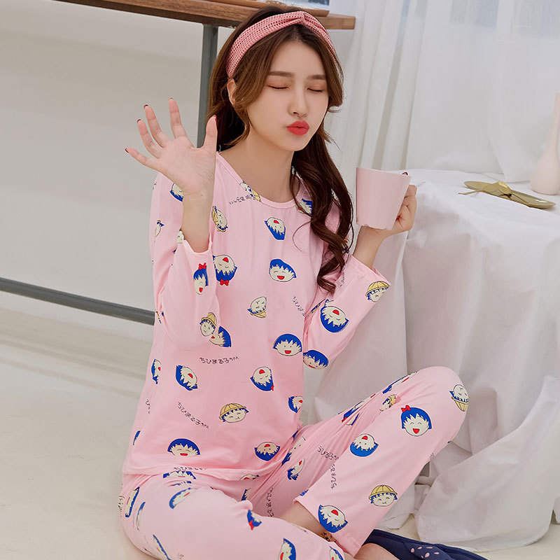 抖音直播睡衣女薄款圆领日系卡通长袖长裤休闲套装学生宿舍家居服