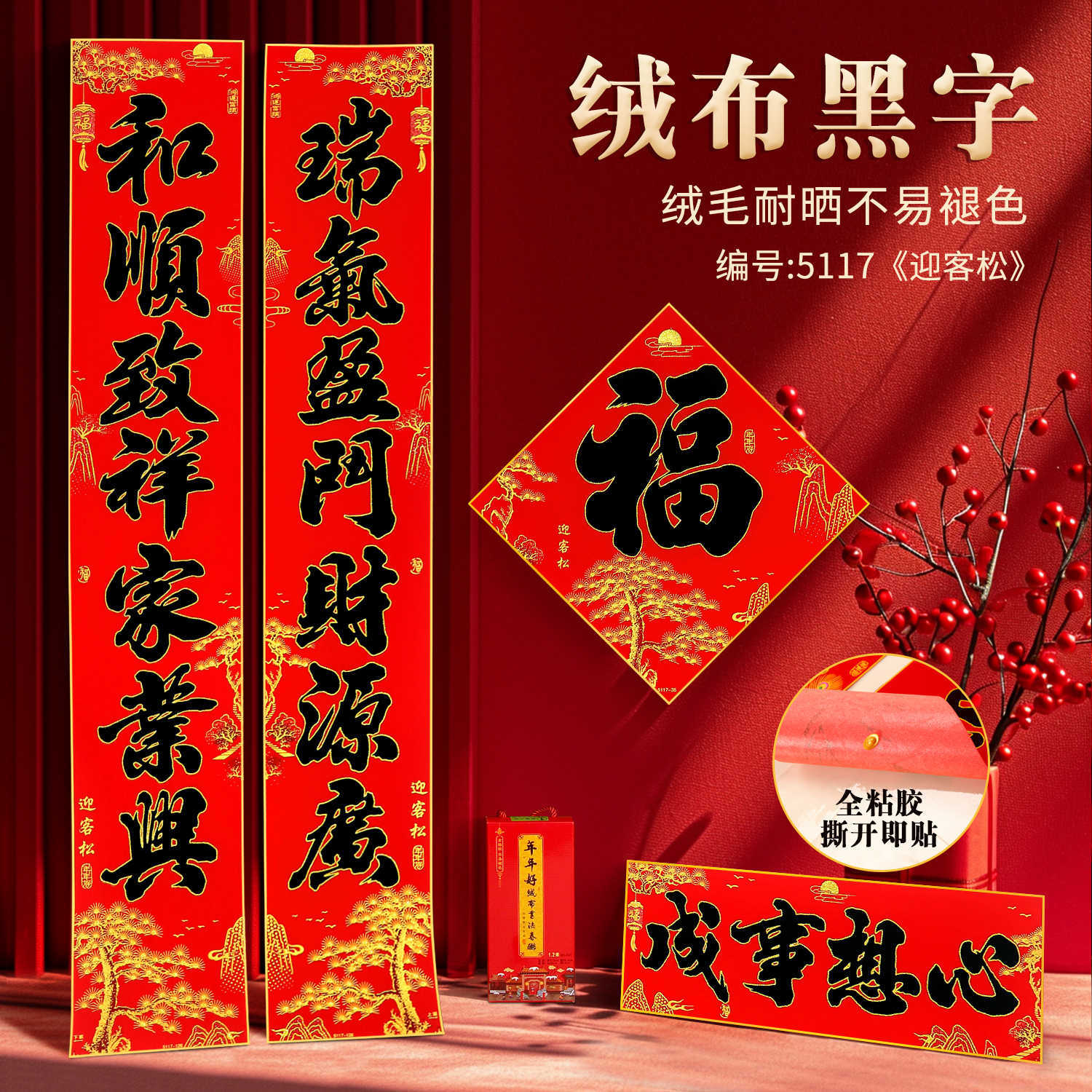 2025新款加厚绒布春联春节用品创意门贴布置装饰过年对联厂家批发
