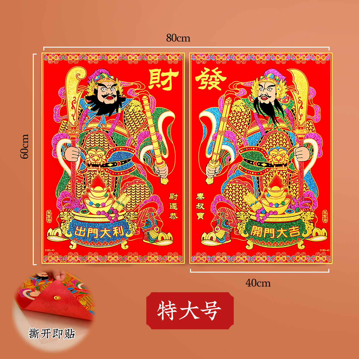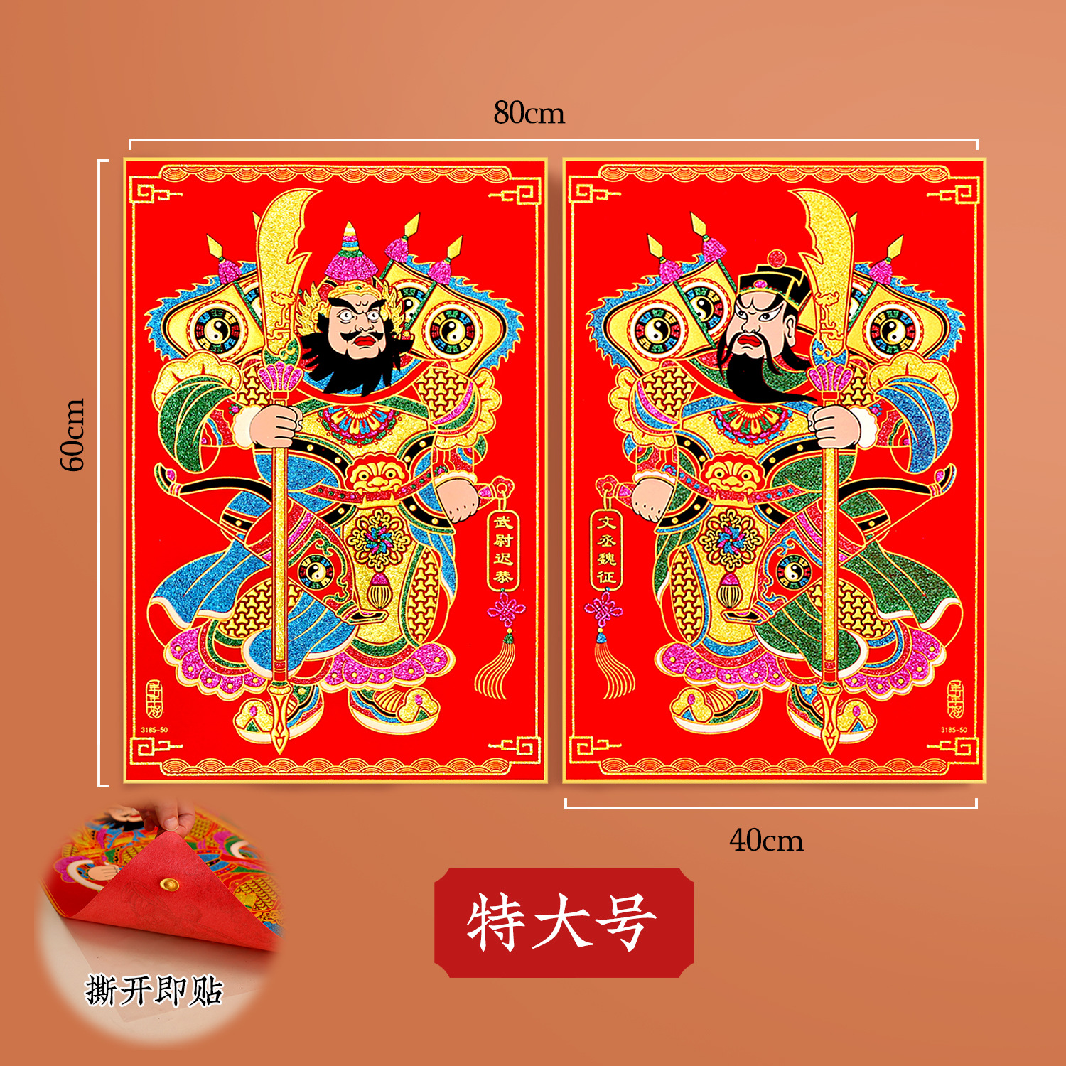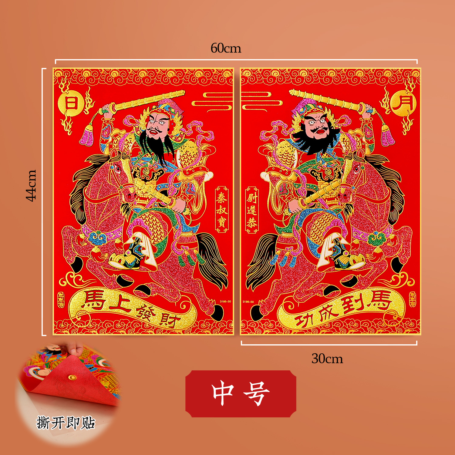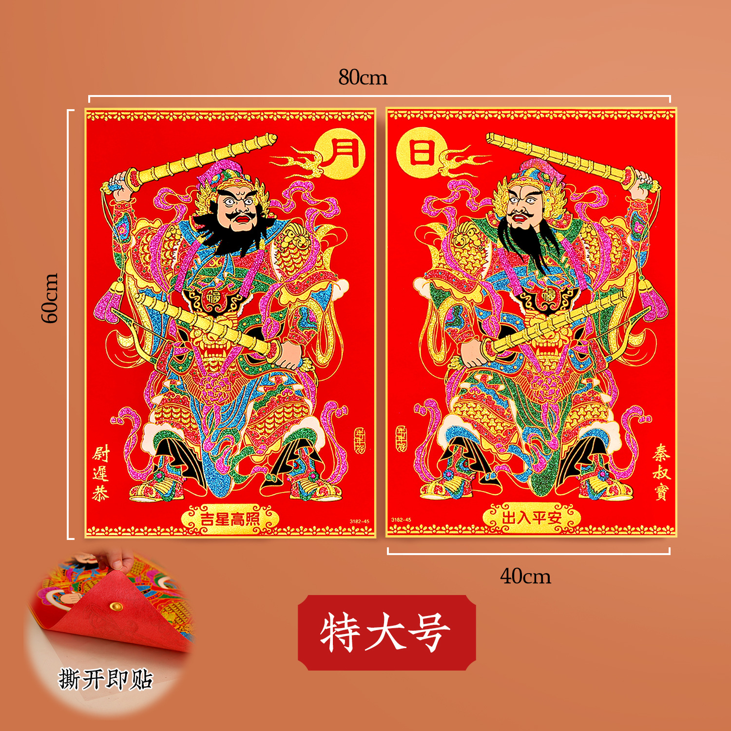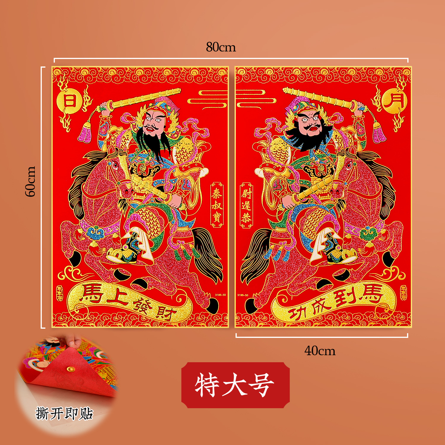 年年好新年门神门贴植绒布烫金贴画关公日月发财春节年画大门镇宅