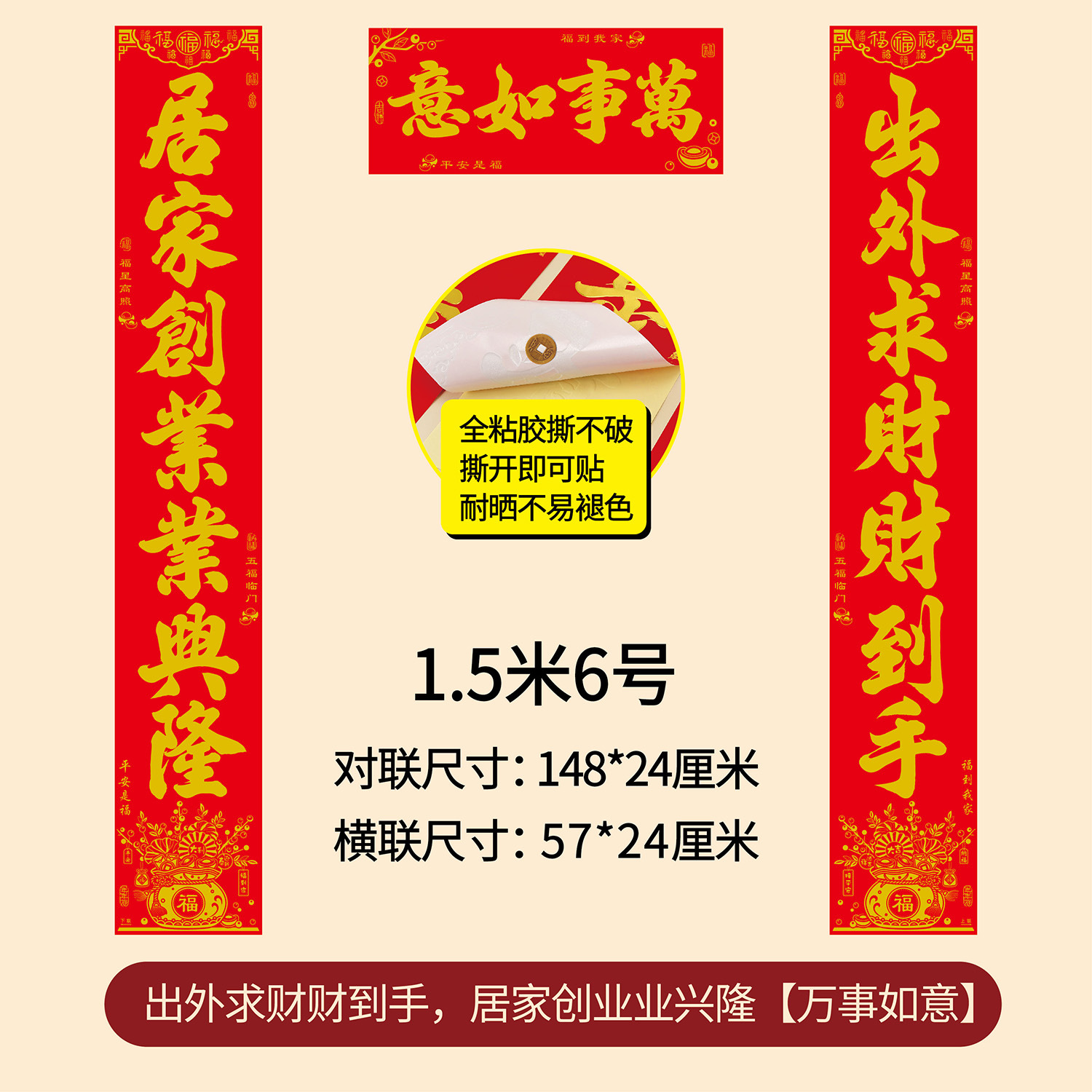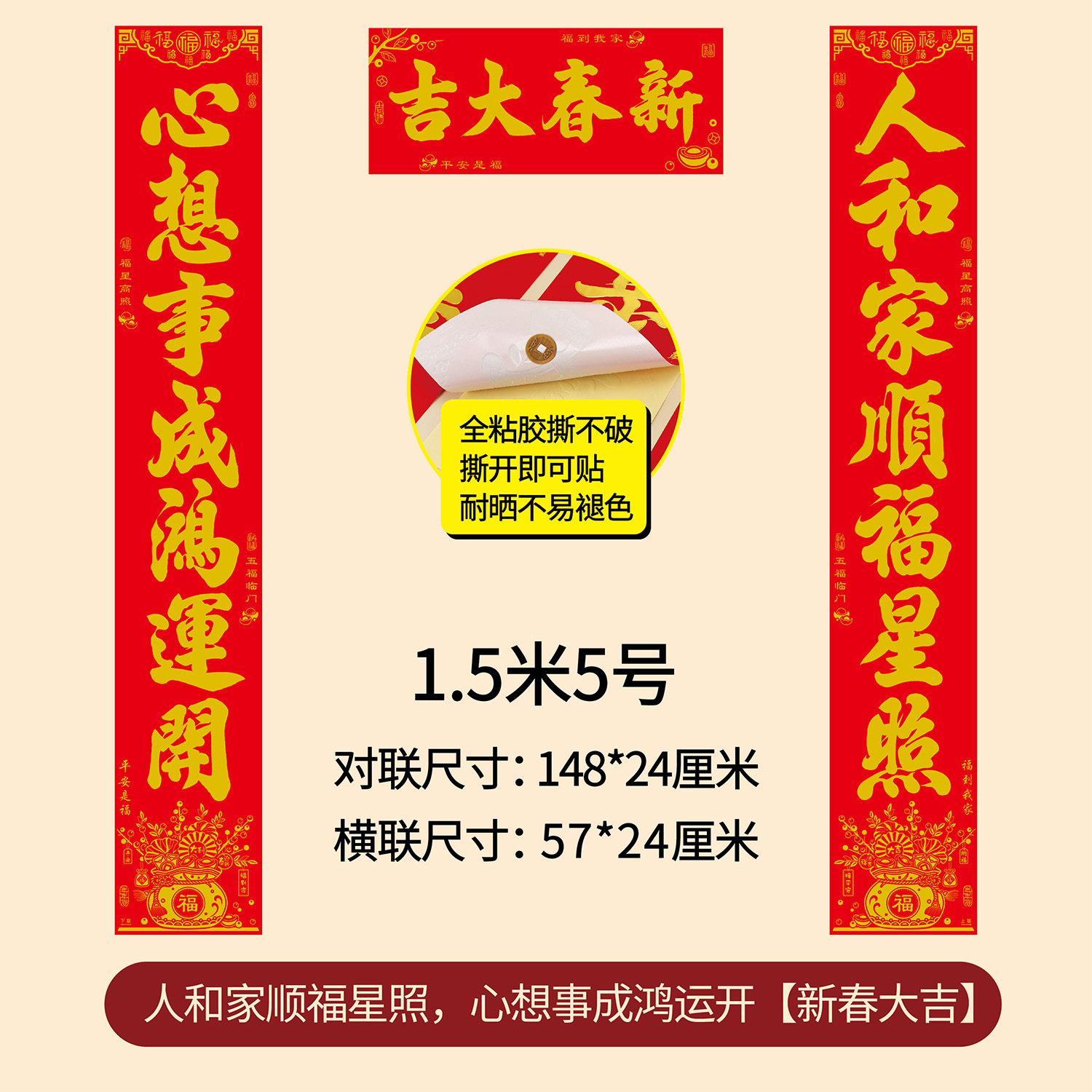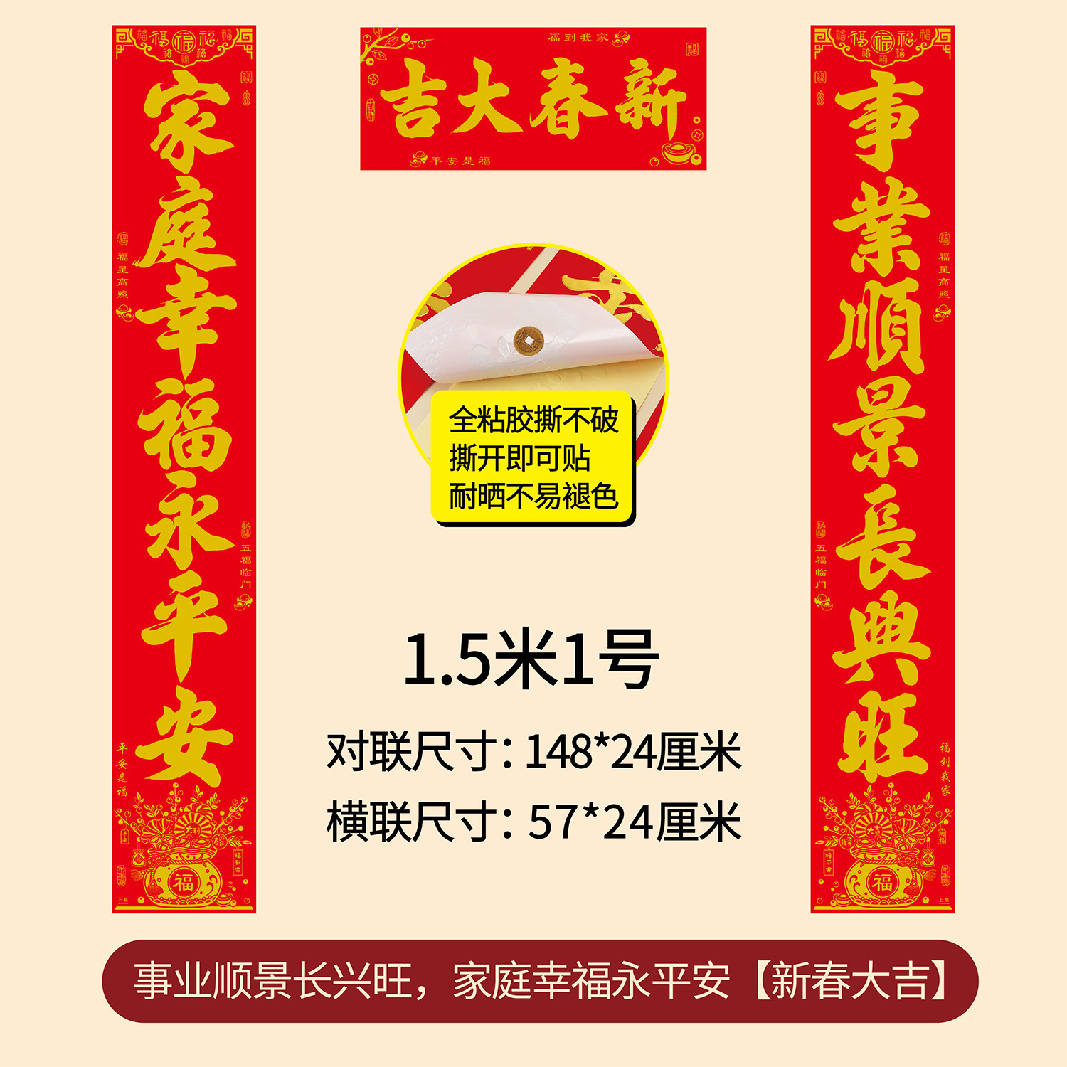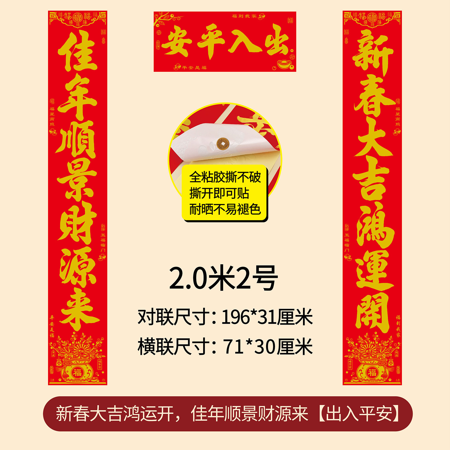 年年好厂家直供新款丝绒烫金全背胶春联过年对联大门福贴春节门联