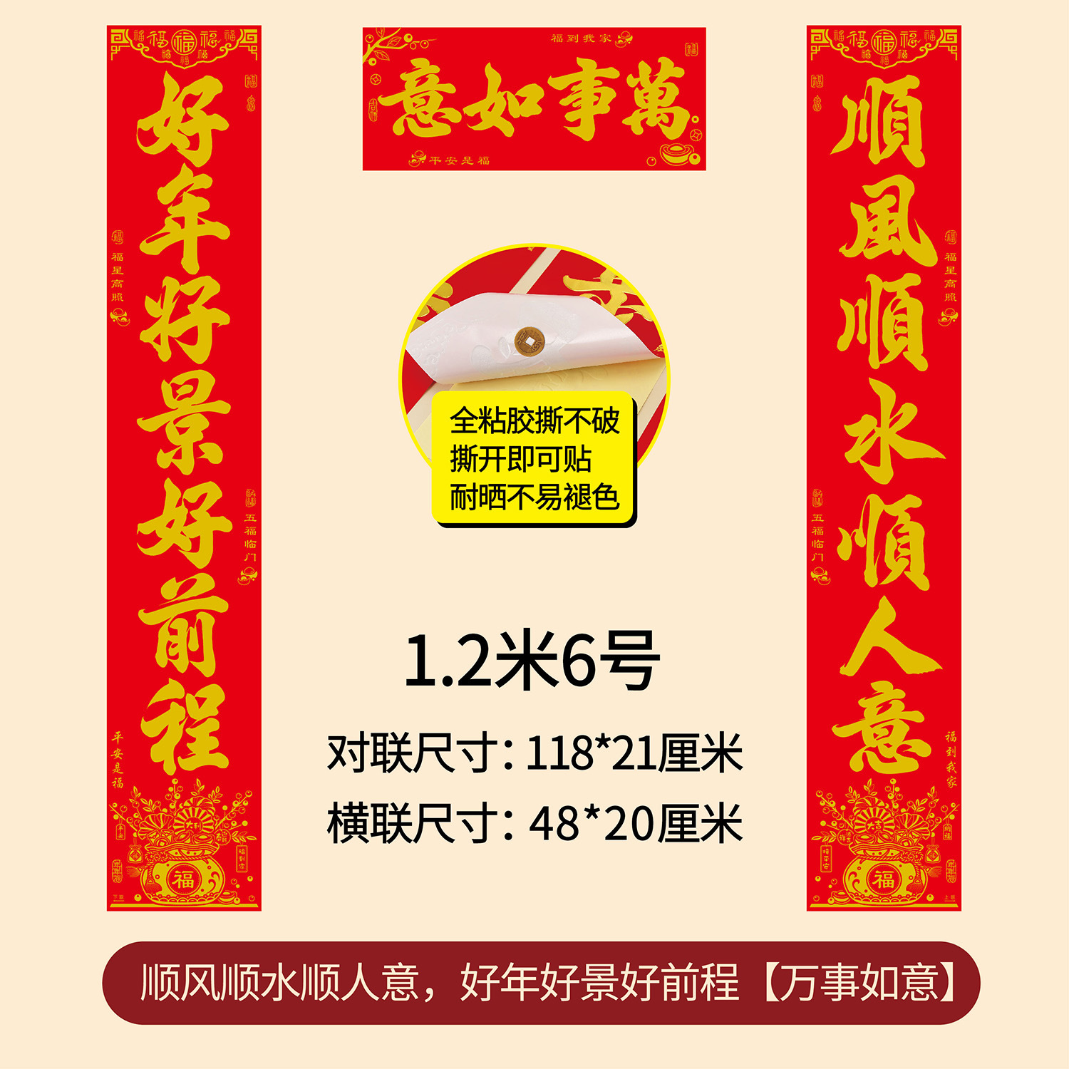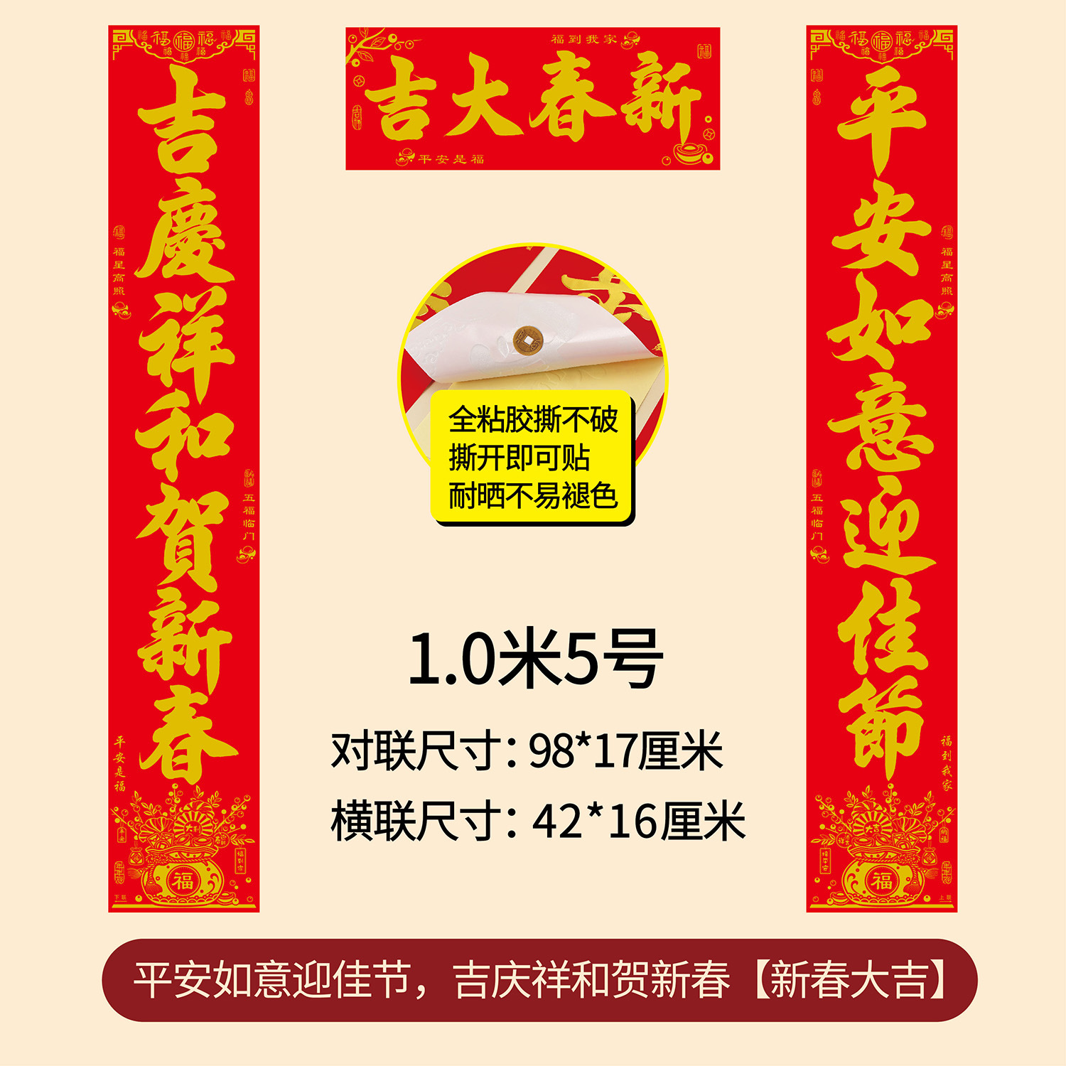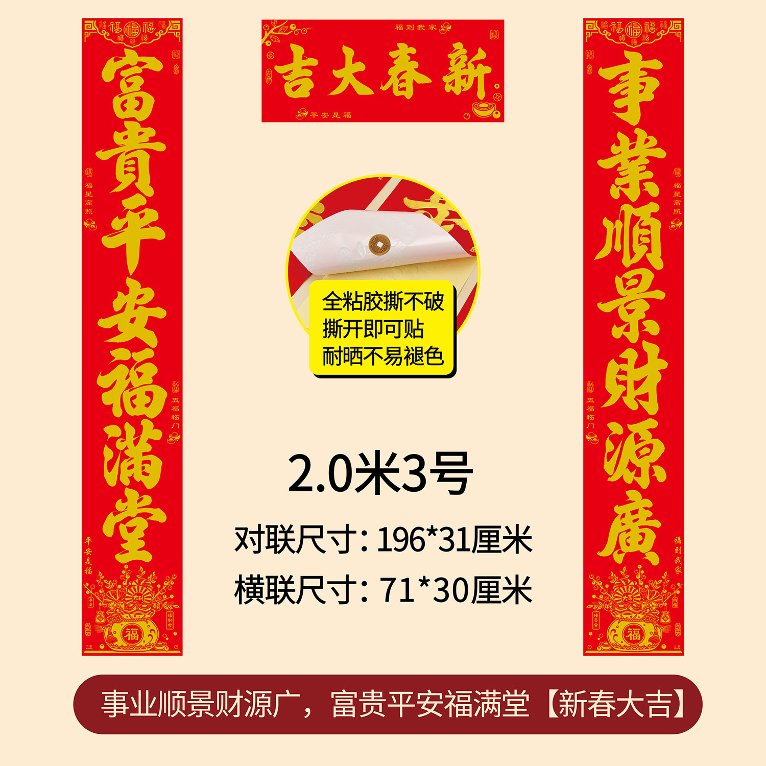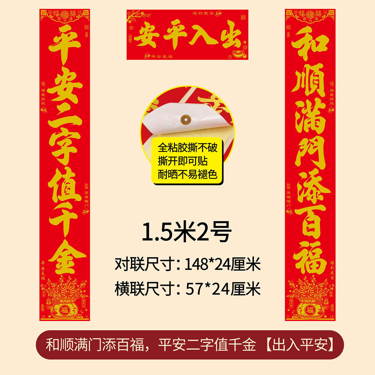年年好厂家直供新款丝绒烫金全背胶春联过年对联大门福贴春节门联